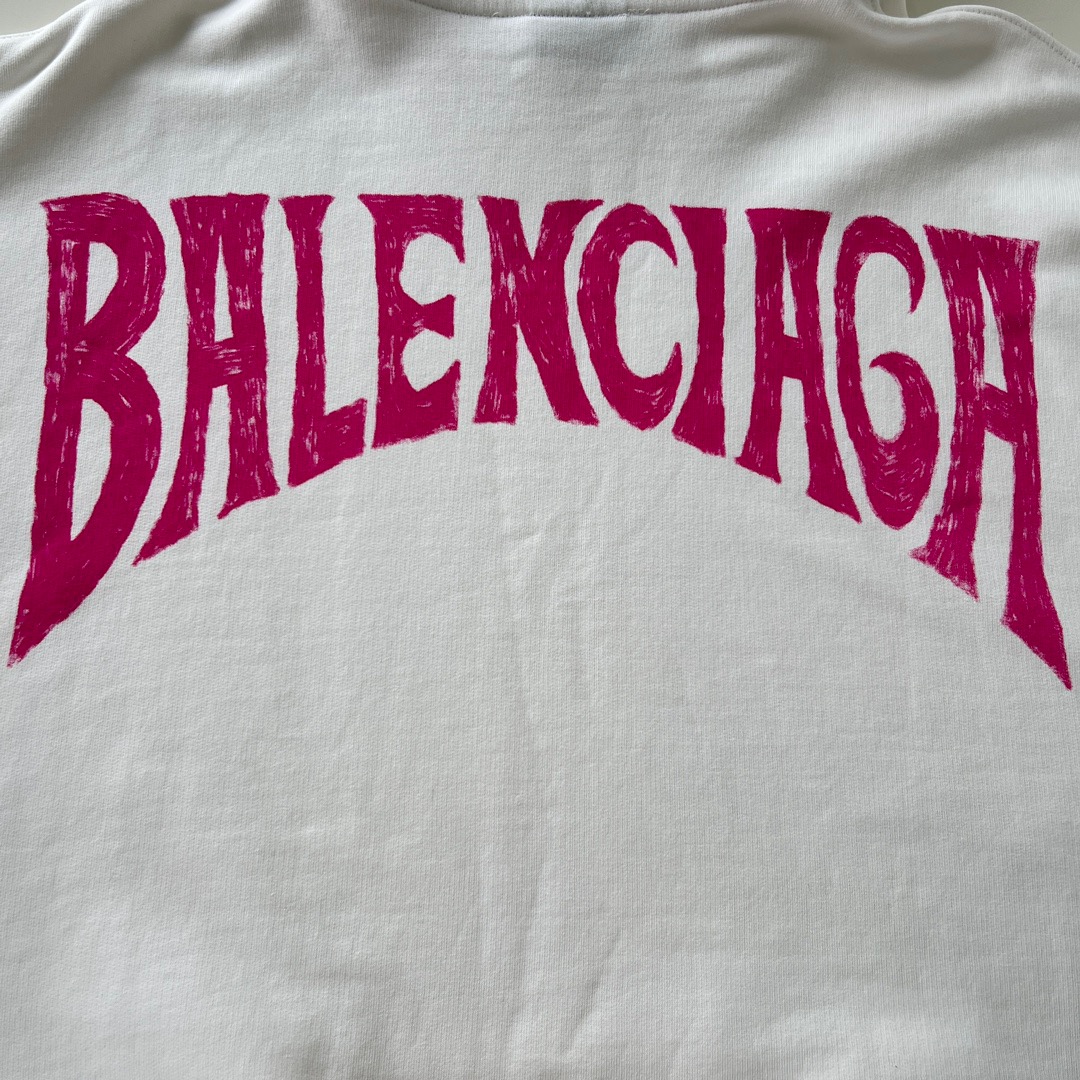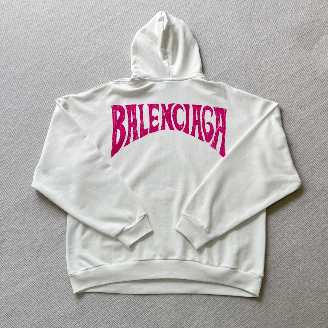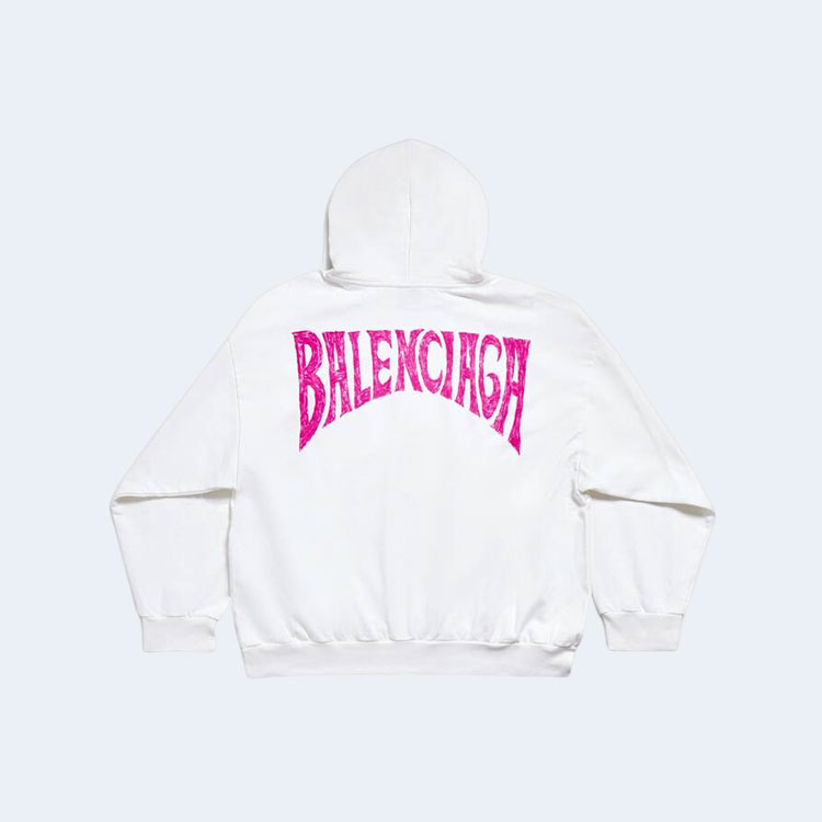 발렌시아가 핸드-드로운 백 로고 미디엄 핏 후디