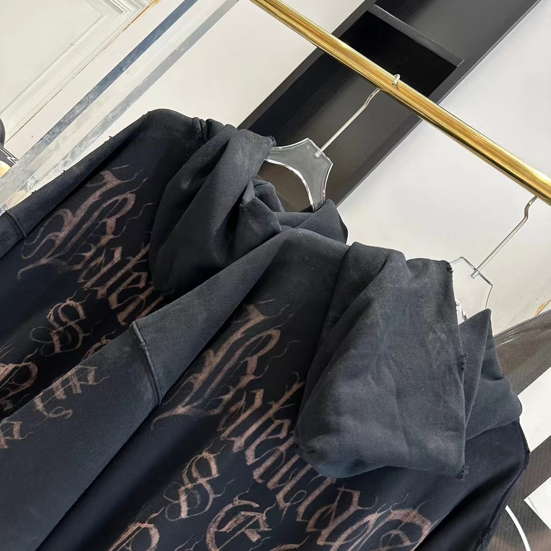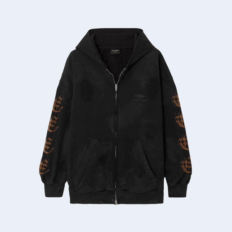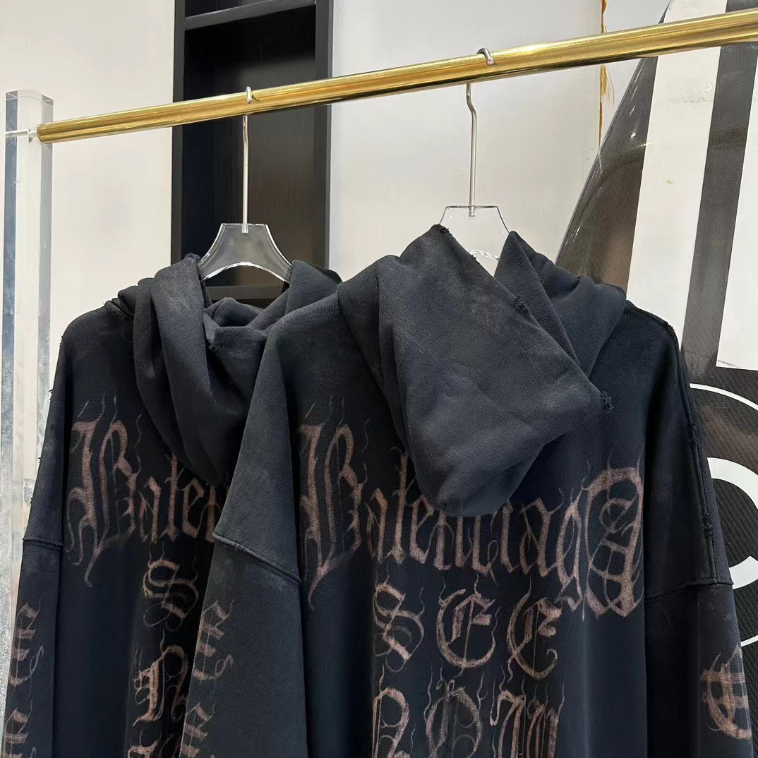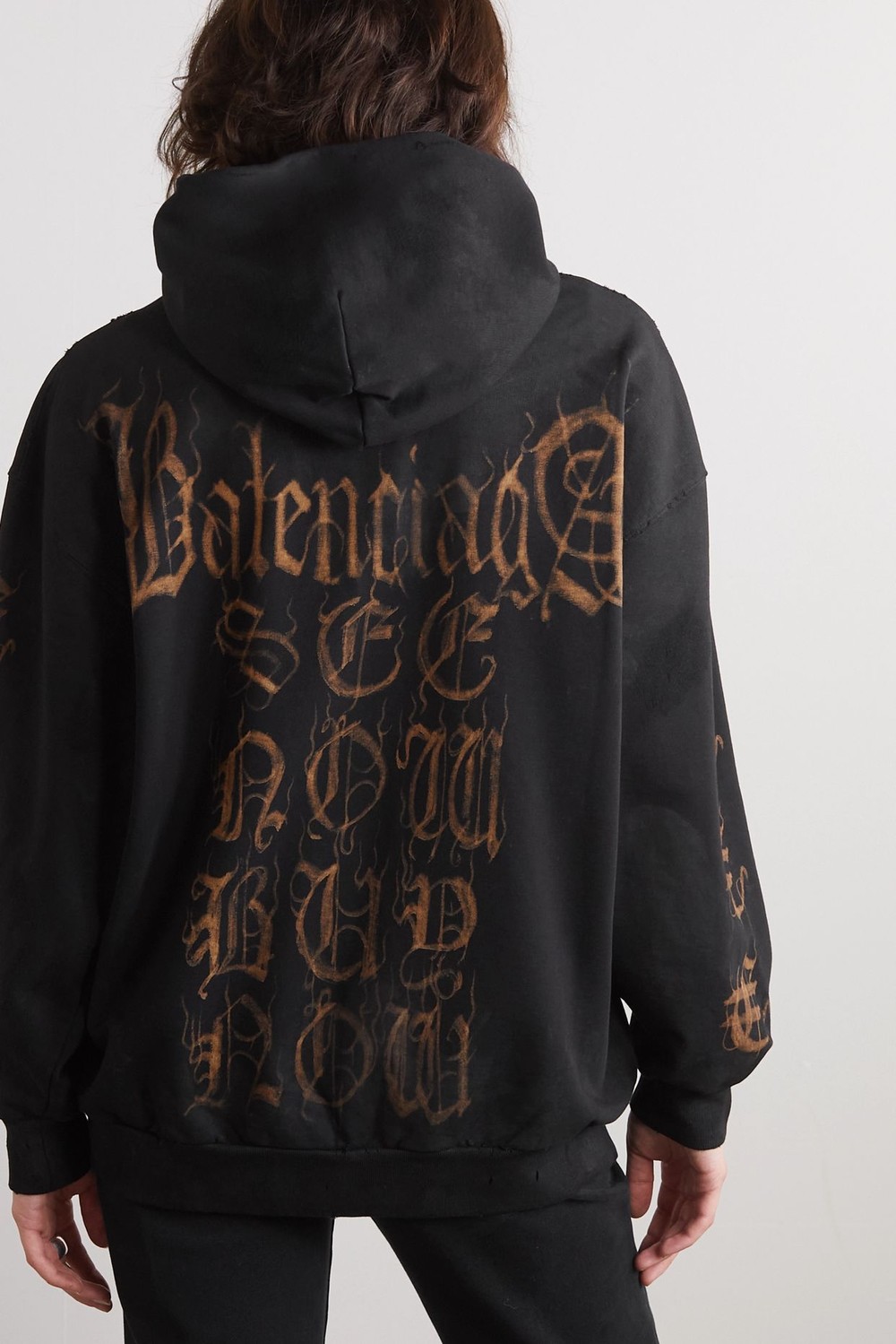 발렌시아가 디스트레스드 프린티드 코튼 저지 후디