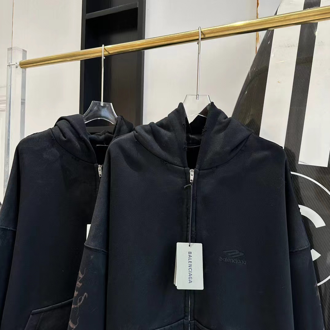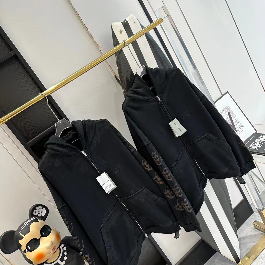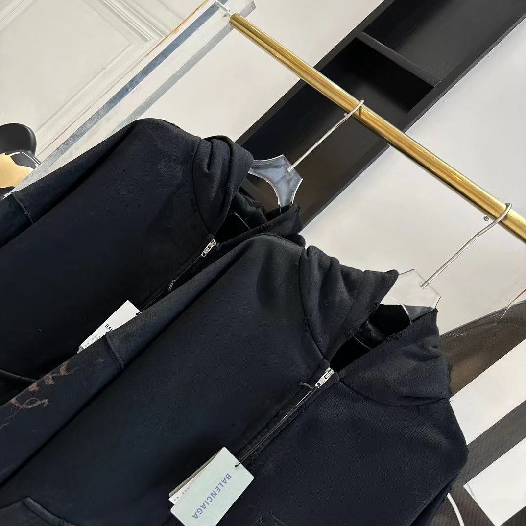 발렌시아가 디스트레스드 프린티드 코튼 저지 후디