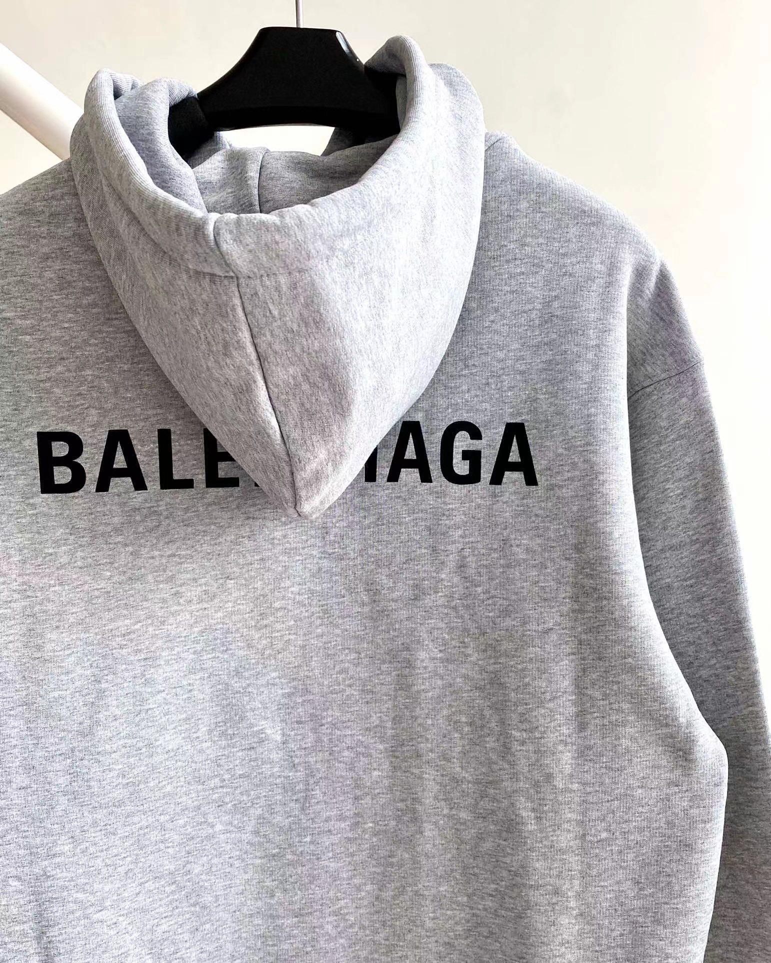 발렌시아가 로고 미디엄 핏 후디 그레이