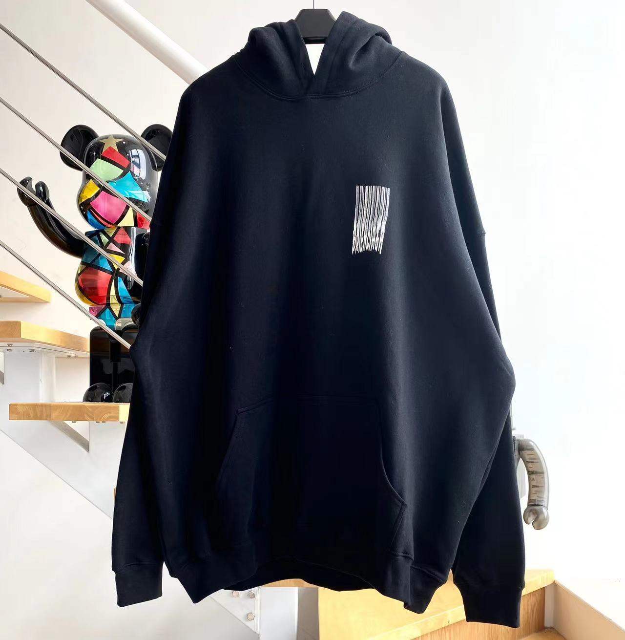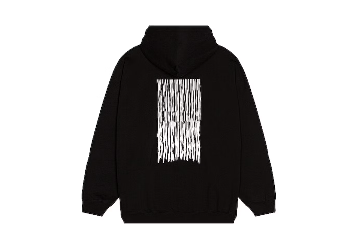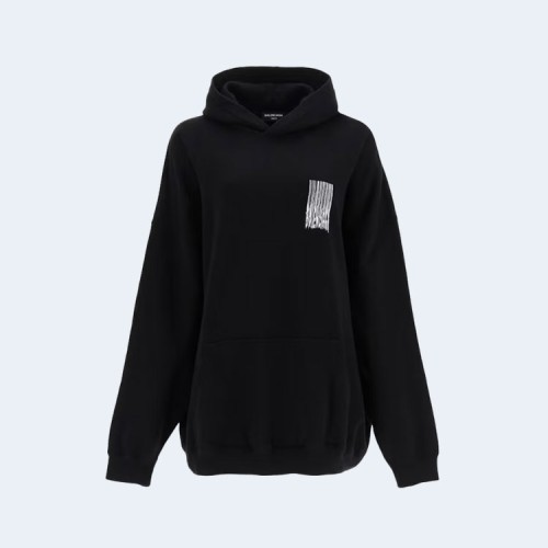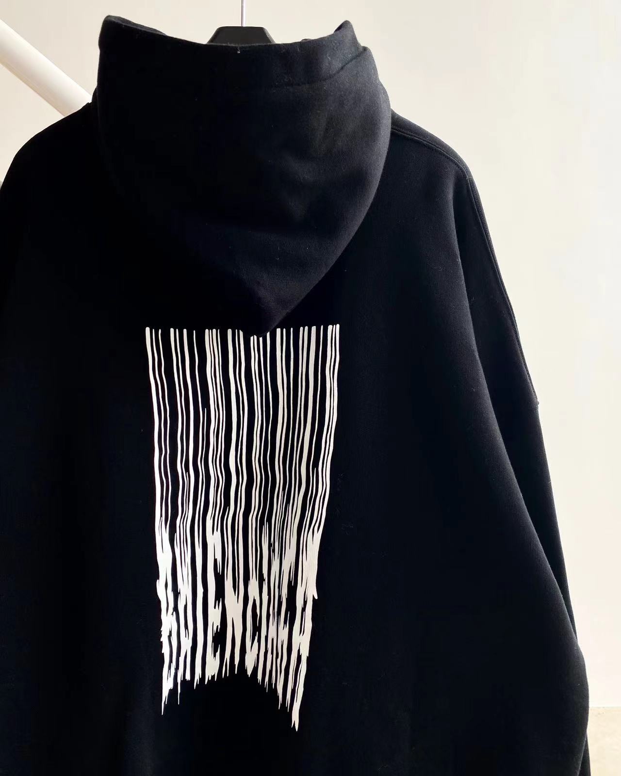 발렌시아가 바코드 로고 코튼 후디 블랙