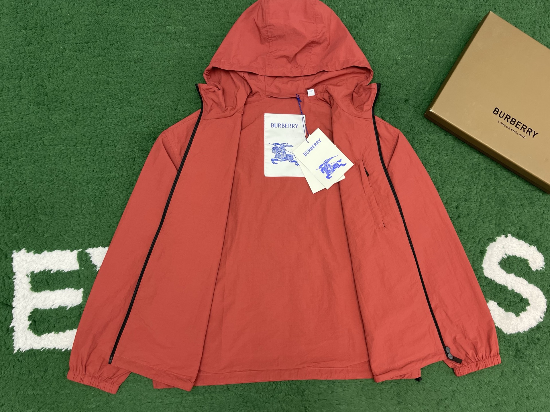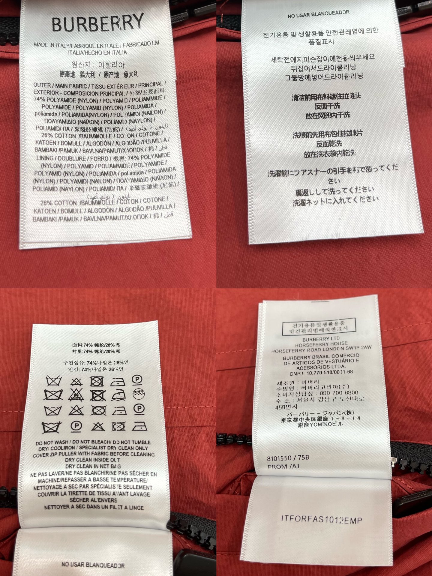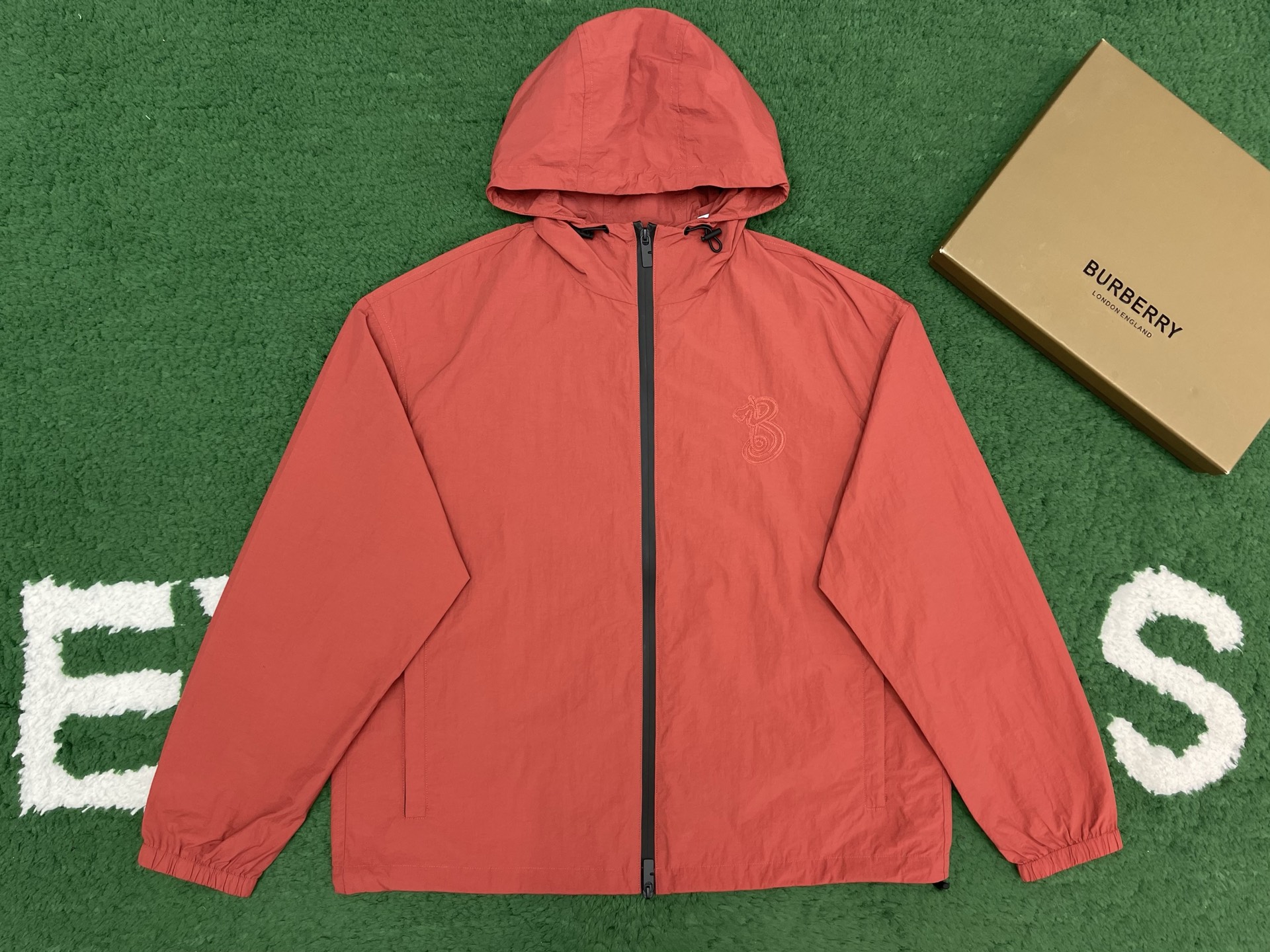 버버리 나일론 코튼 B로고 레드 자켓