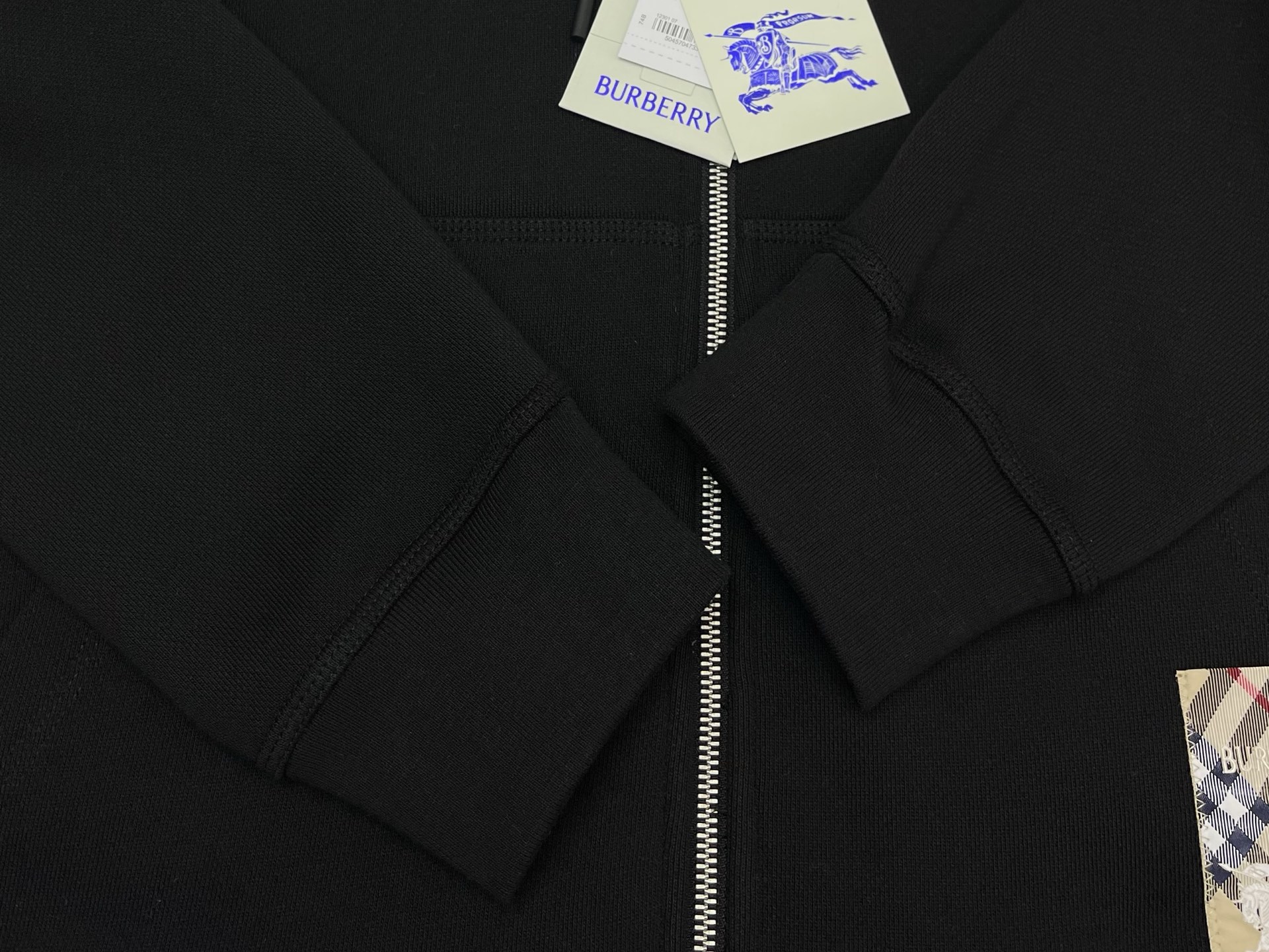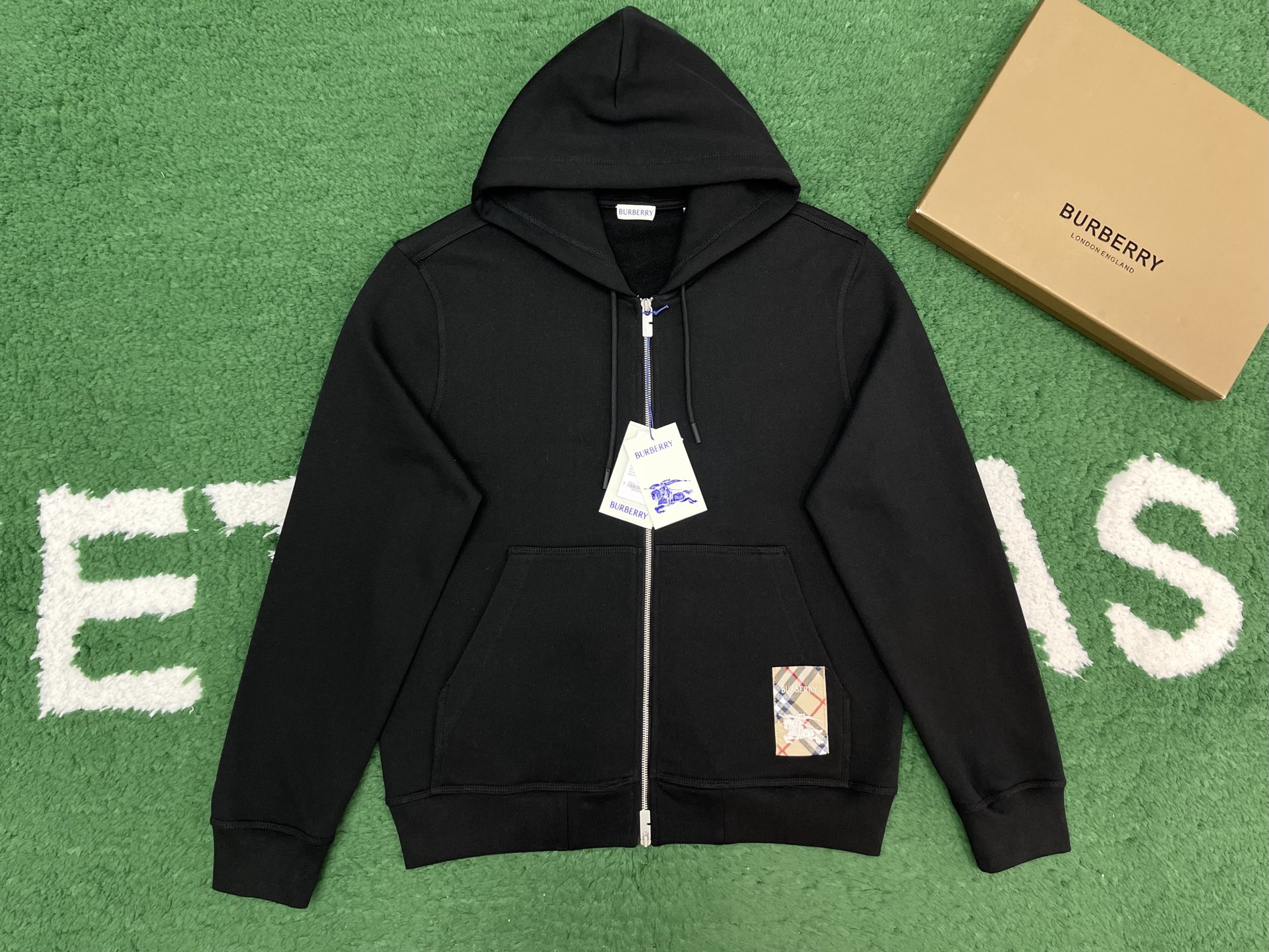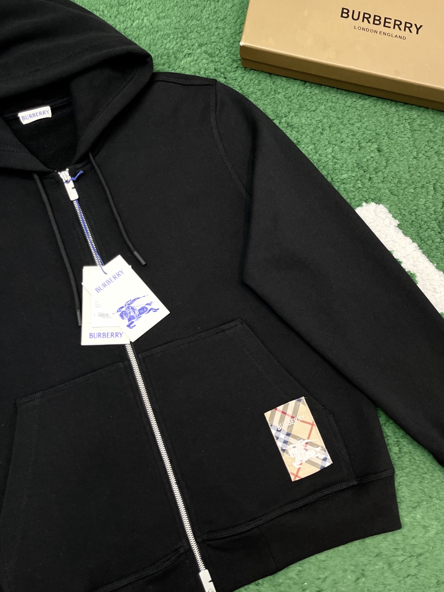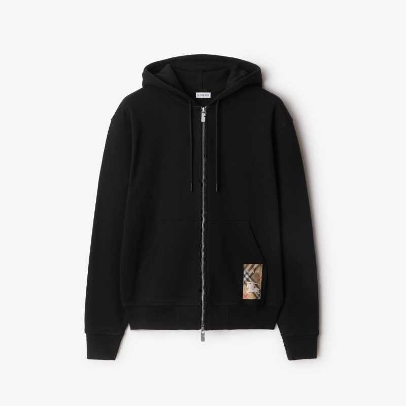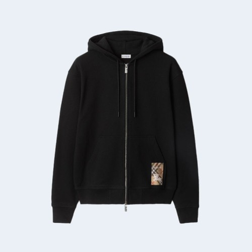 버버리 체크 라벨 코튼 후드 블랙