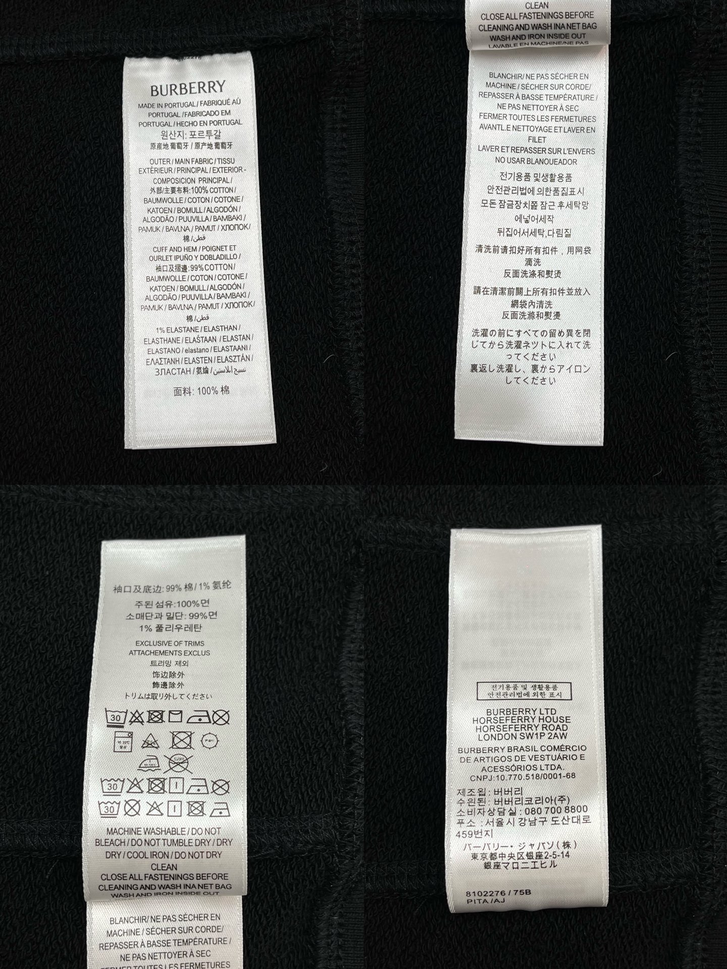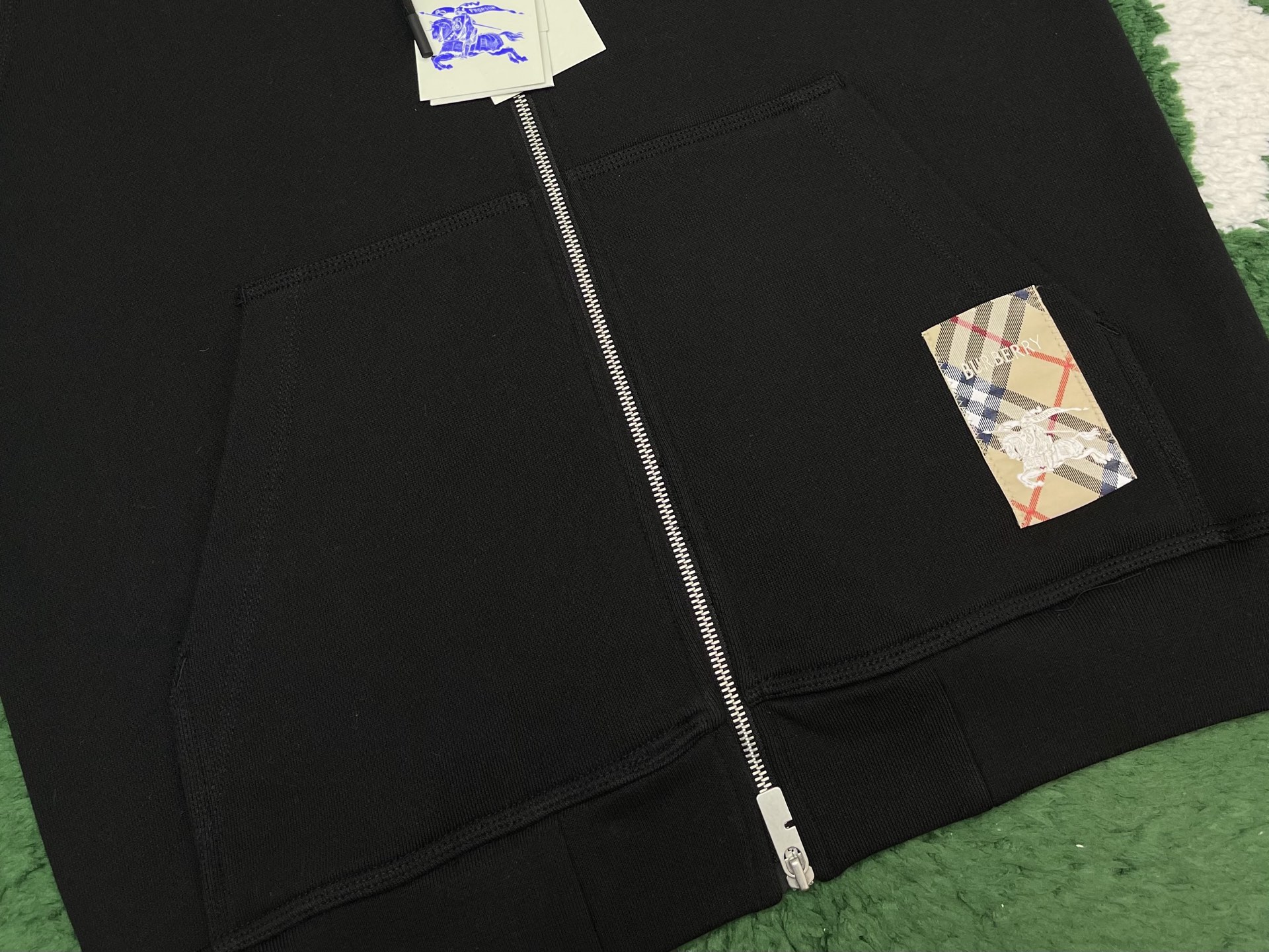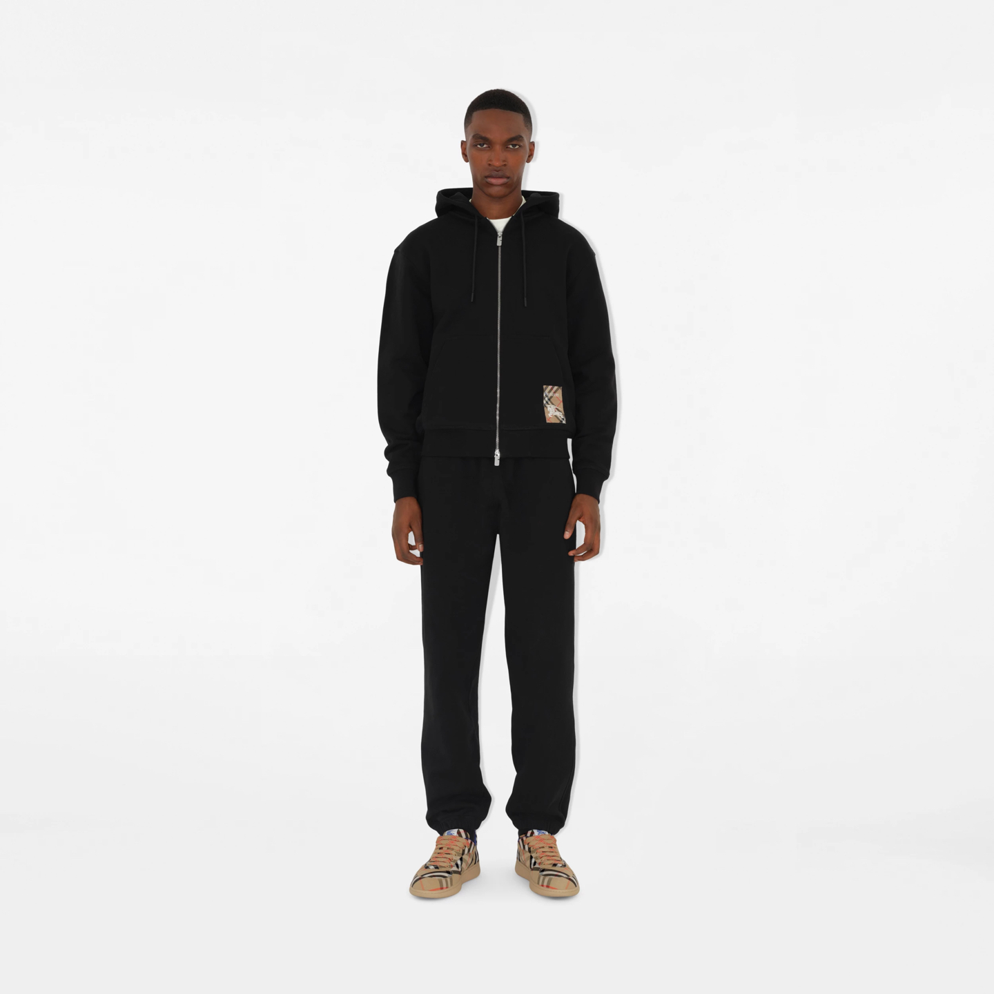 버버리 체크 라벨 코튼 후드 블랙