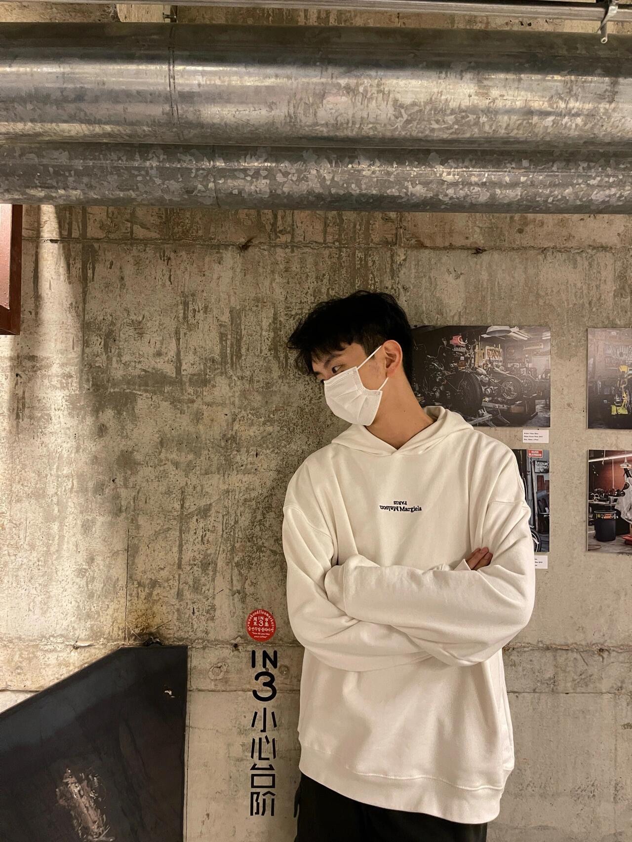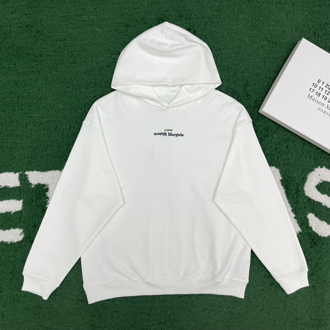 메종 마르지엘라 업사이드 다운 자수 로고 후드