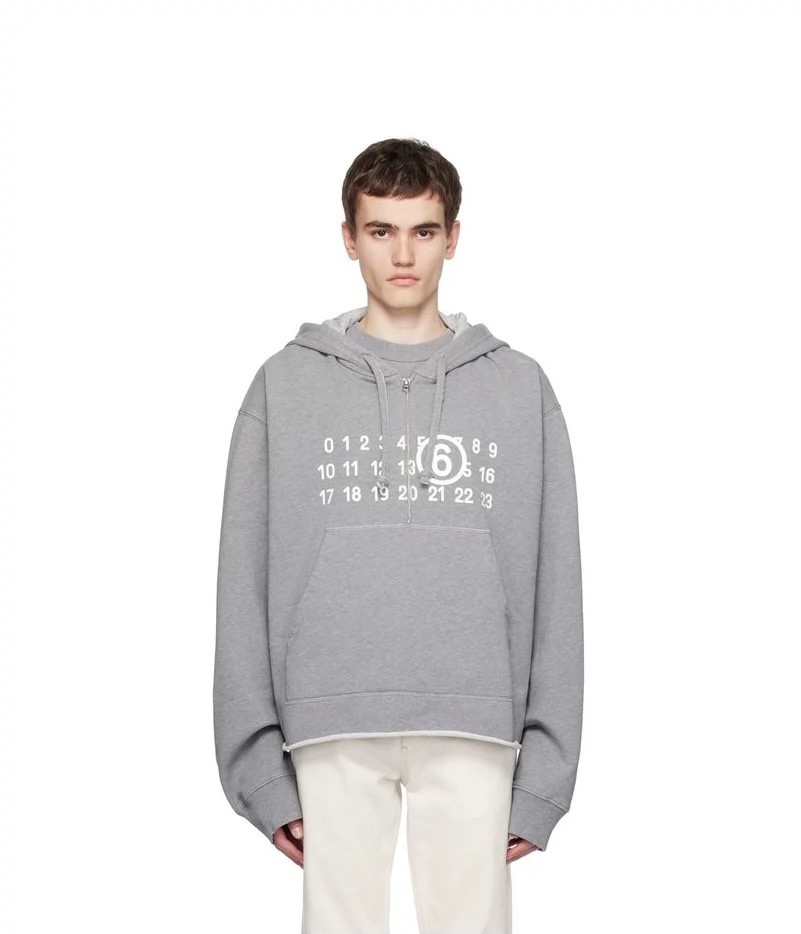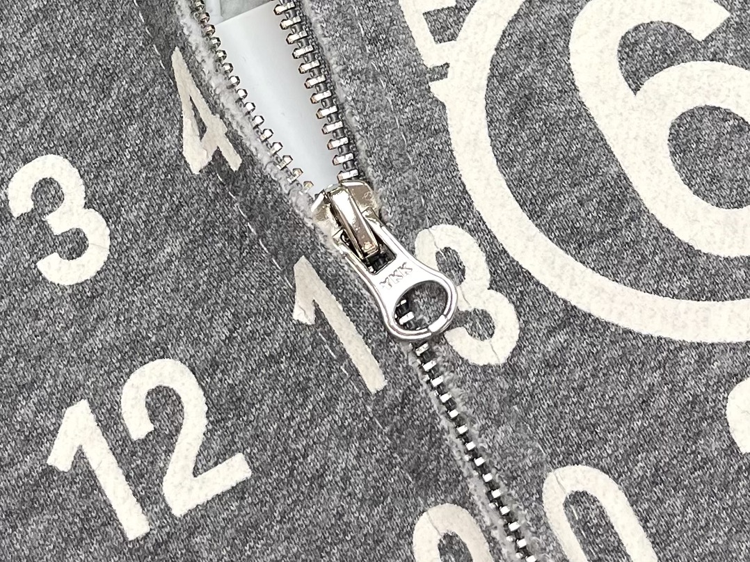 메종 마르지엘라 넘버 로고 집업 후디 그레이