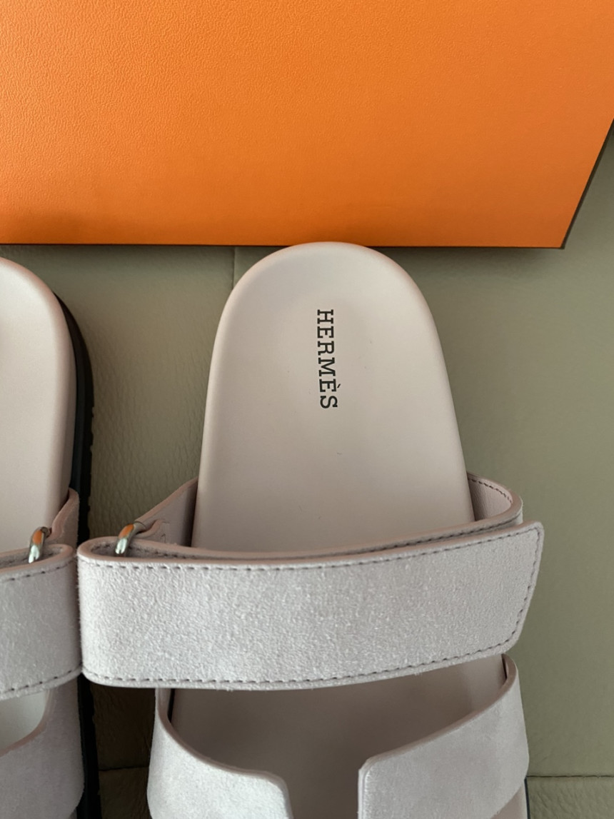 에르메스 시프레 샌들 스웨이드 고트스킨 & 로즈 포슬렌