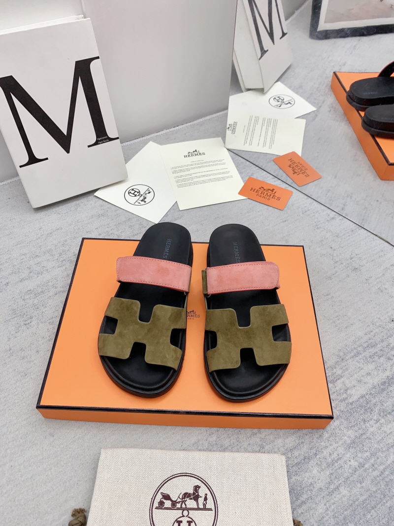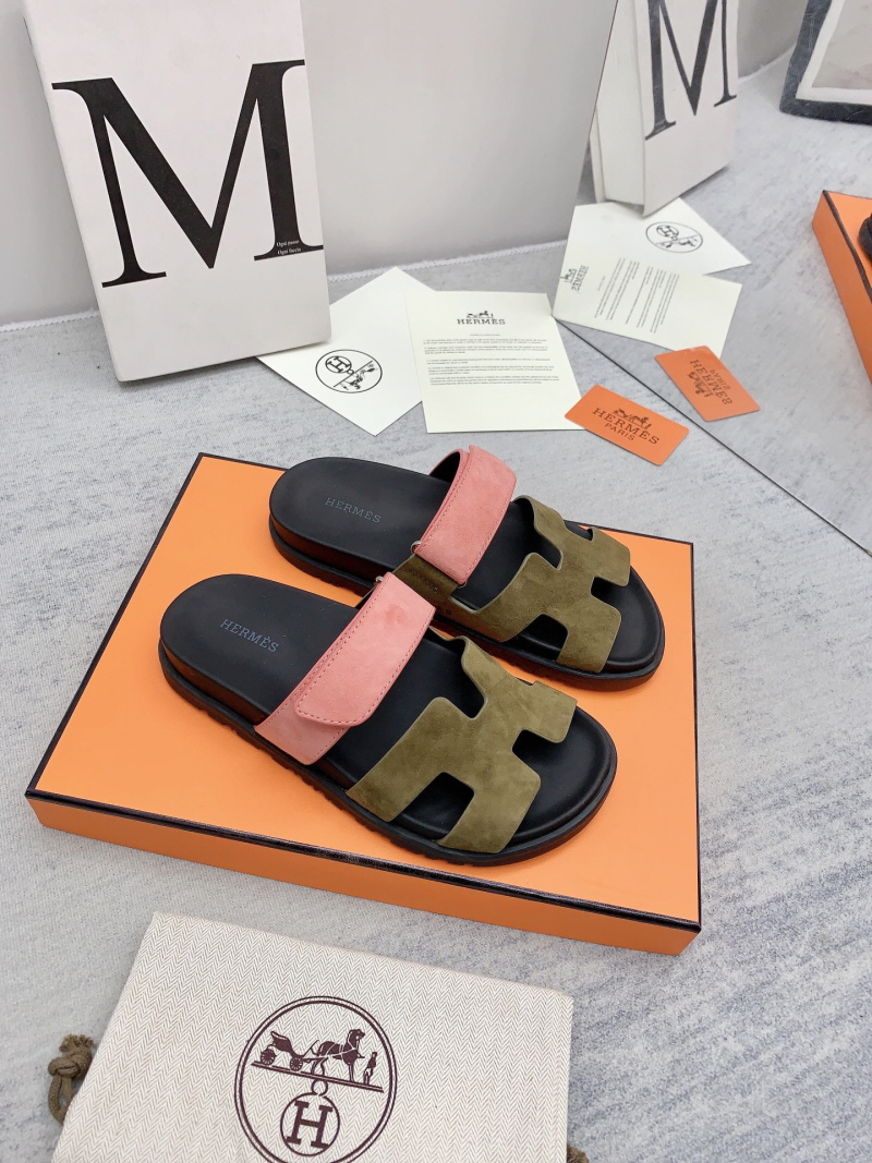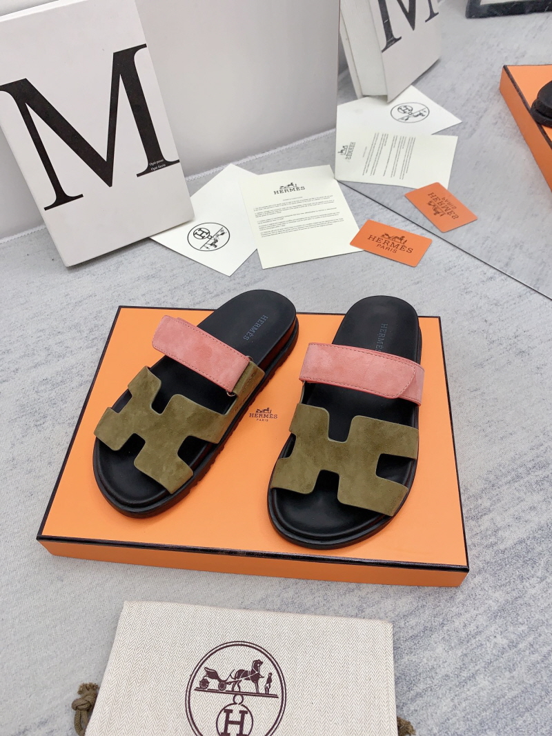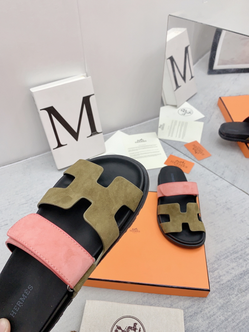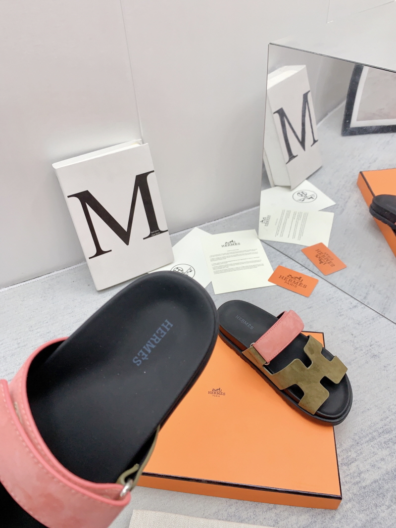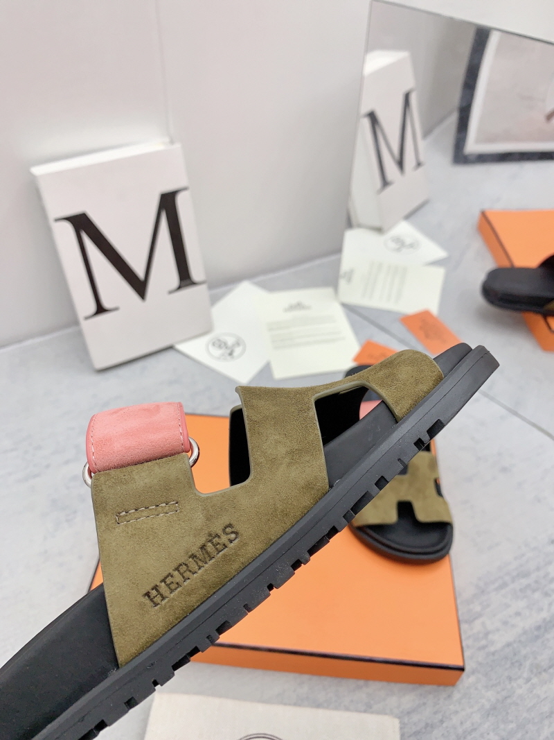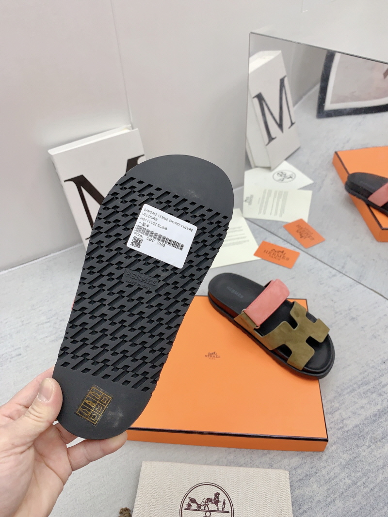 에르메스 시프레 샌들 스웨이드 고트스킨 & 툰드라 로즈