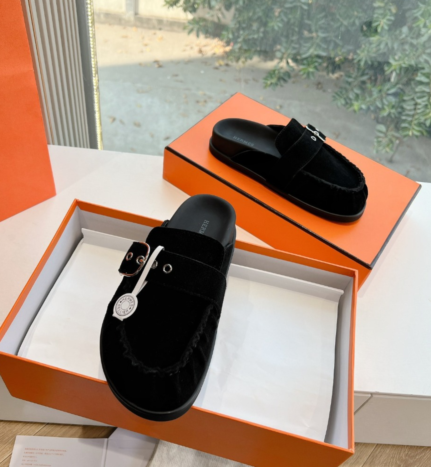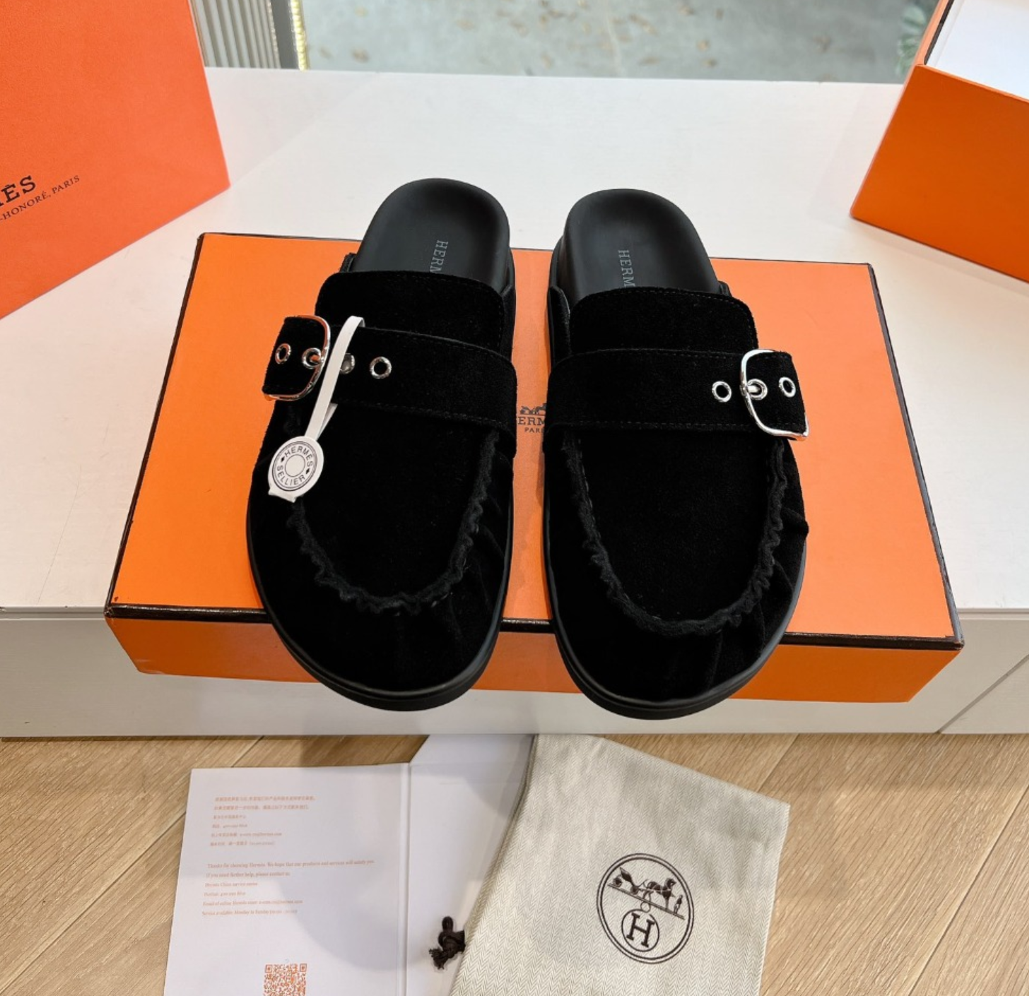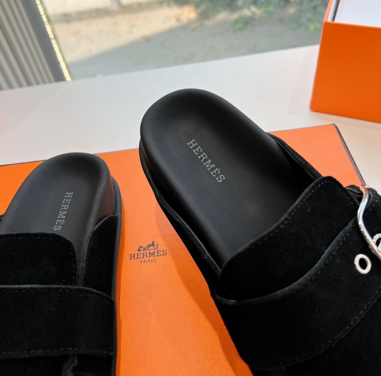 에르메스 키 뮬 스웨이드 카프스킨 앤 누아 블랙