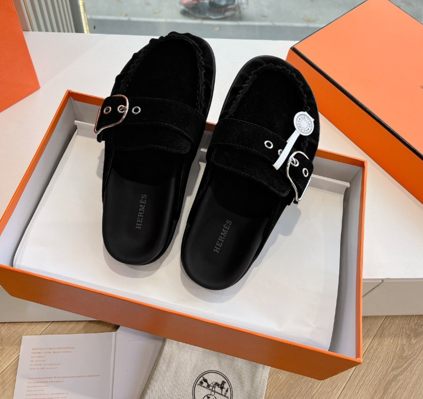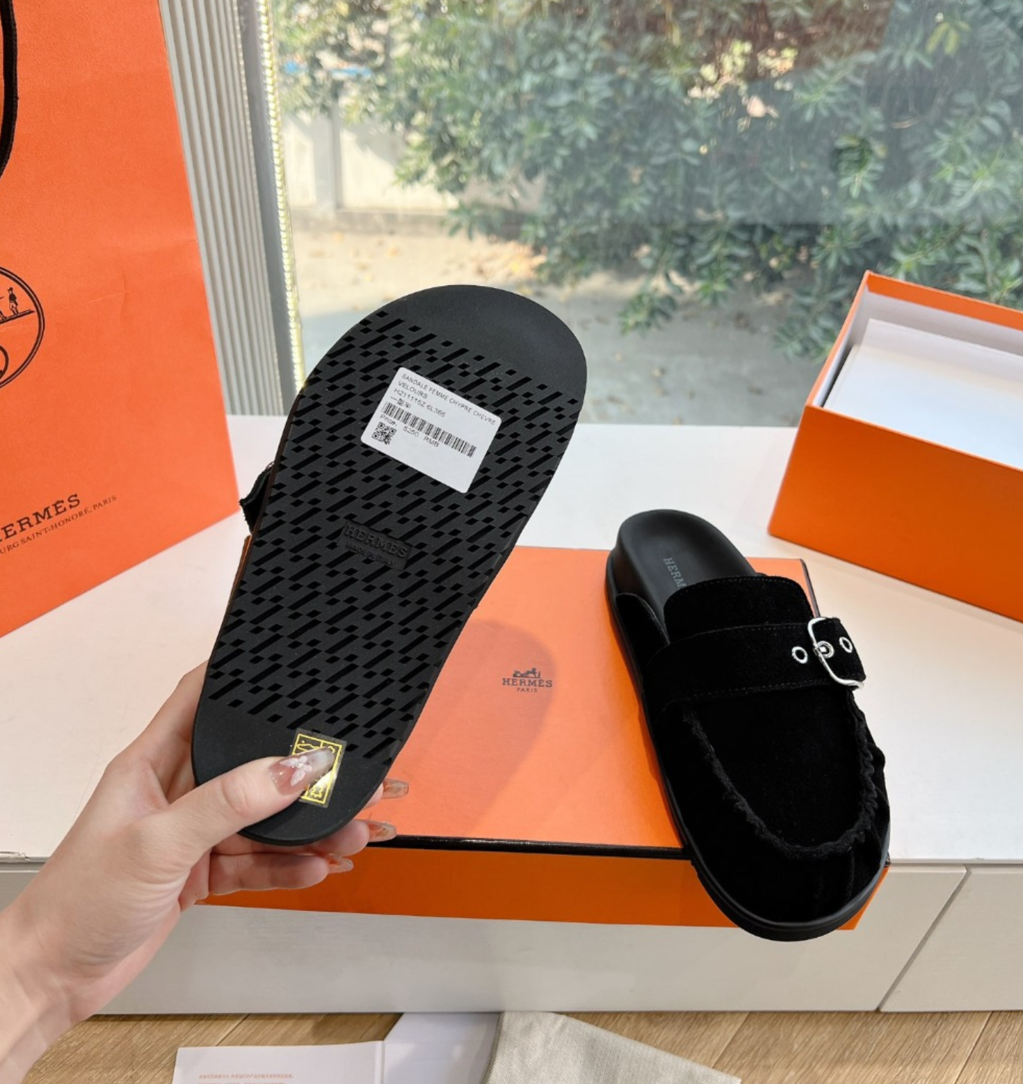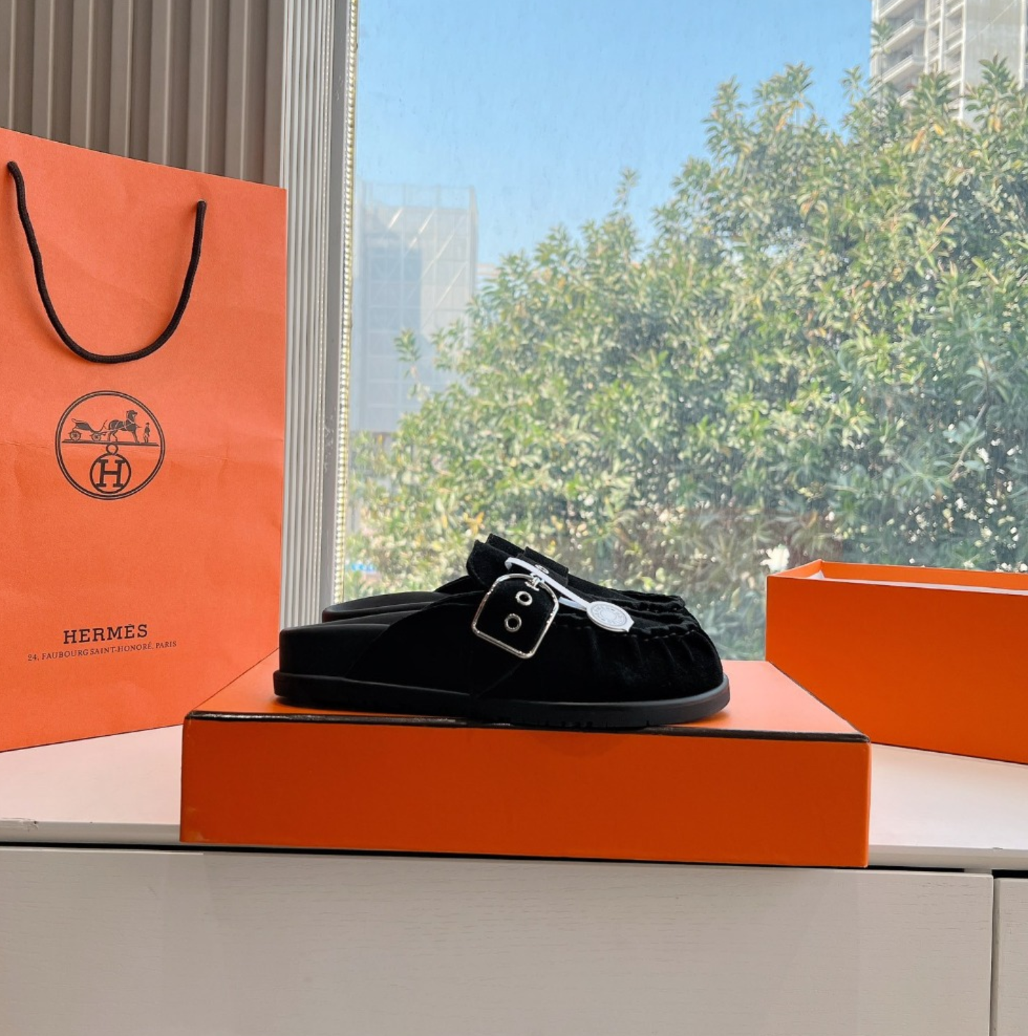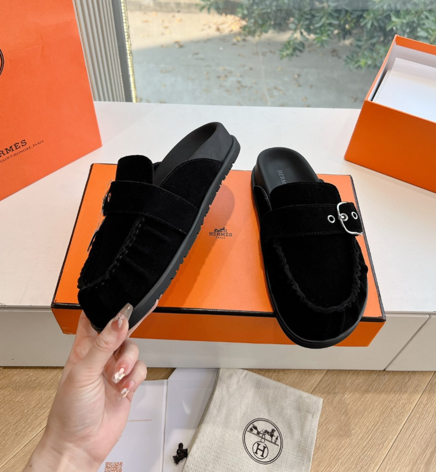 에르메스 키 뮬 스웨이드 카프스킨 앤 누아 블랙