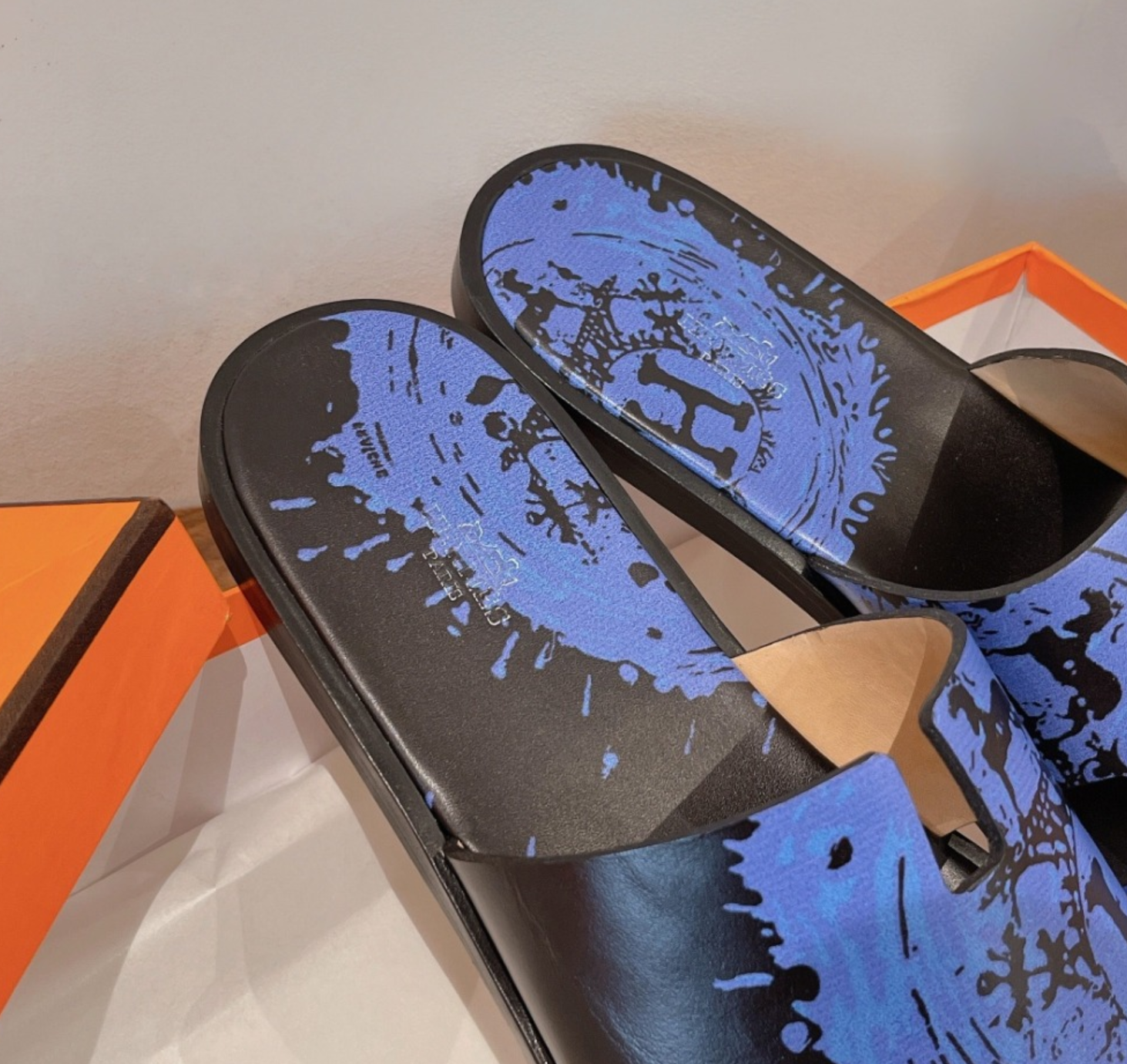 에르메스 일렉트릭 샌들 스웨이드 고트스킨 & 블루 셀레스트