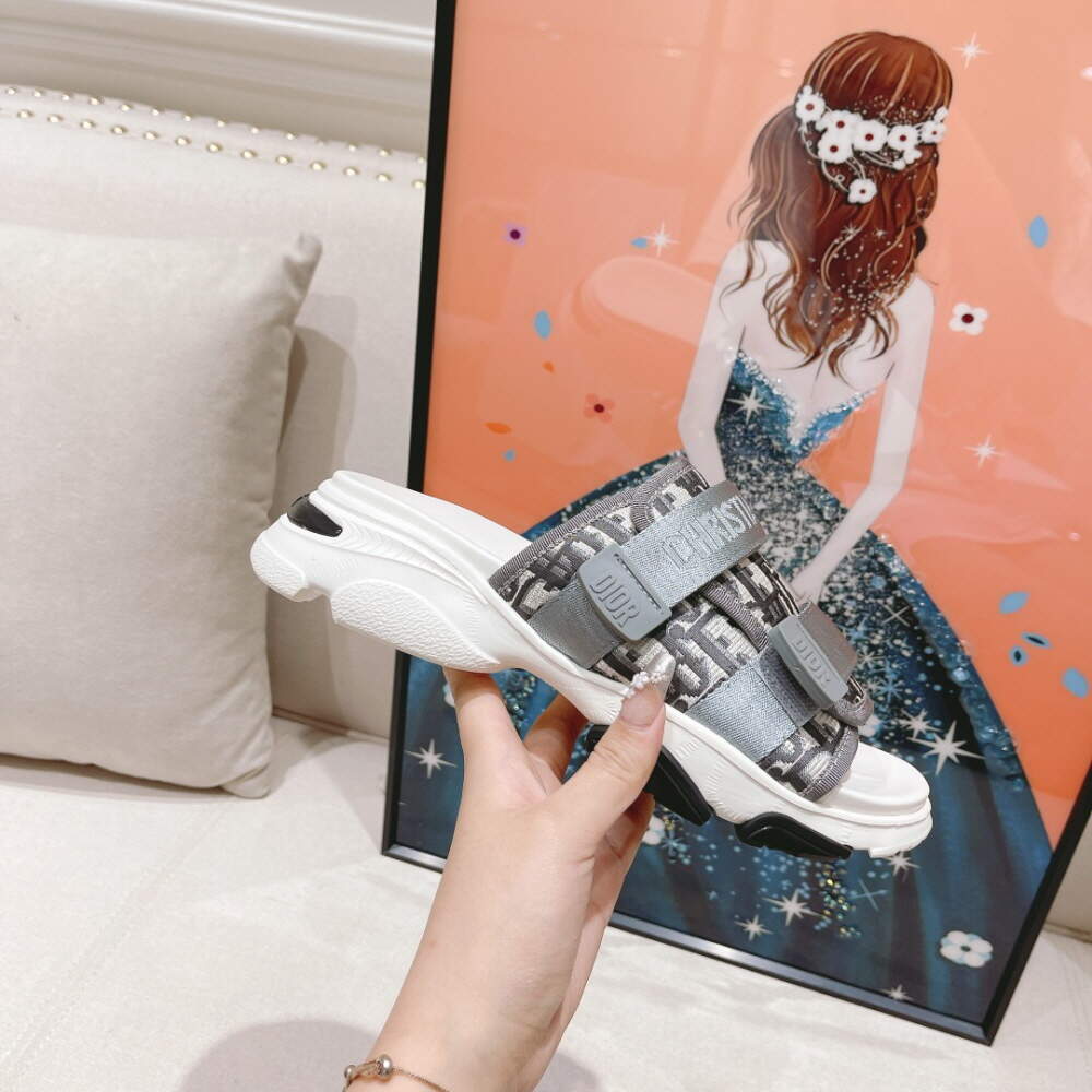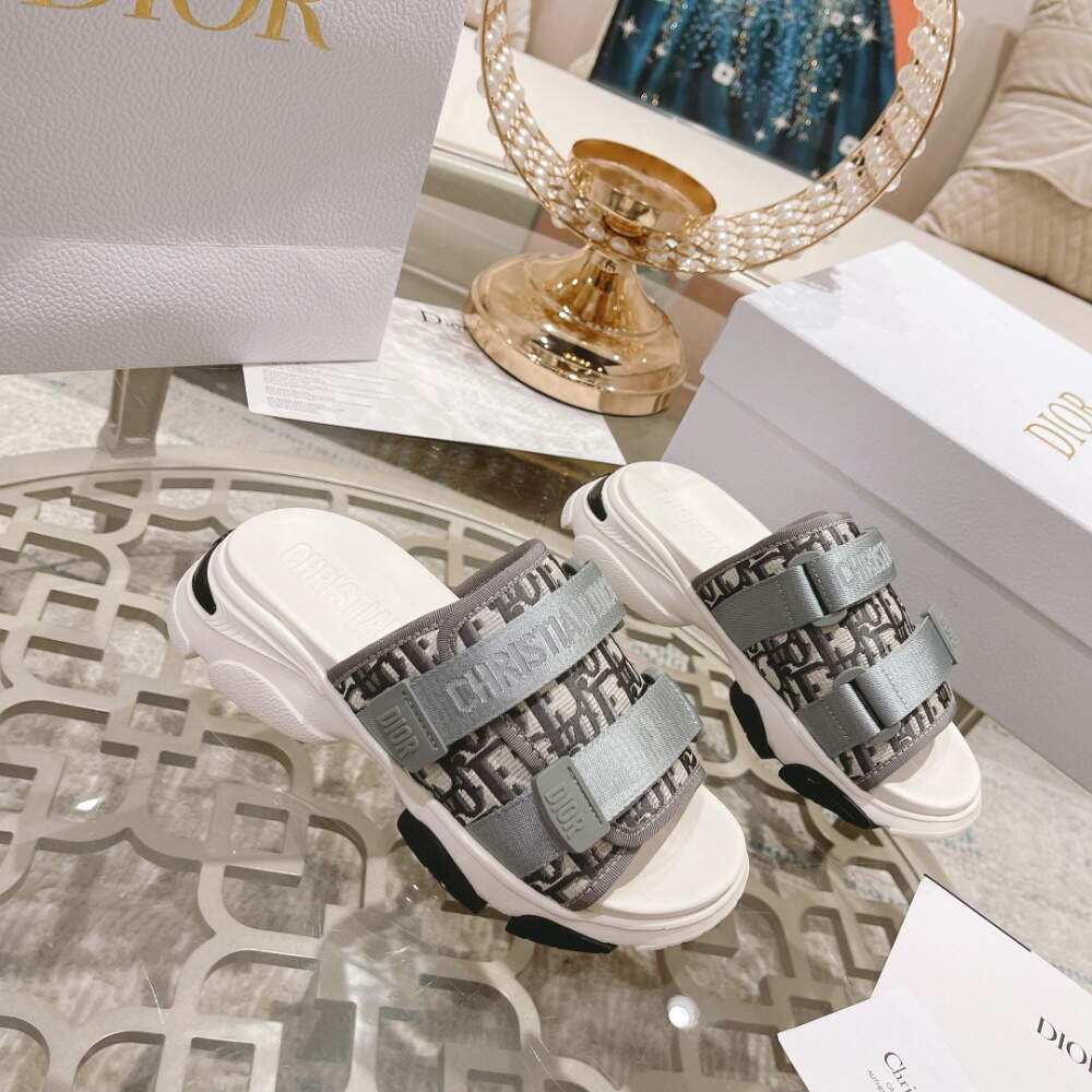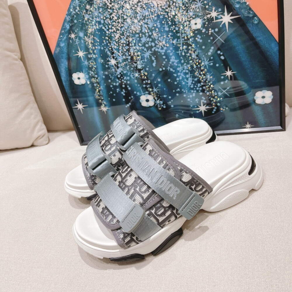 디올 D-WANDER 딥 블루 오블리크 테크니컬 패브릭 샌들
