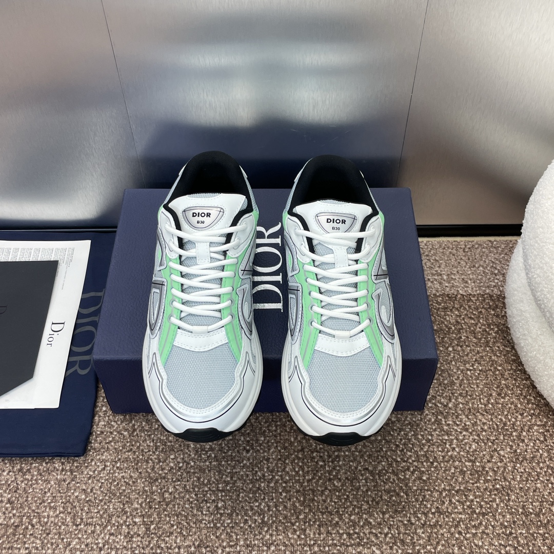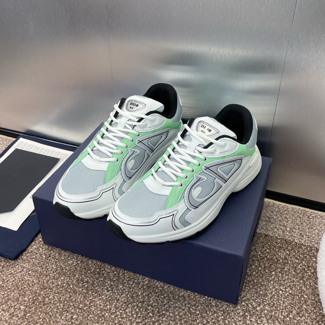 디올 B30 스니커즈 민트 메시 & 민트, 형광, 블랙 테크니컬 패브릭