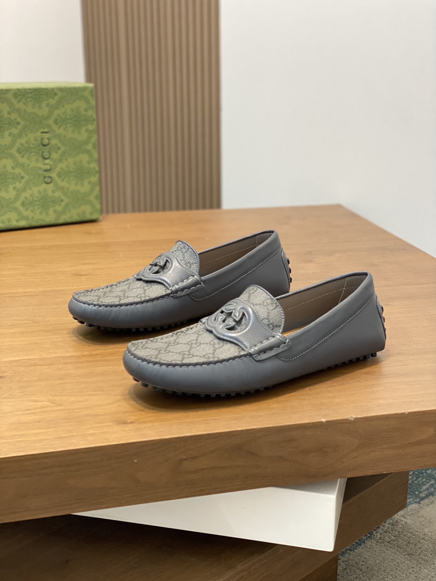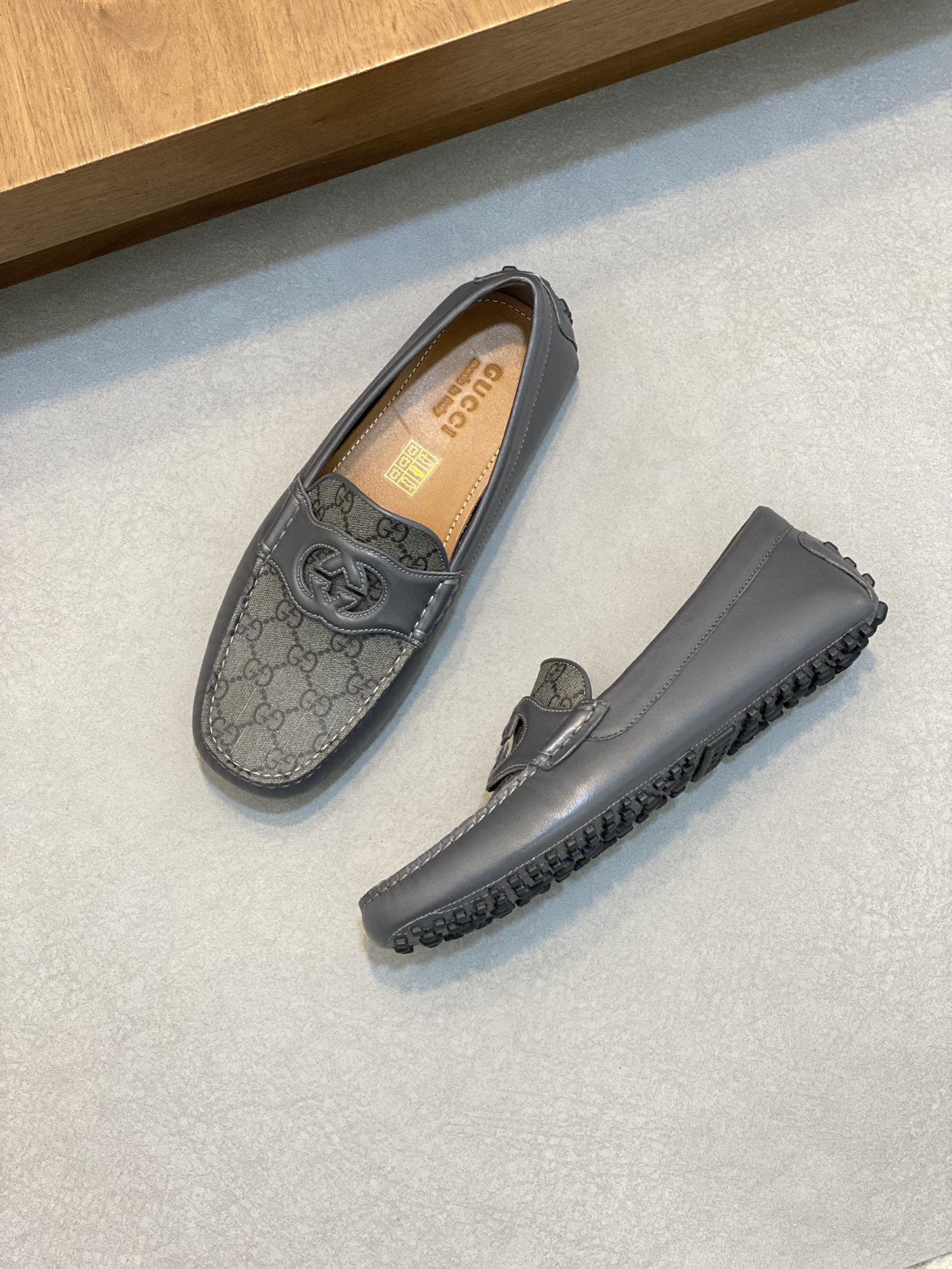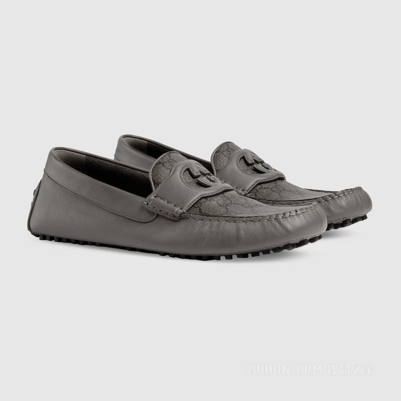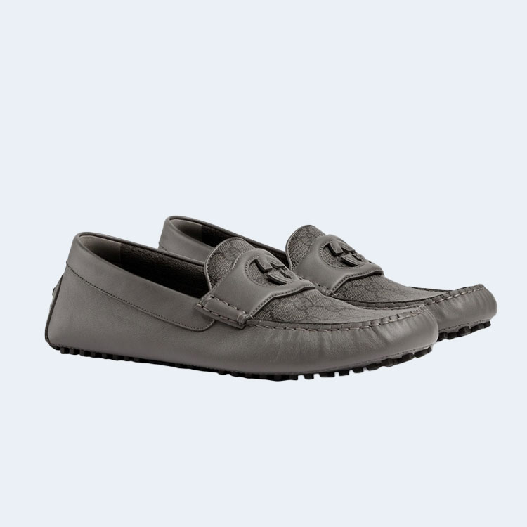 구찌 인터로킹 G 드라이빙 슈즈 로고 그레이 레더