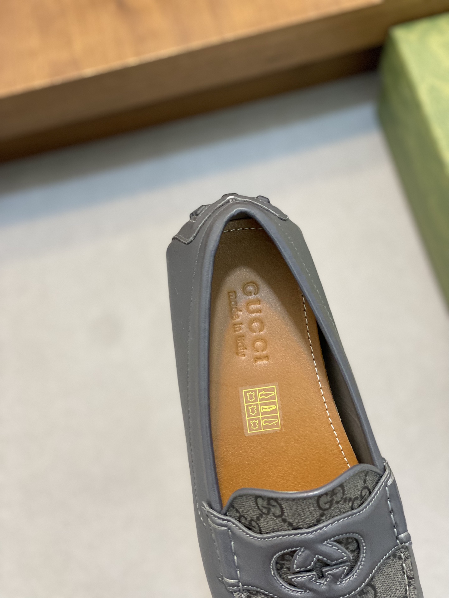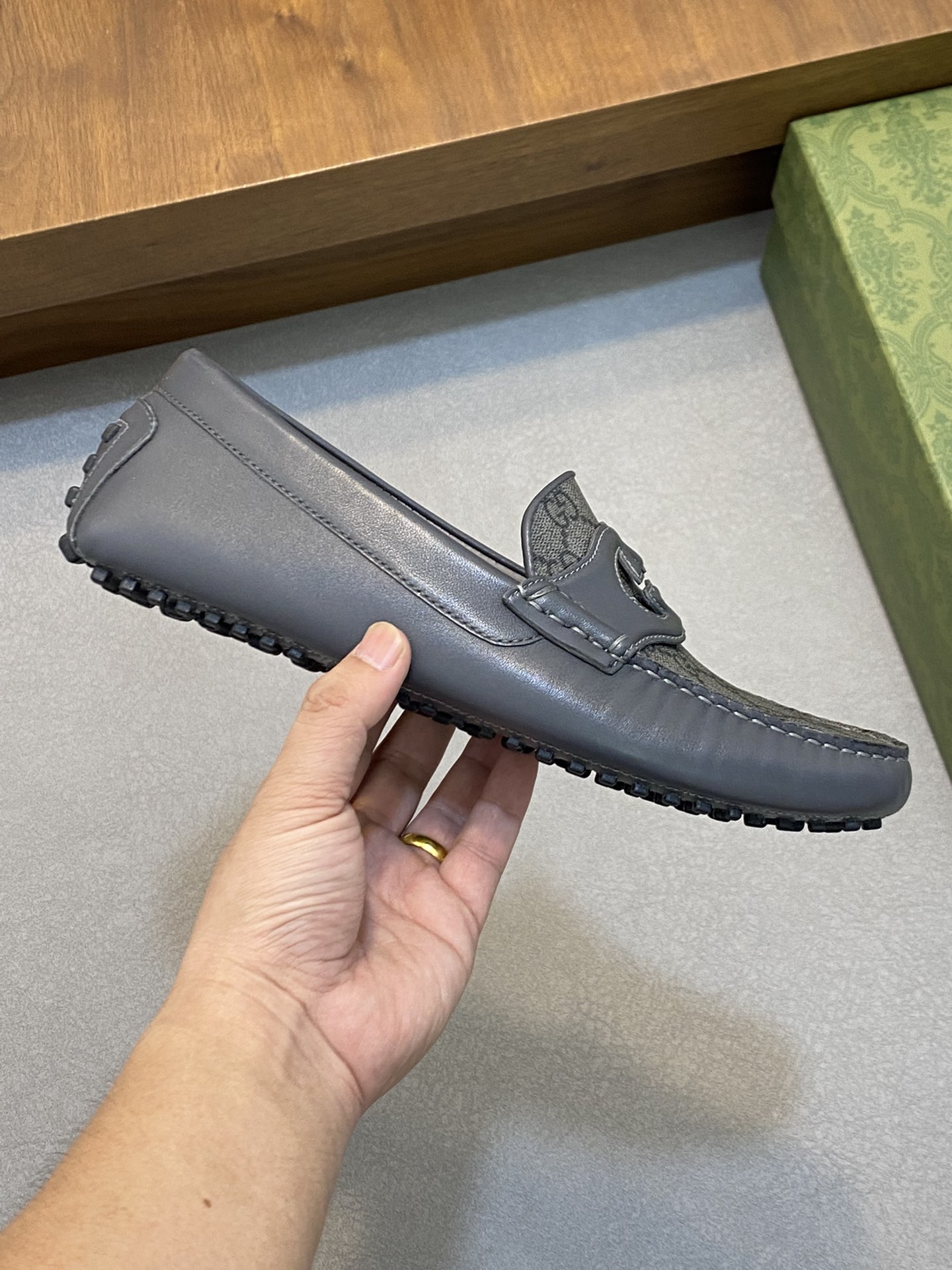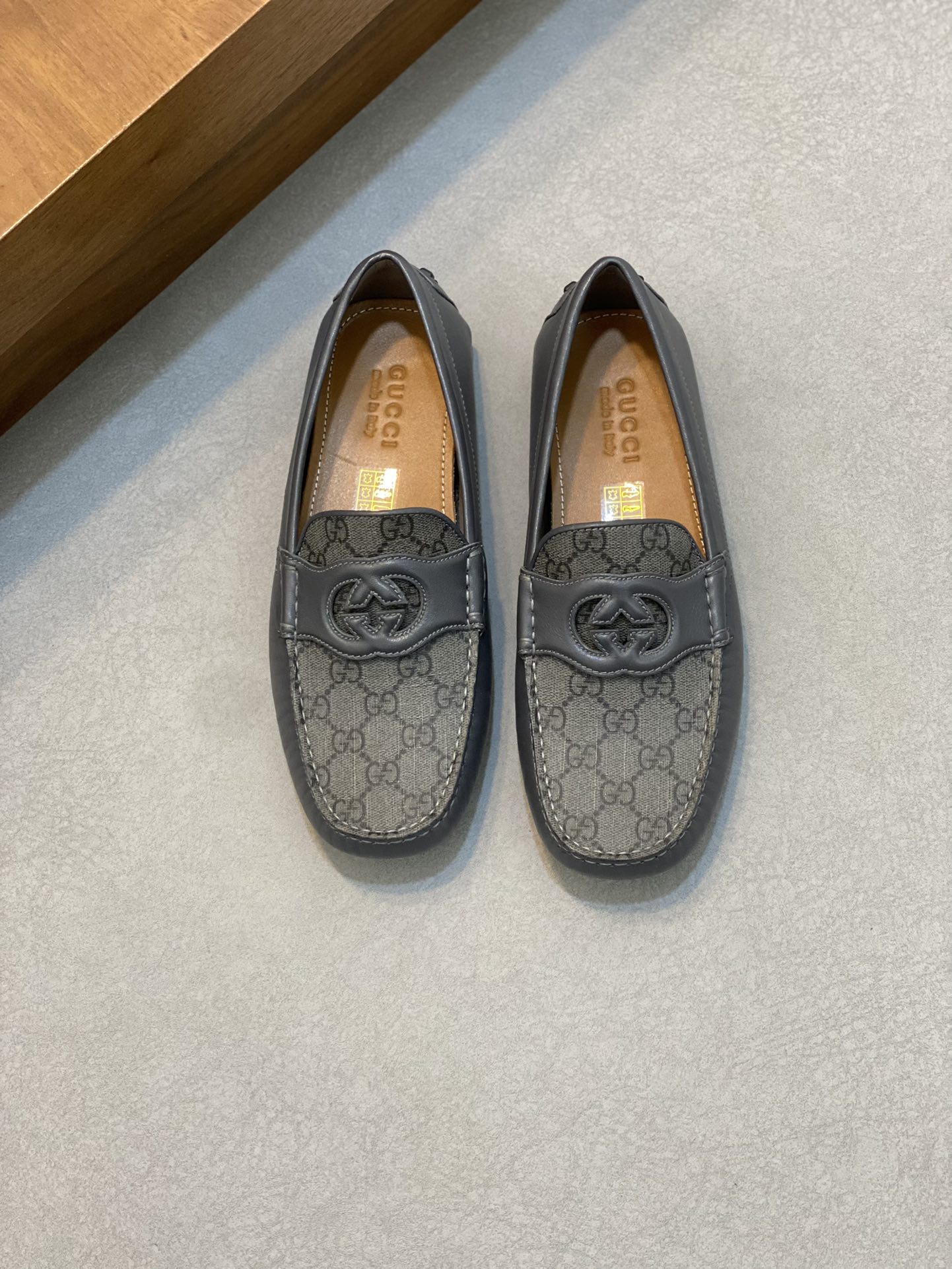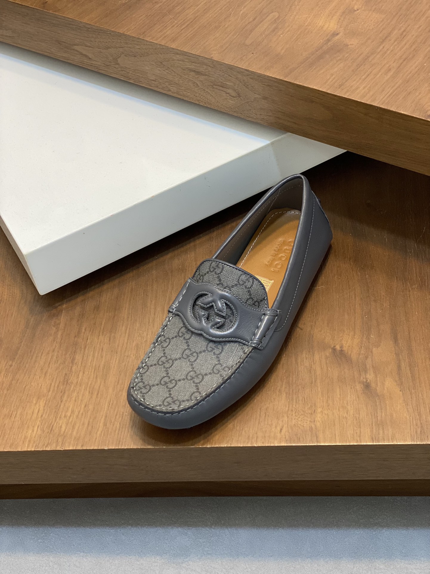 구찌 인터로킹 G 드라이빙 슈즈 로고 그레이 레더