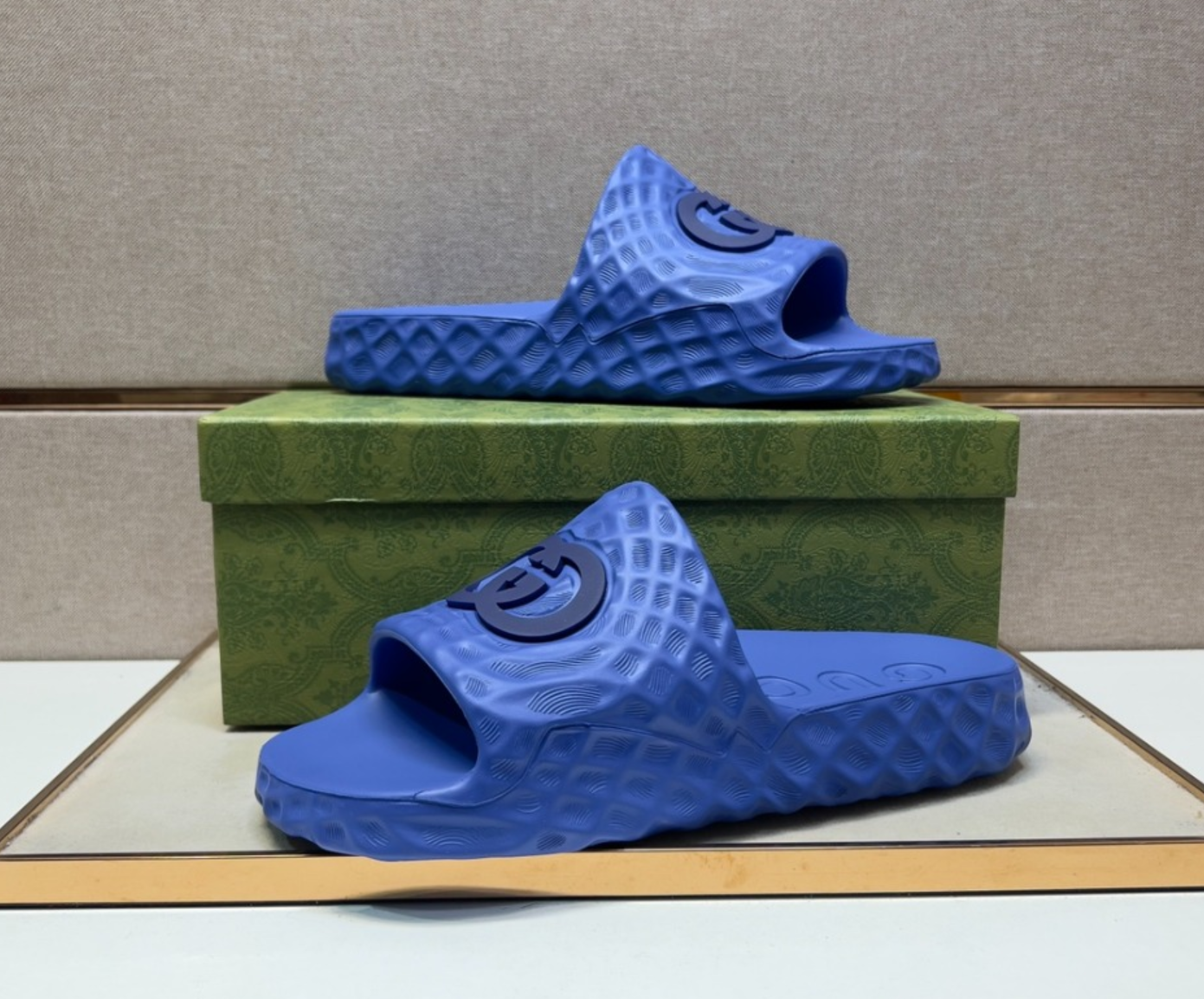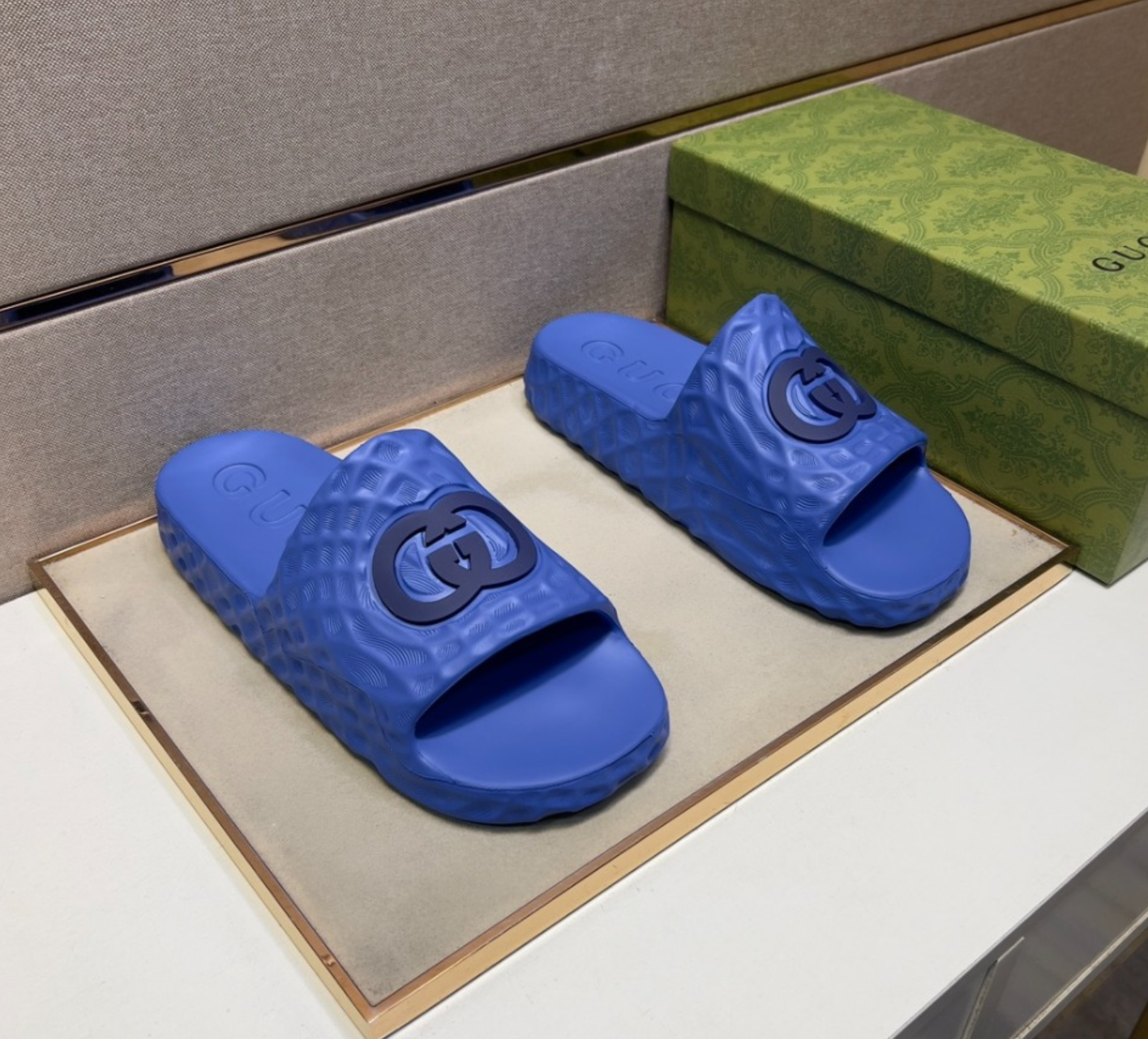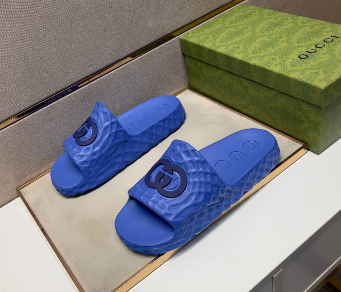 구찌 인터로킹 G 슬라이드 샌들 블루