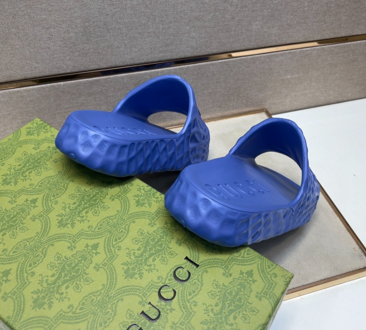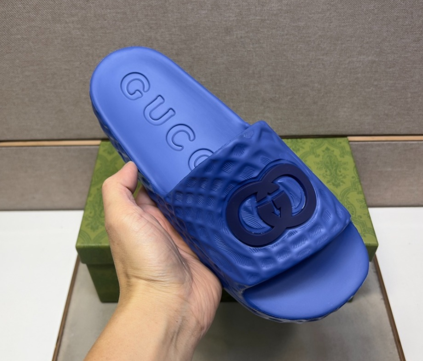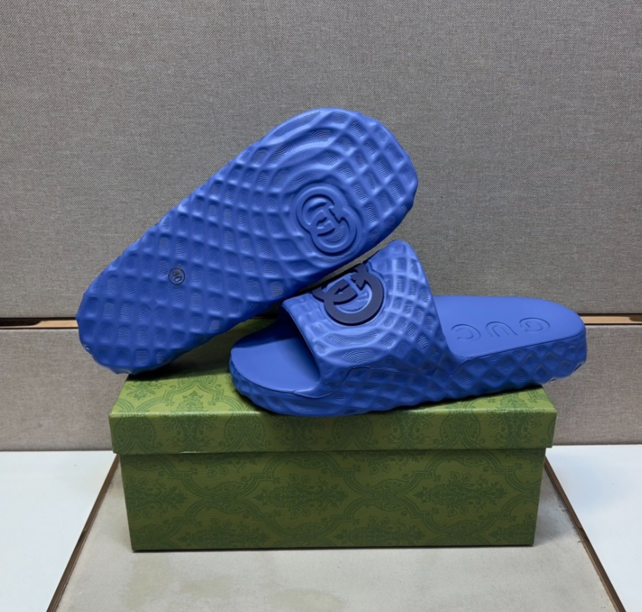 구찌 인터로킹 G 슬라이드 샌들 블루