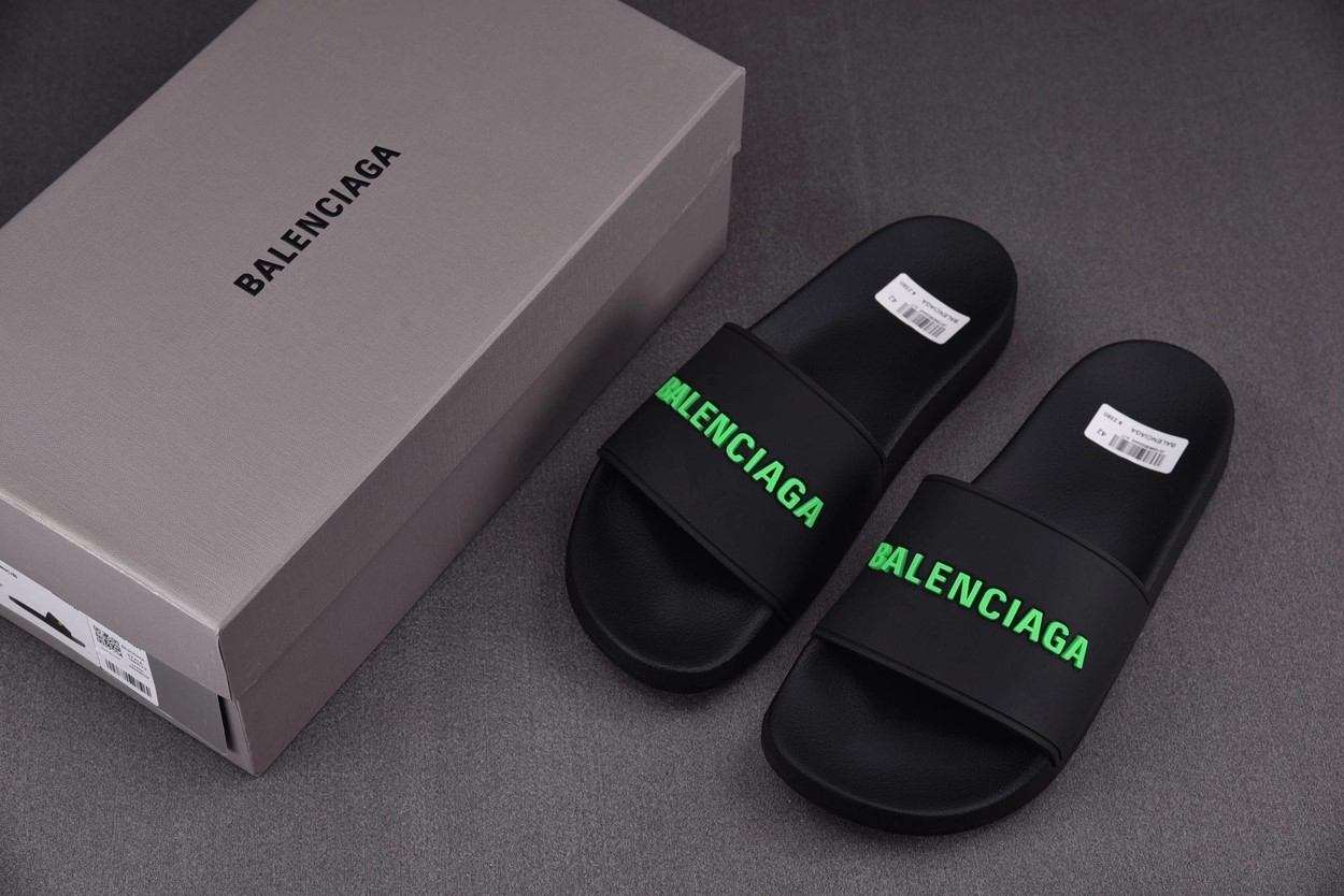 발렌시아가 블랙 그린 풀 슬라이드 샌들