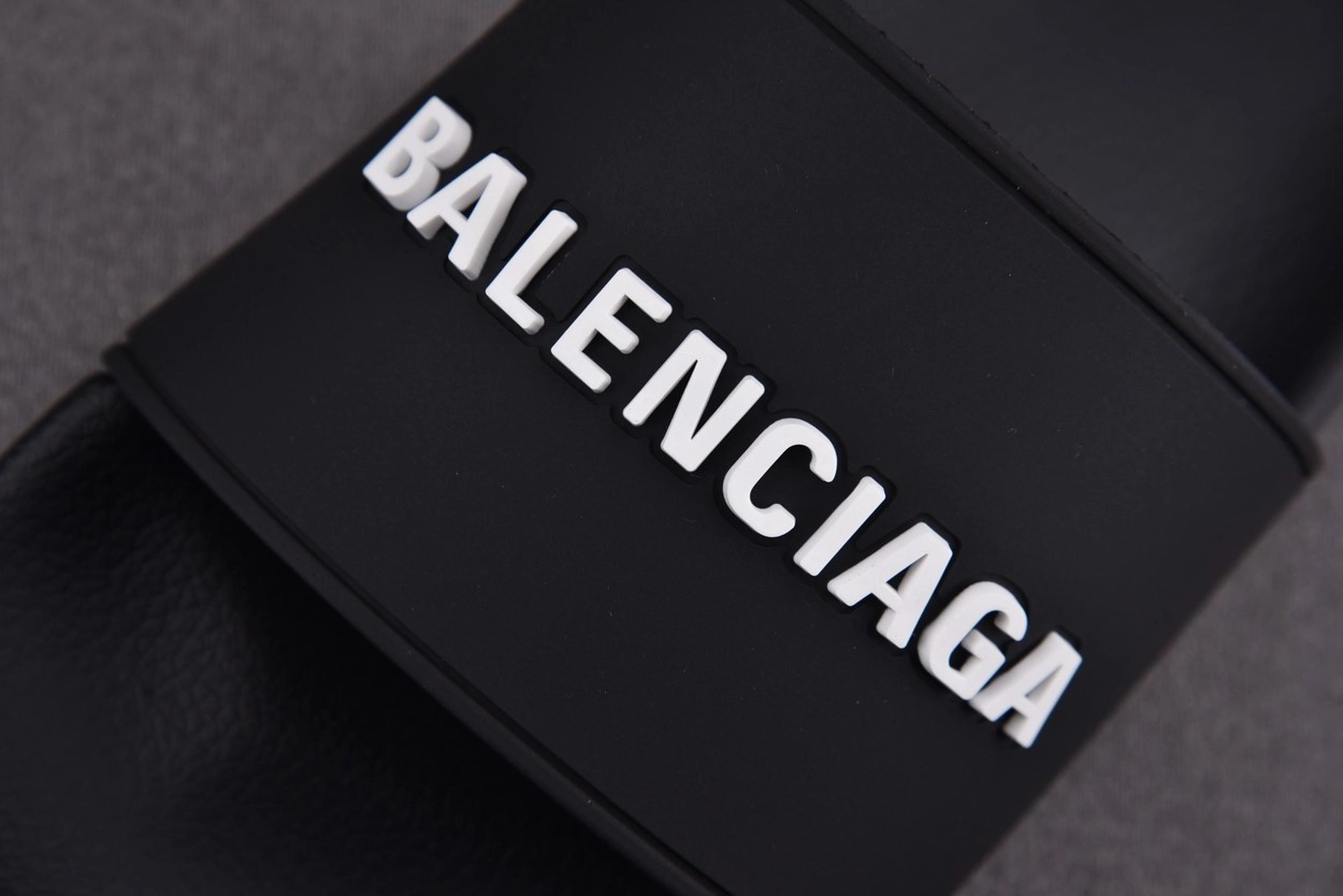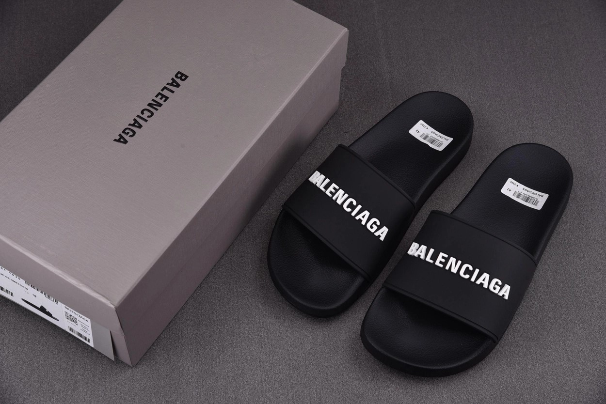발렌시아가 블랙 화이트 풀 슬라이드 샌들