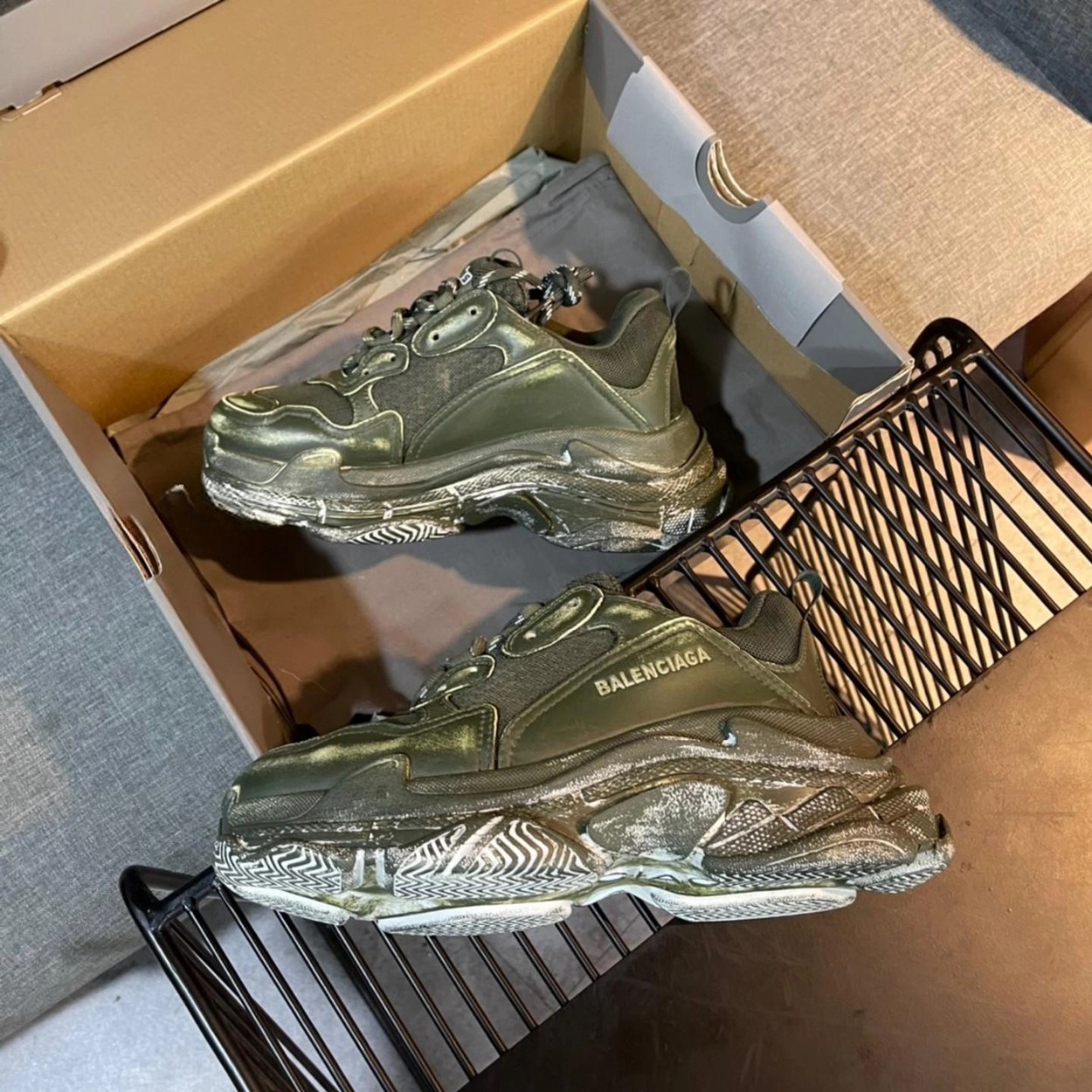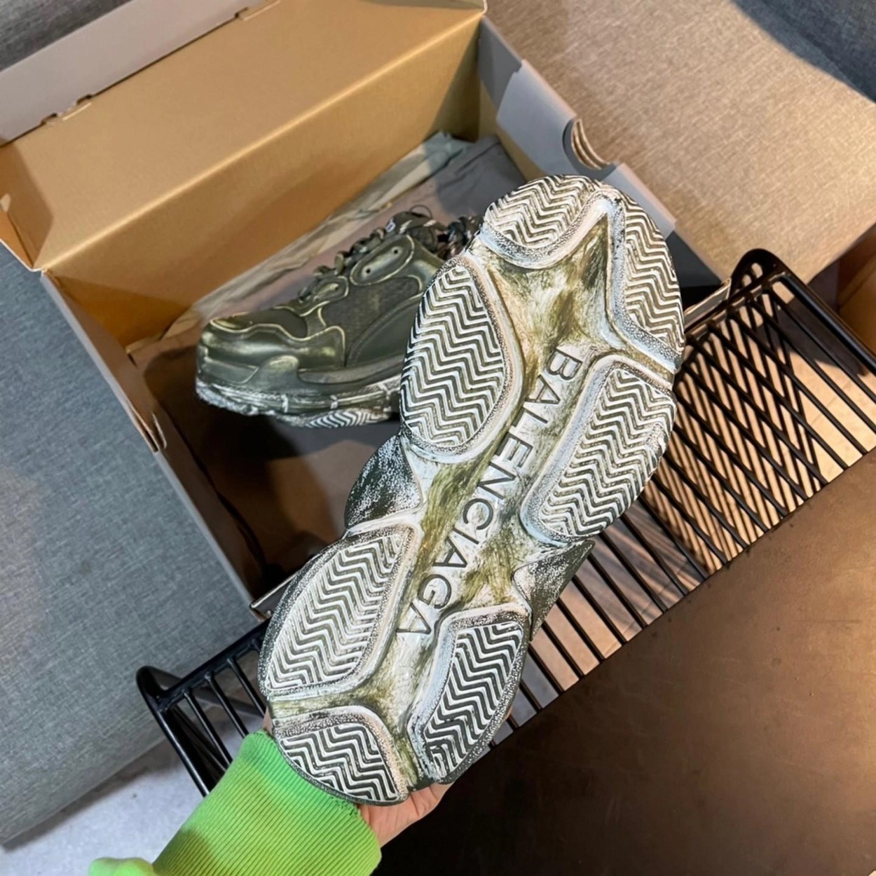 발렌시아가 트리플 S 페이드 카키 스니커즈
