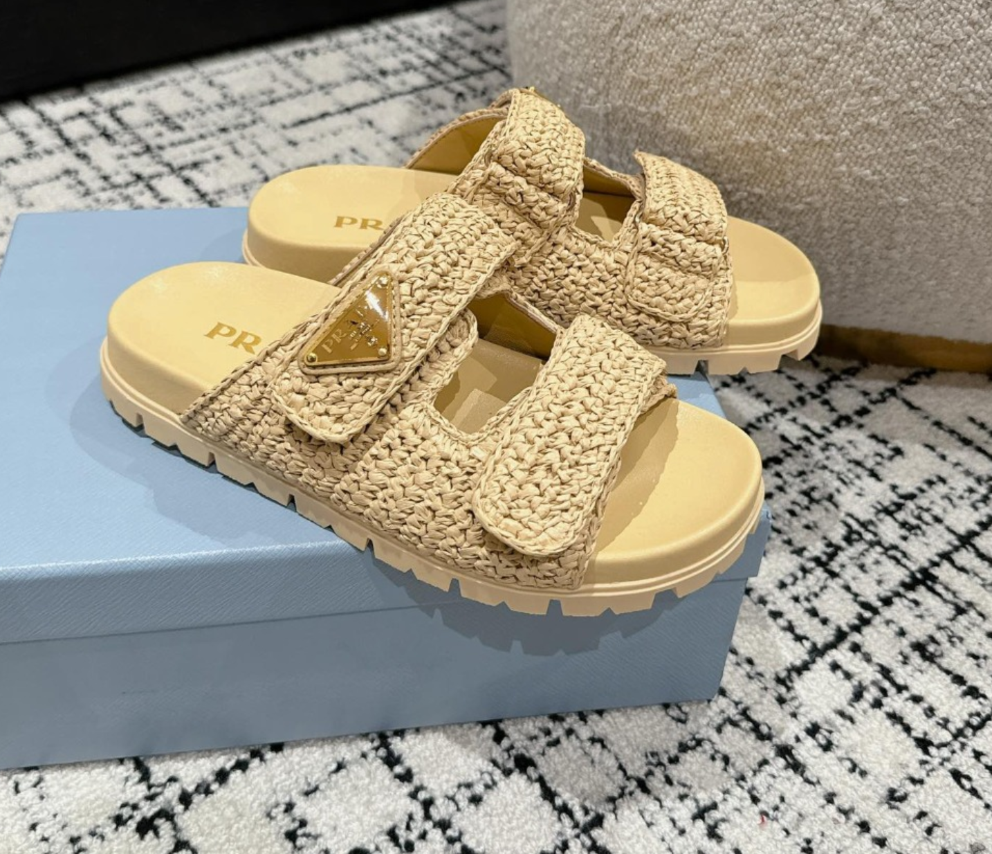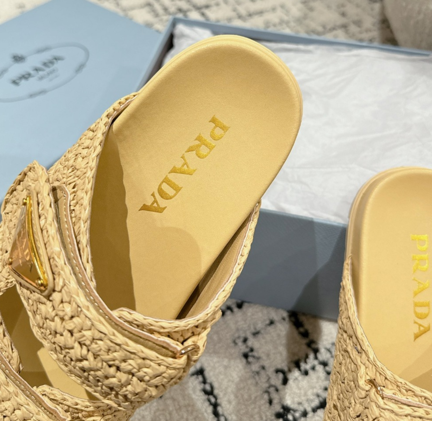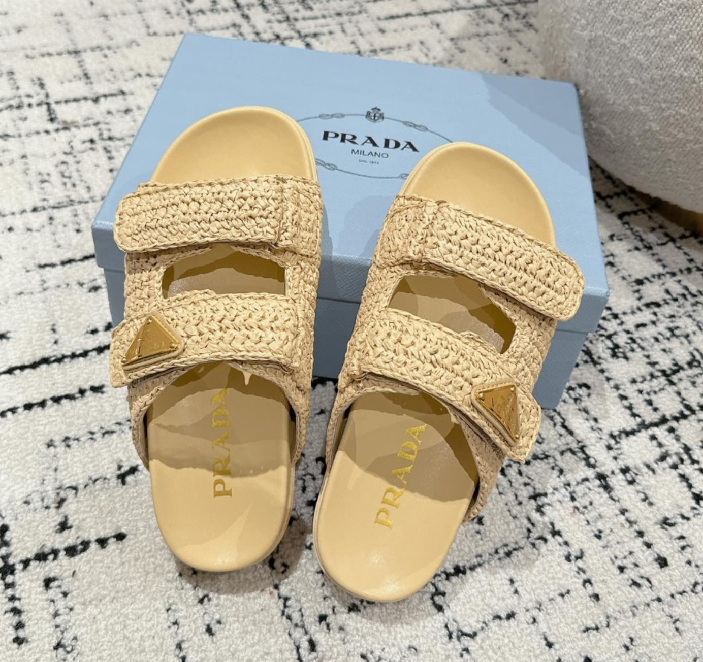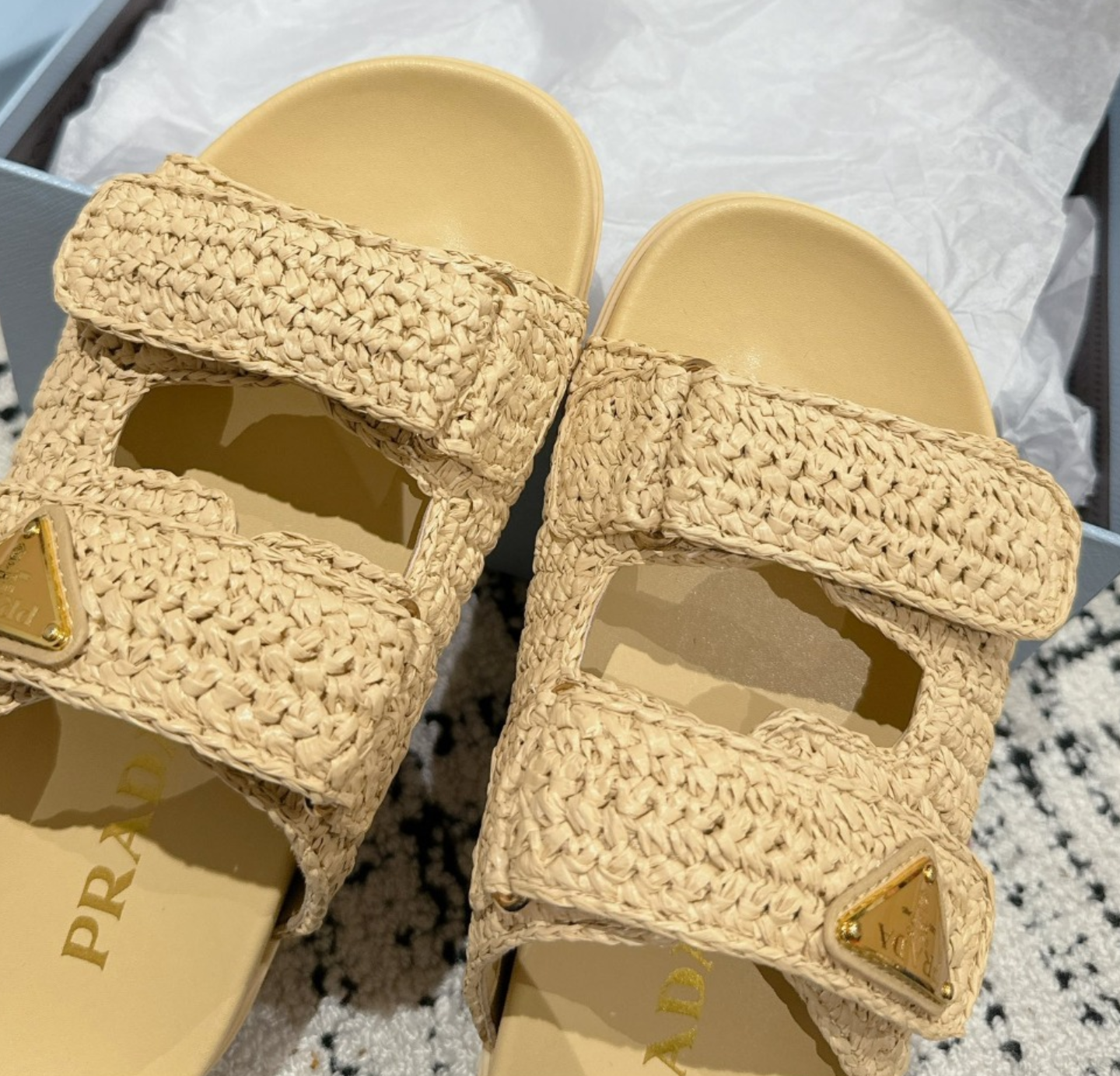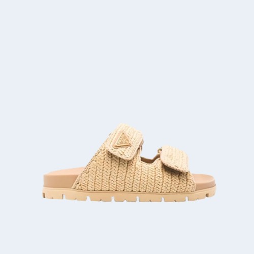 프라다 엠보싱 삼각로고 러버 슬라이드 샌들