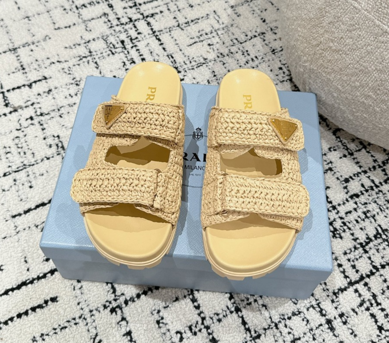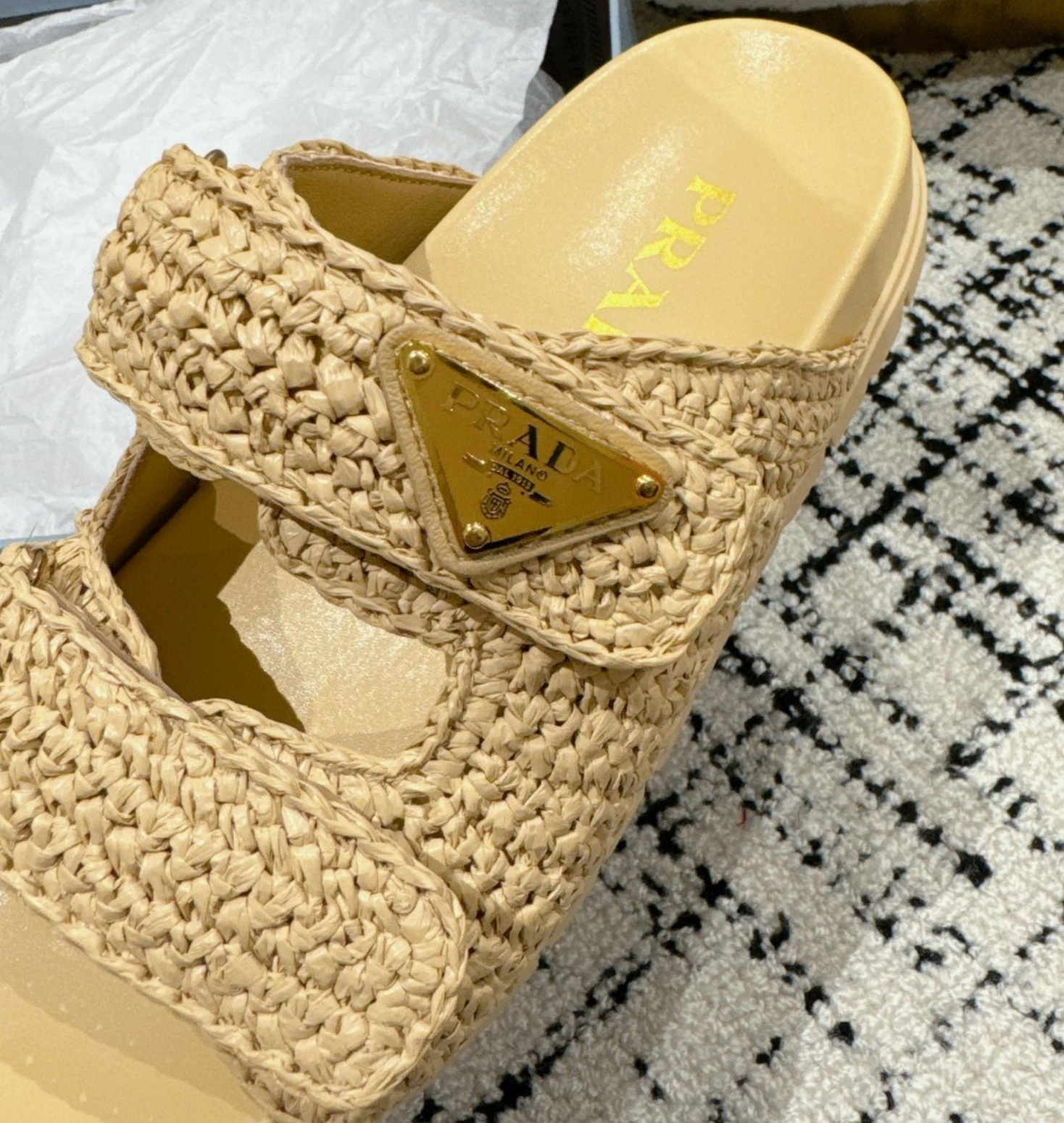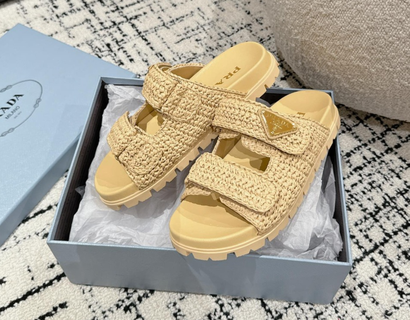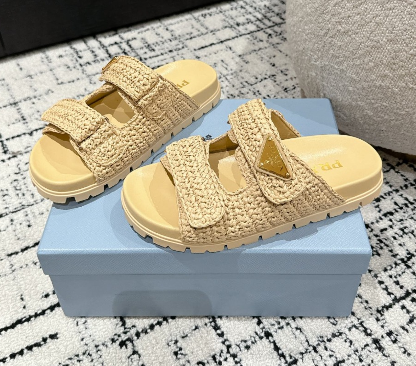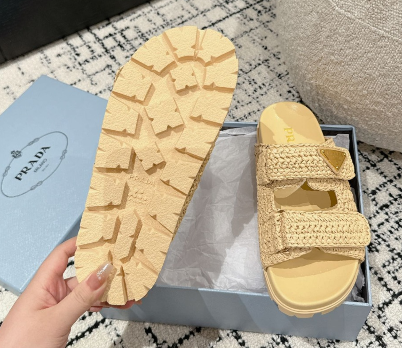 프라다 엠보싱 삼각로고 러버 슬라이드 샌들