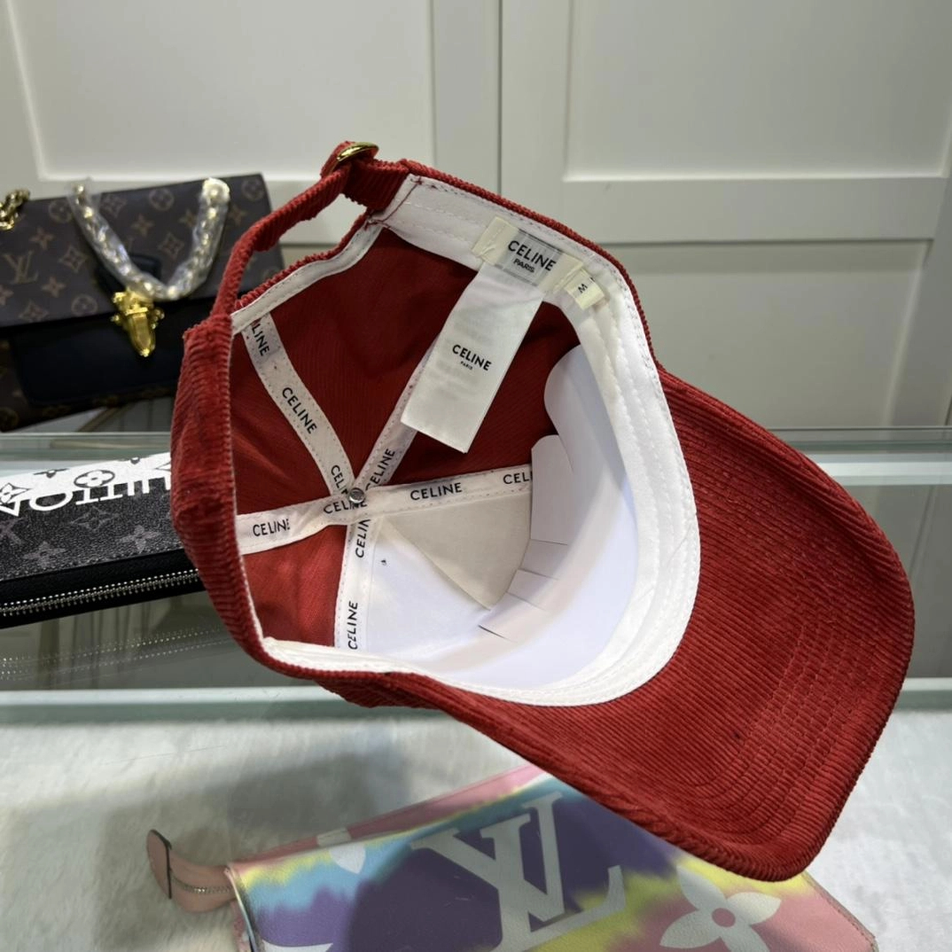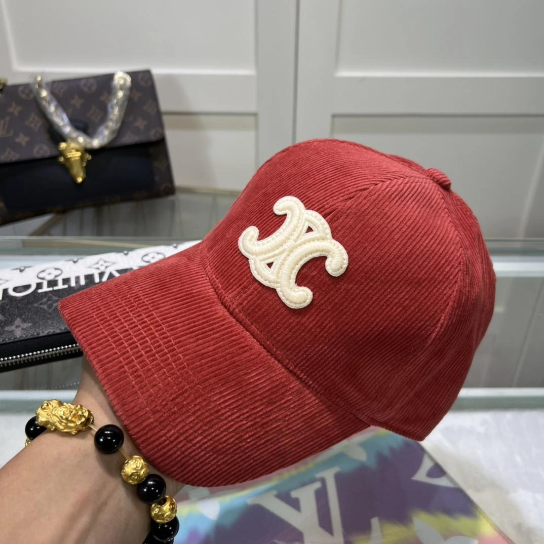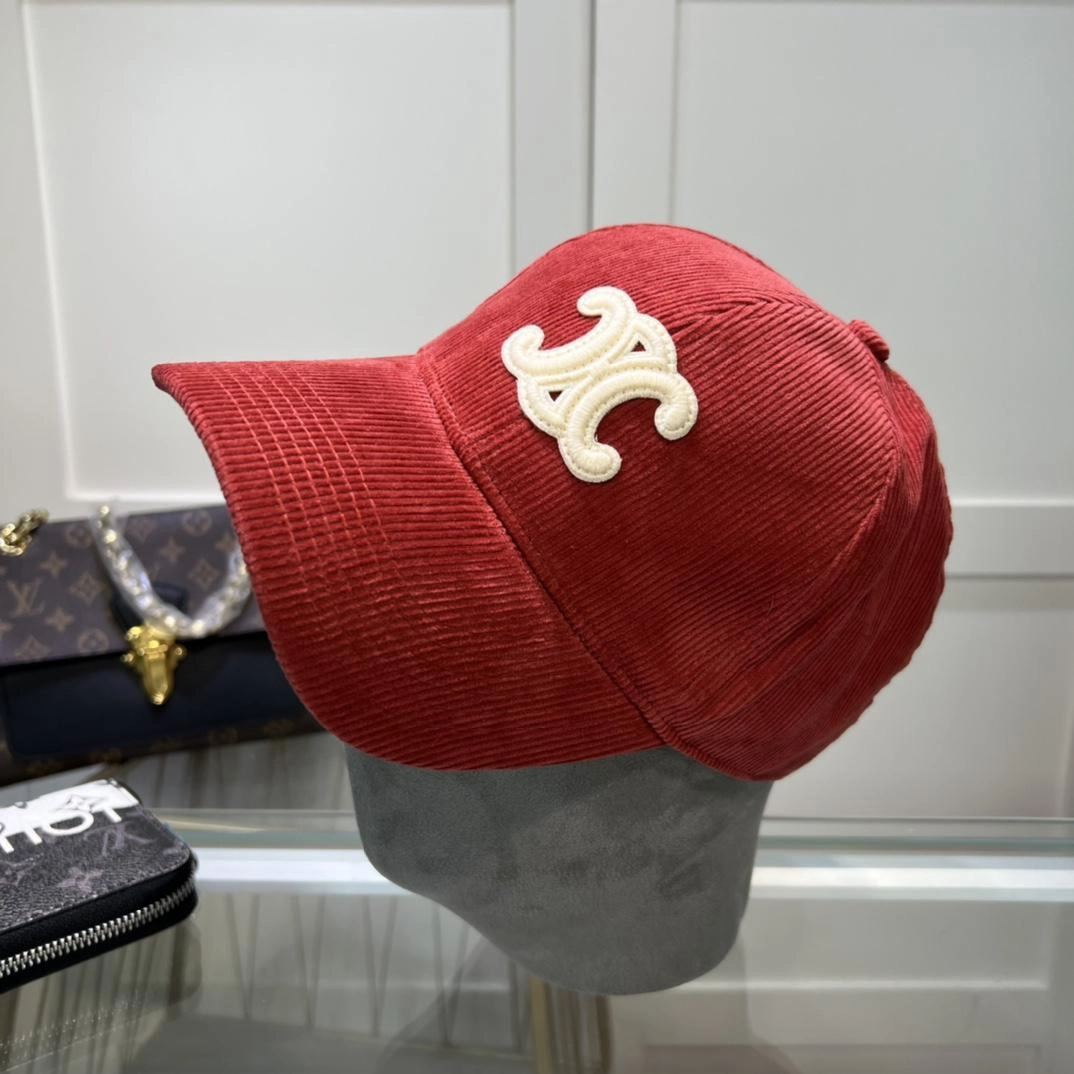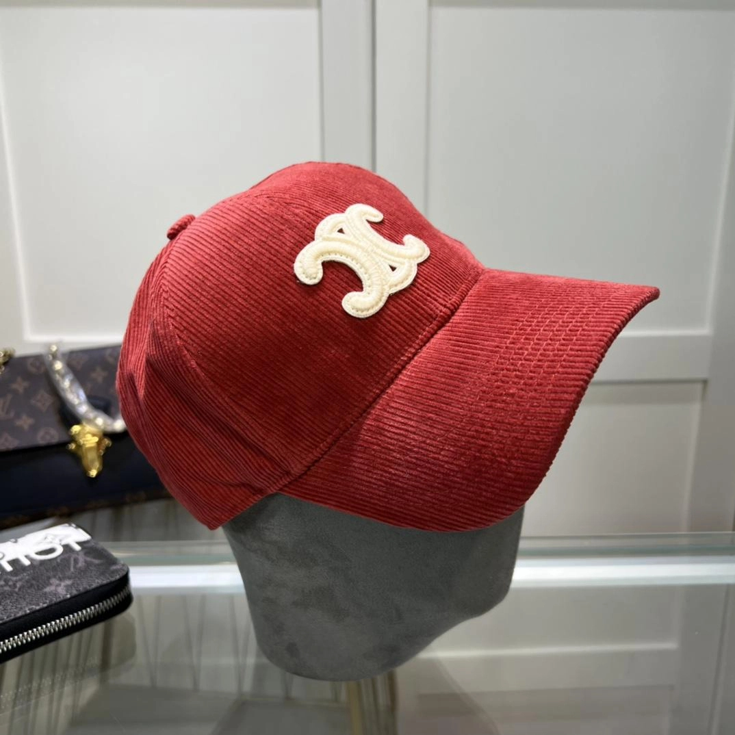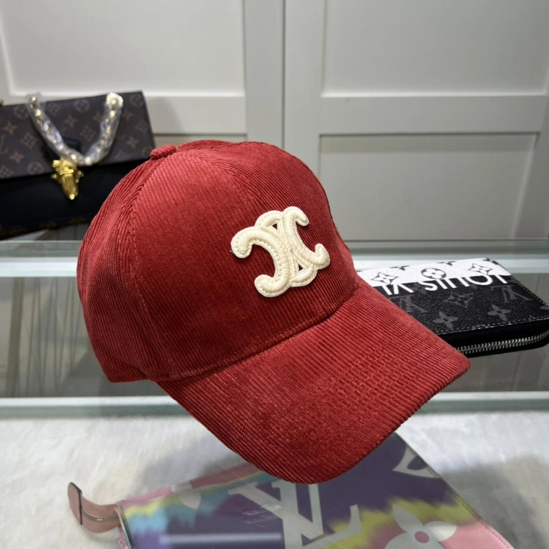 셀린느 트리옹프 레드 코듀로이 베이스볼 캡