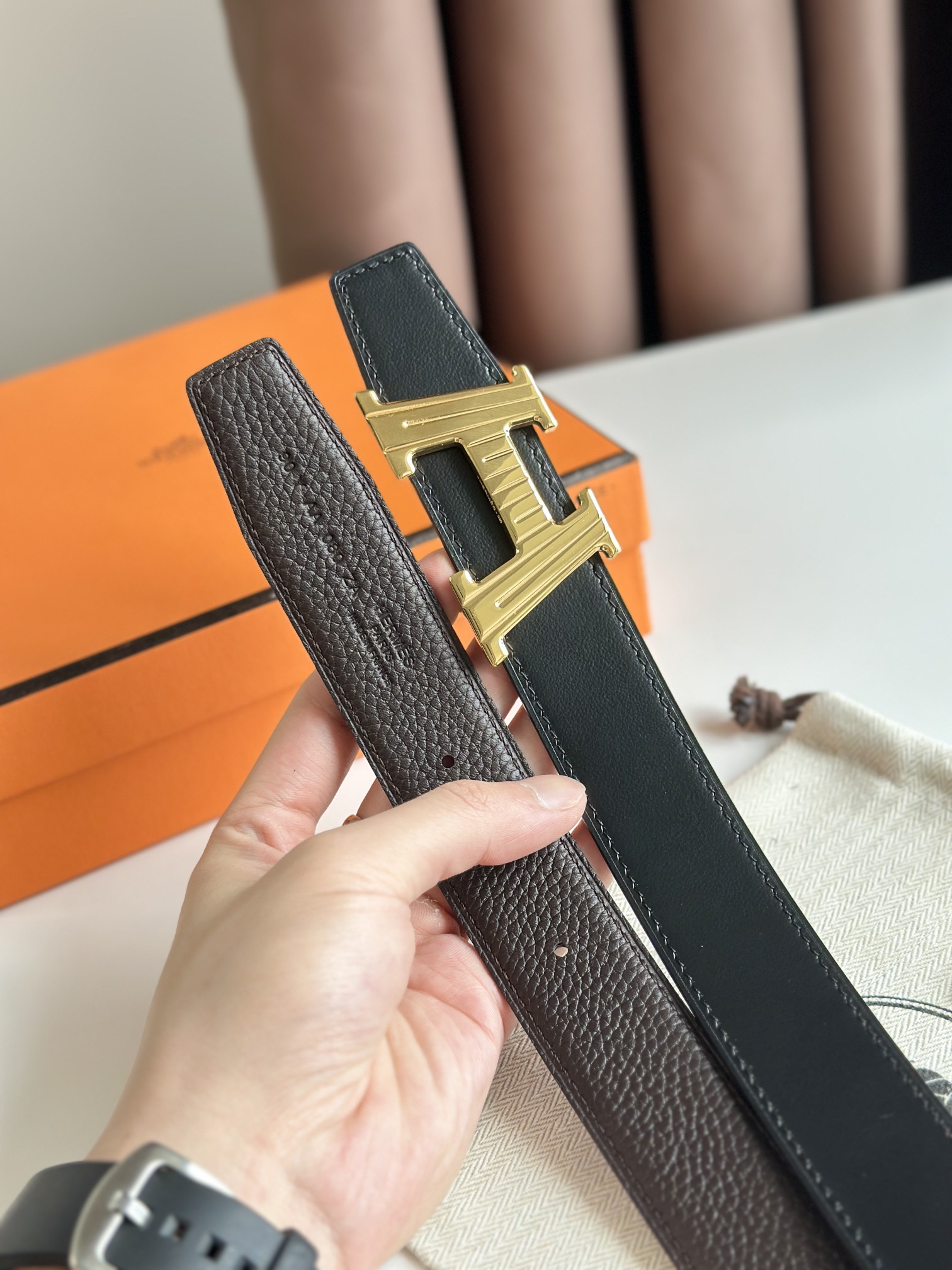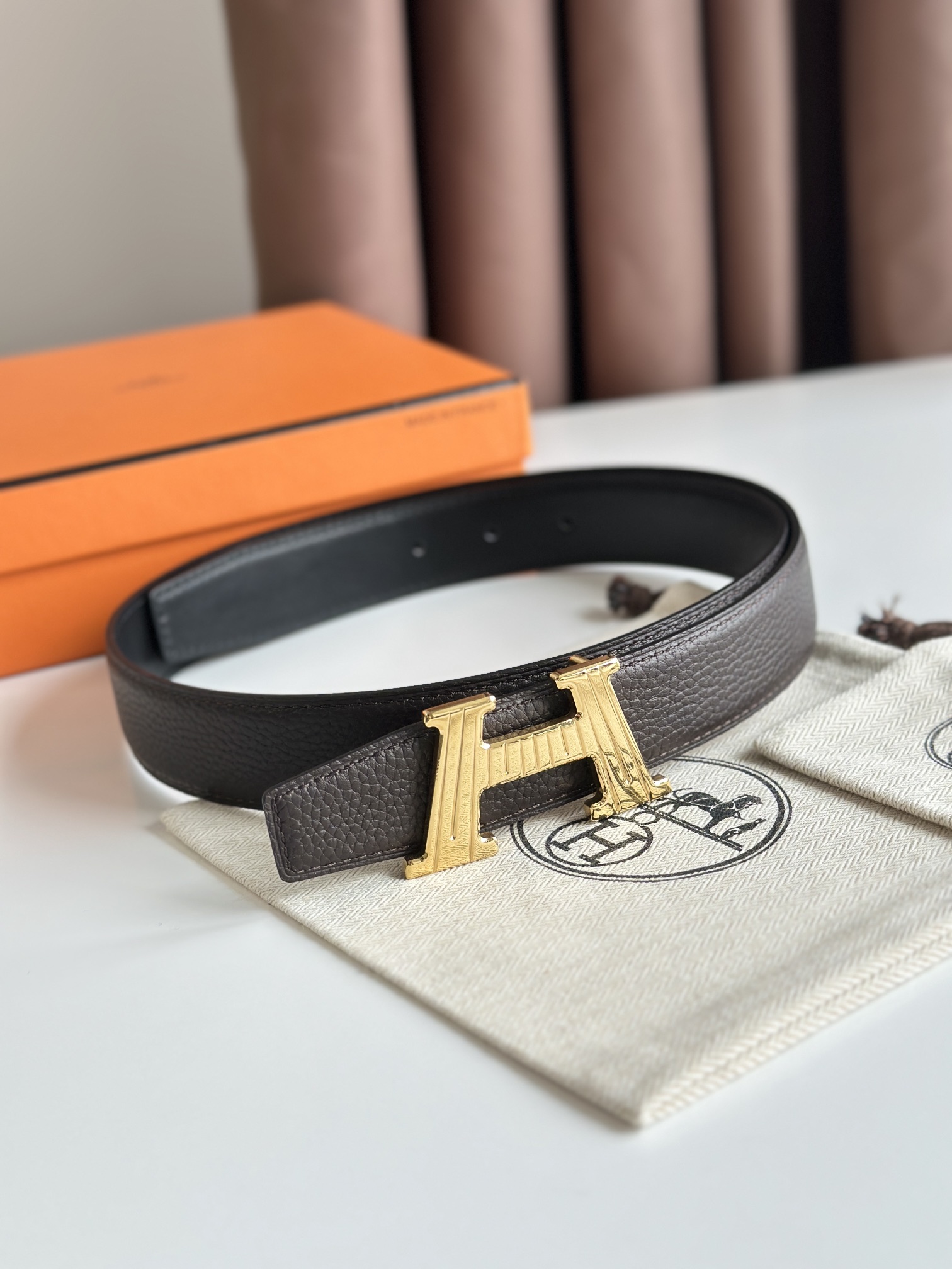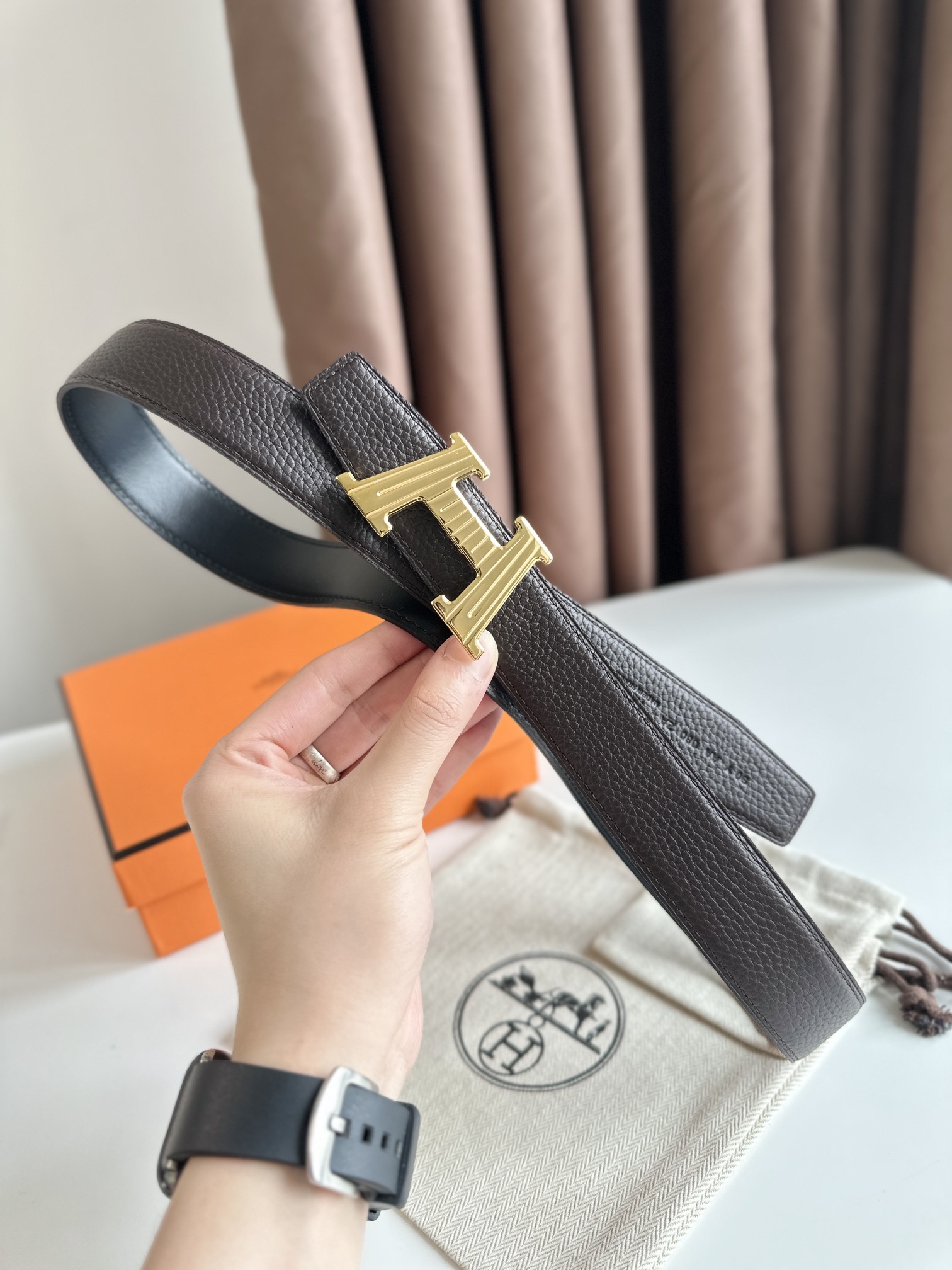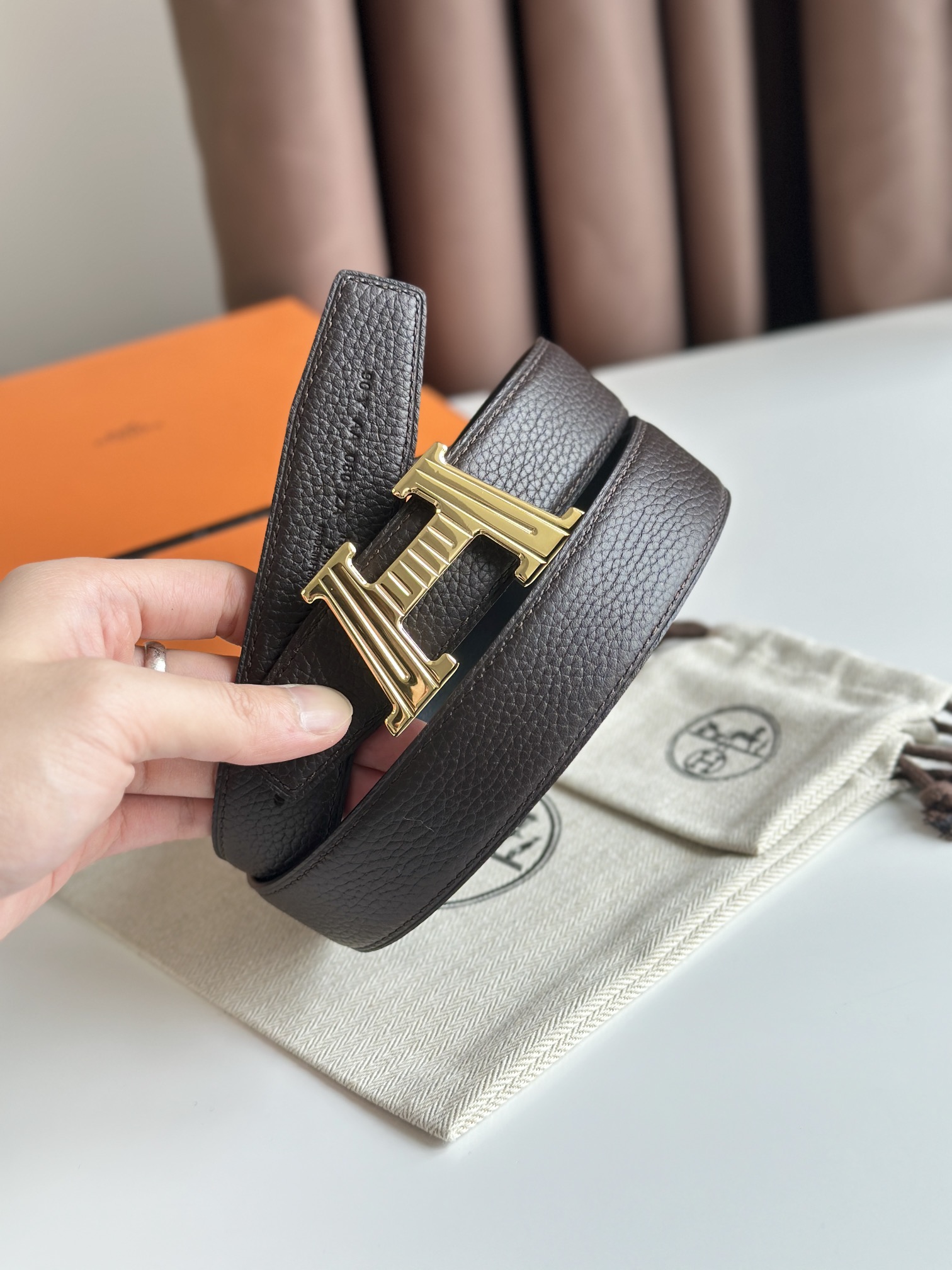 에르메스 H 토고 다크 브라운 벨트 금장 32mm