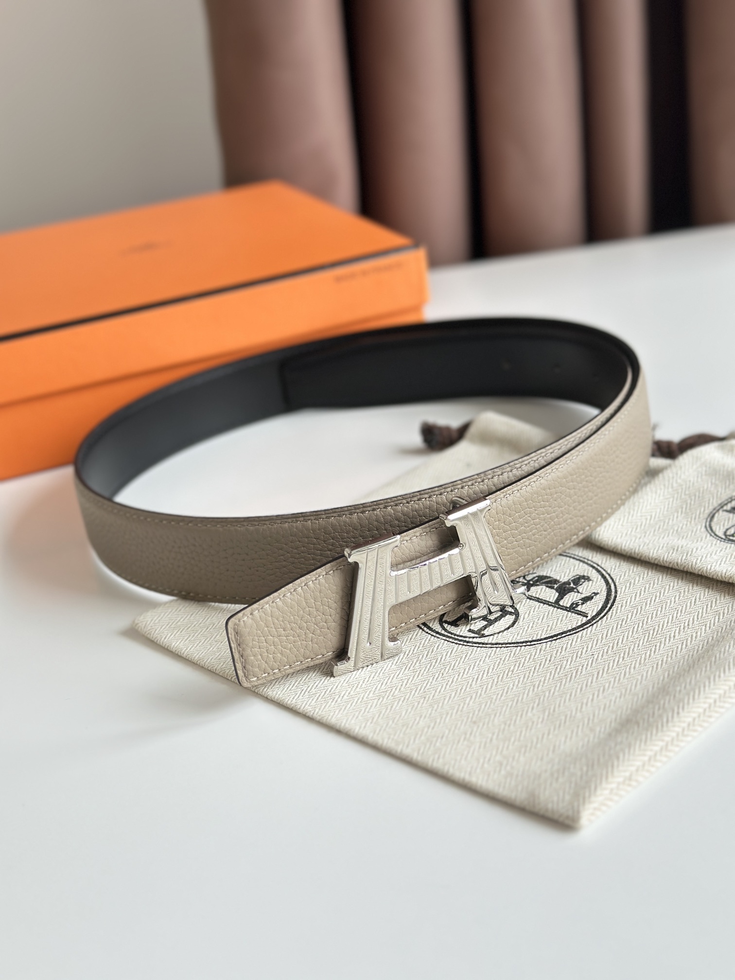 에르메스 H 토고 베이지 벨트 금장 32mm