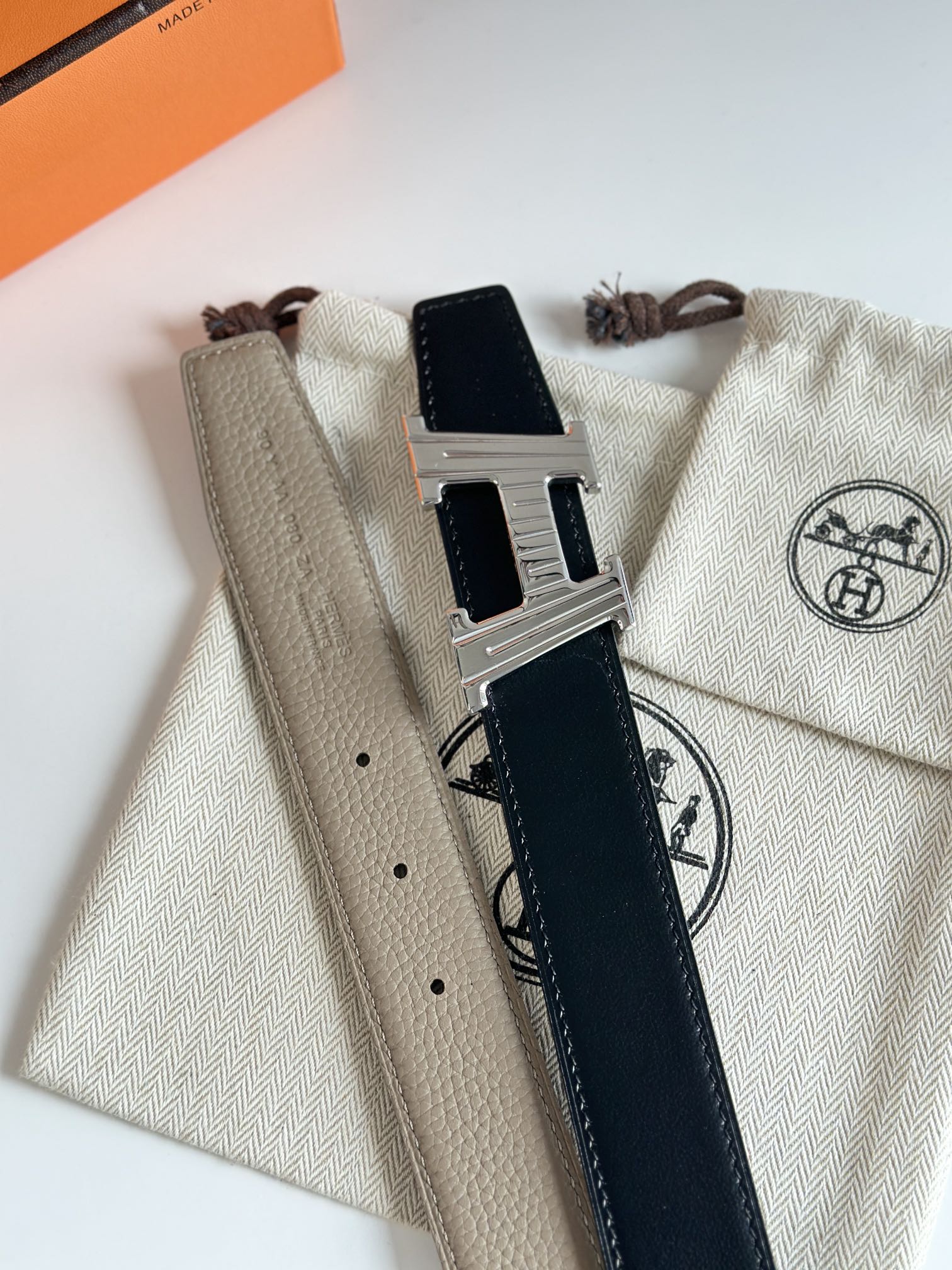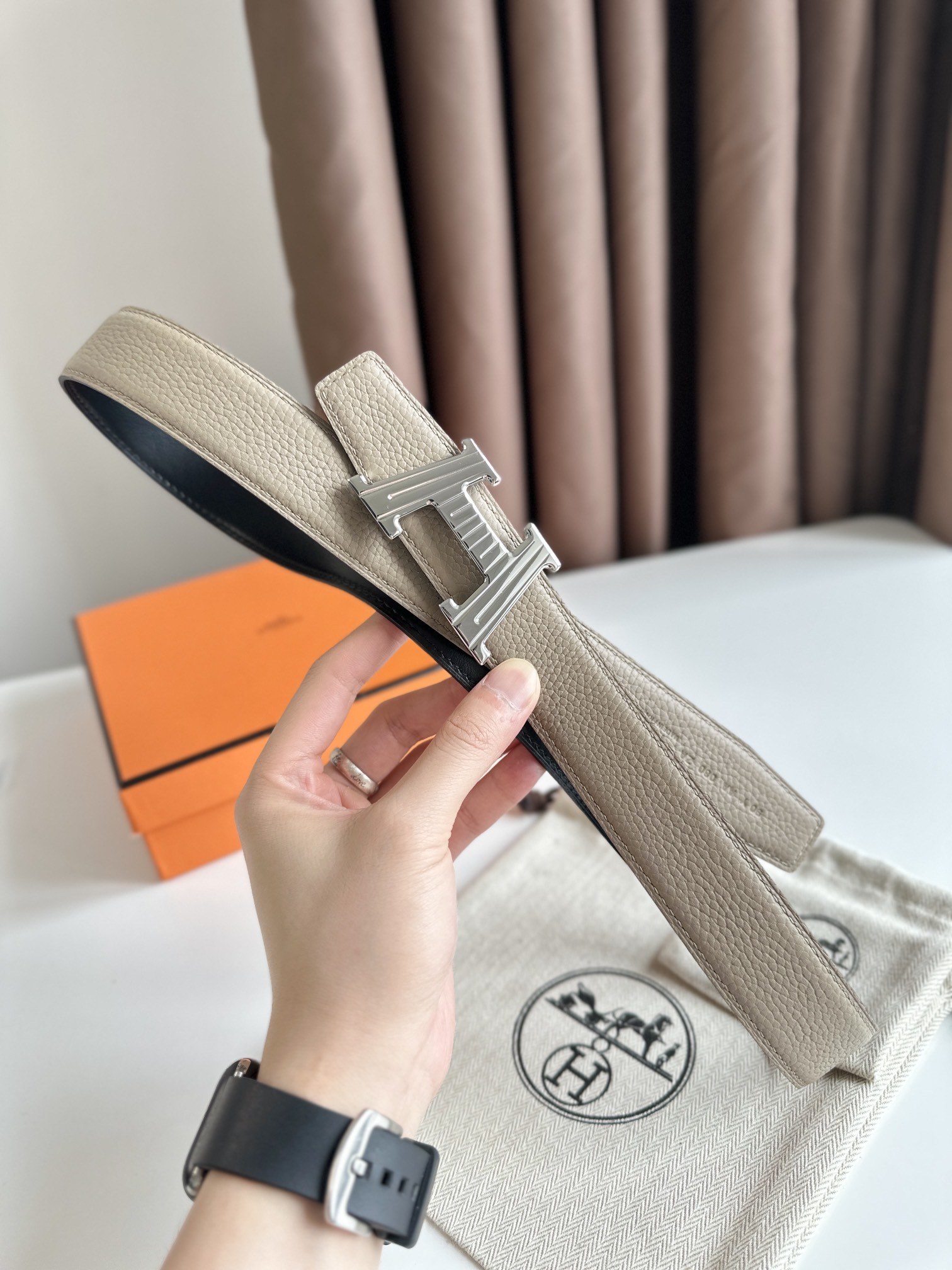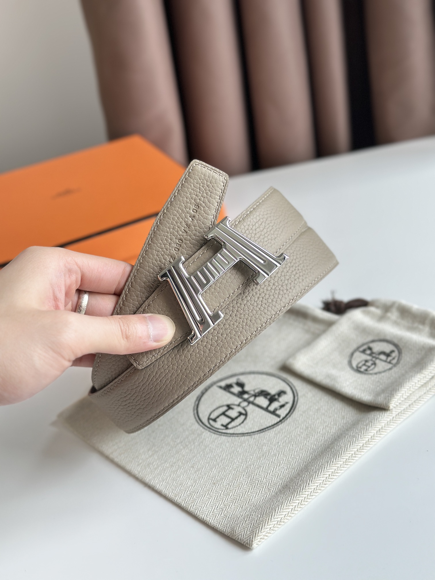 에르메스 H 토고 베이지 벨트 은장 32mm