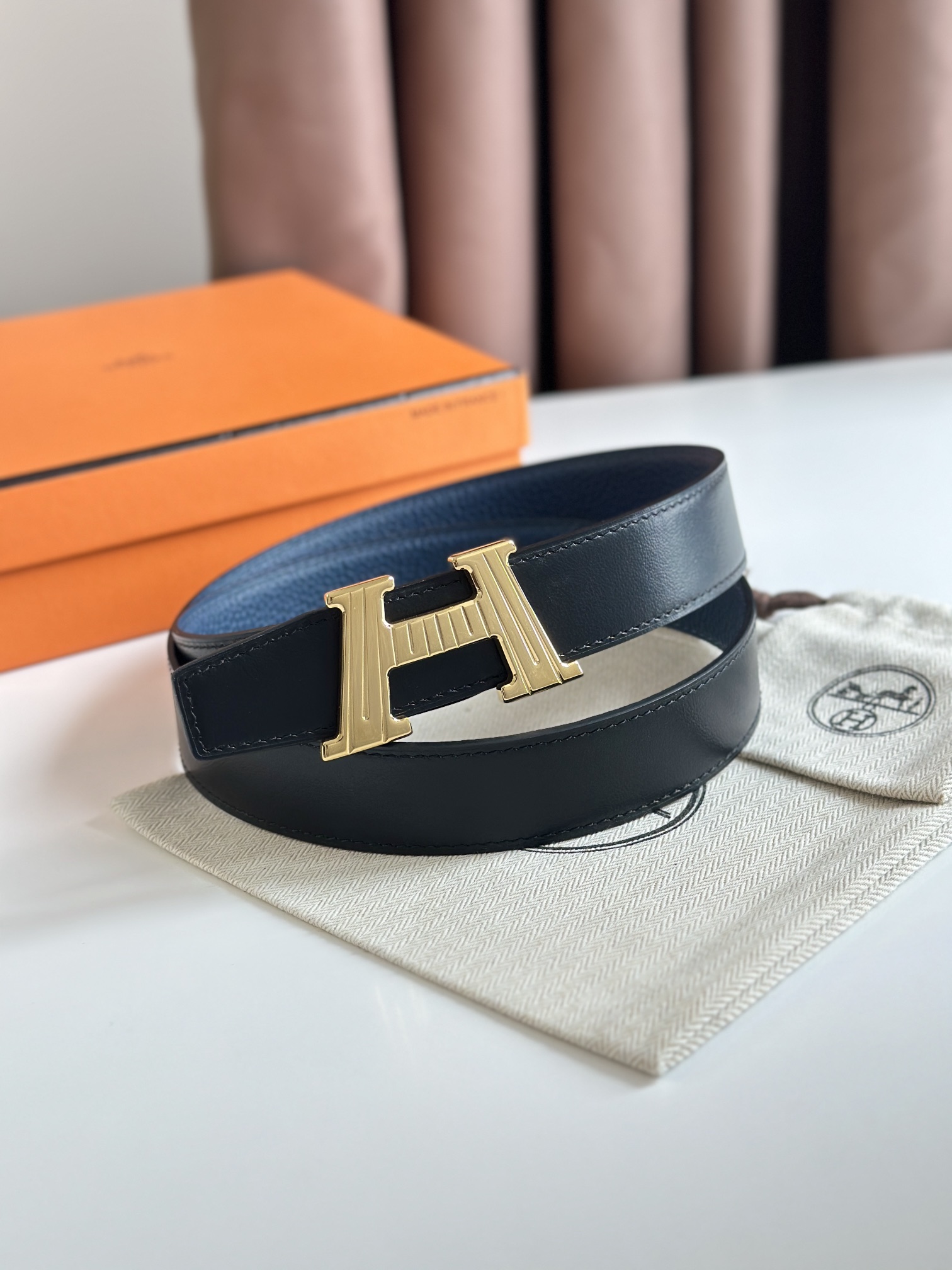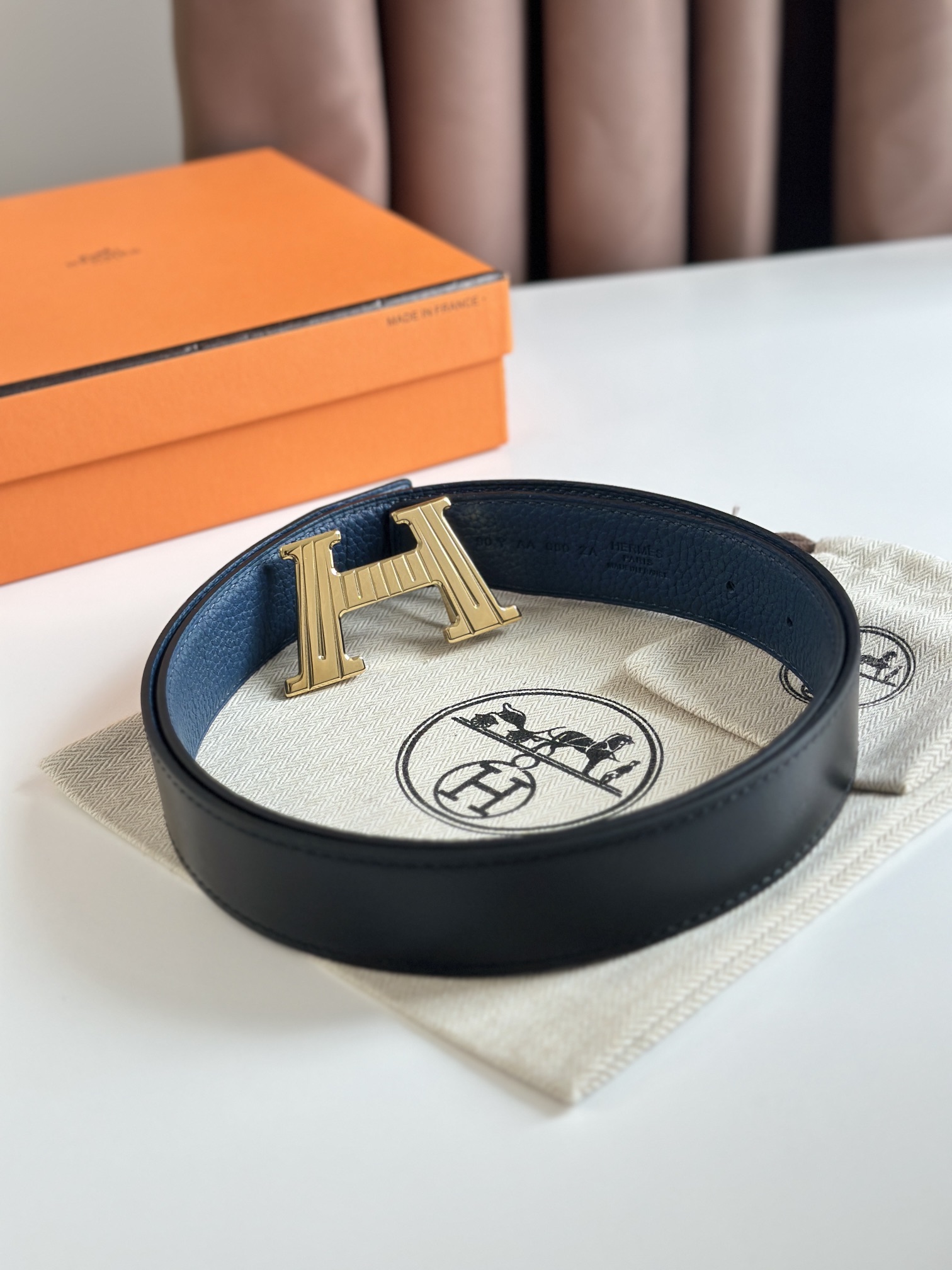 에르메스 H 토고 브라운 벨트 금장 32mm
