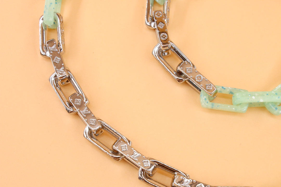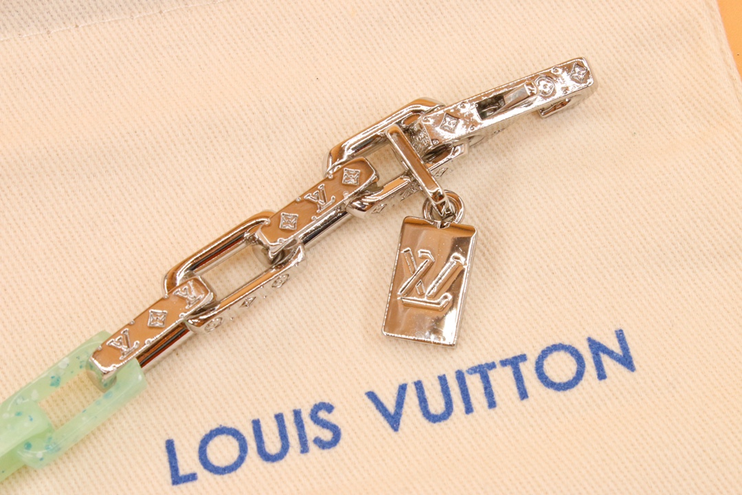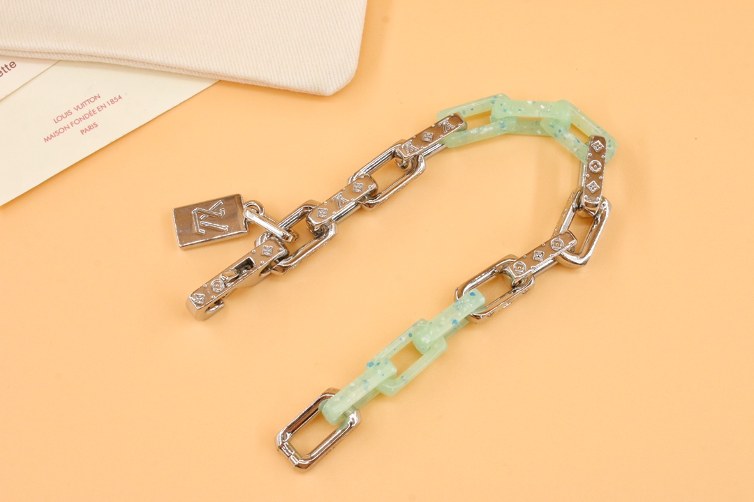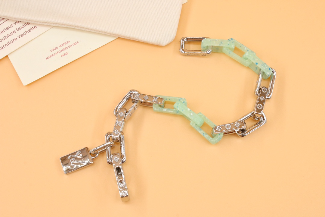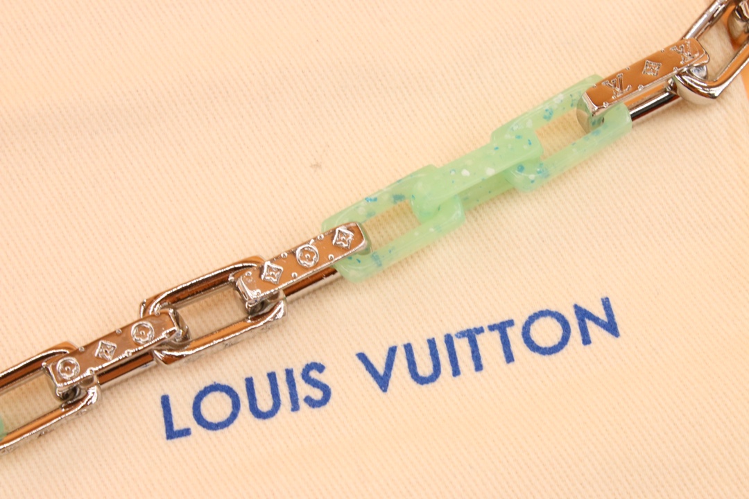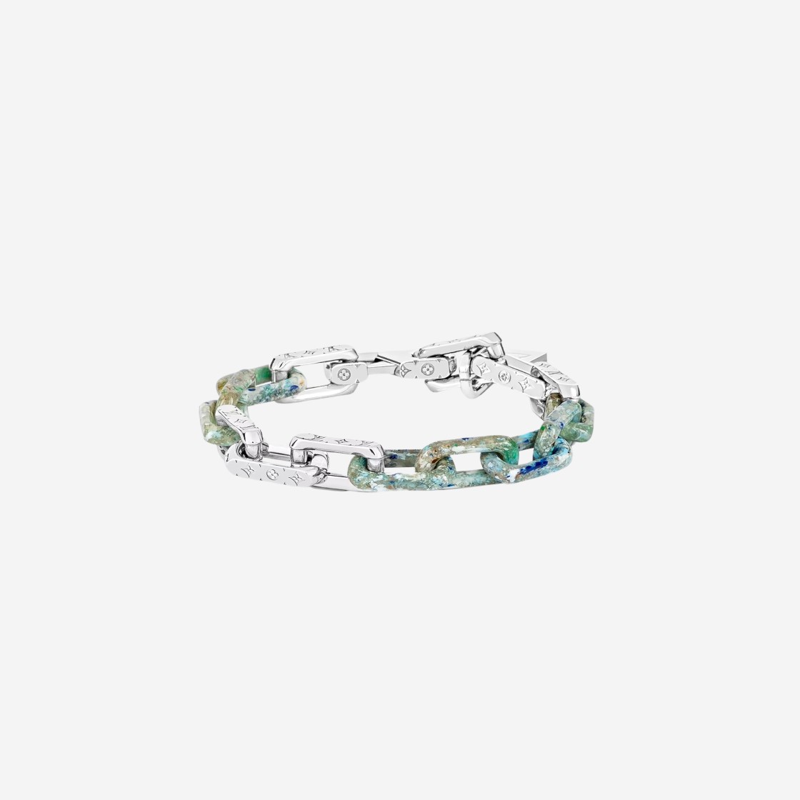 루이비통 모노그램 체인 팔찌 실버 그린 M00733