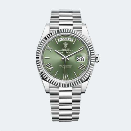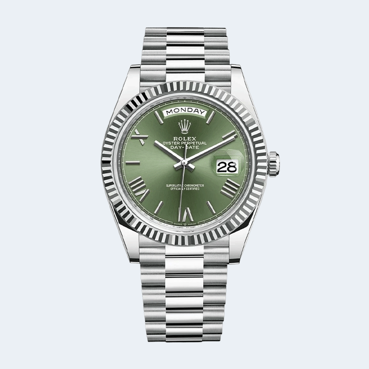 롤렉스 데이데이트 40mm 로즈골드 그린 로만 인덱스