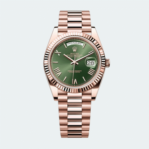 롤렉스 데이데이트 40mm 로즈골드 그린 로만 인덱스