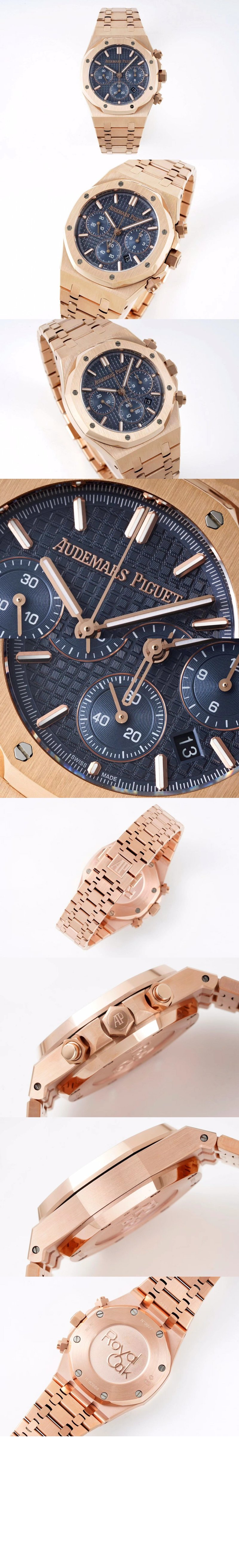 오데마피게 로얄오크 크로노그래프 골드 박스 블루다이얼