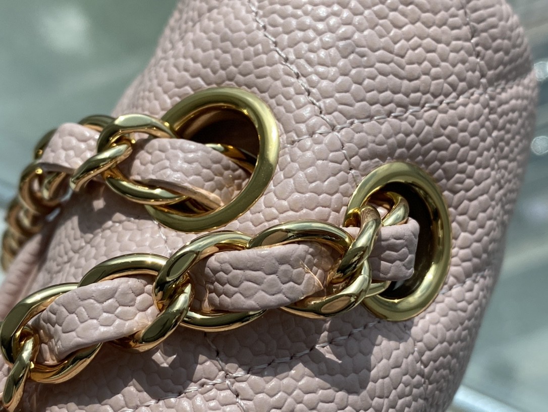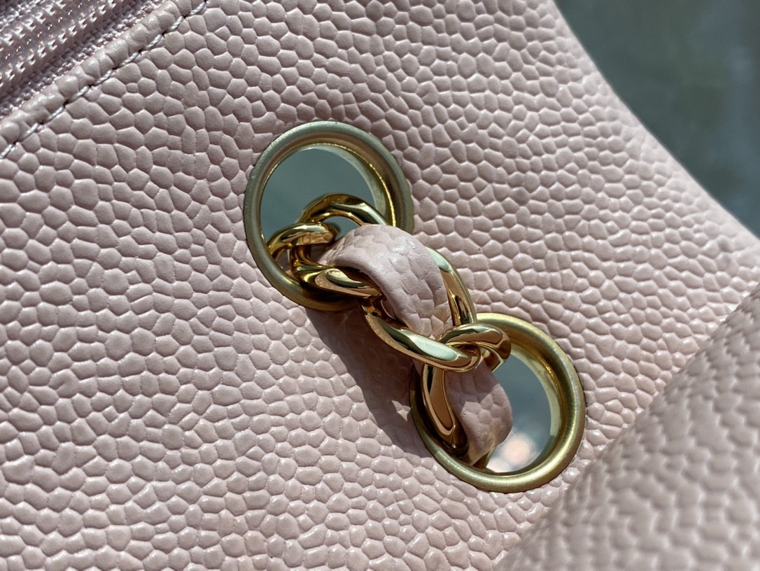 샤넬 클래식 미디움 카프스킨 핑크 골드