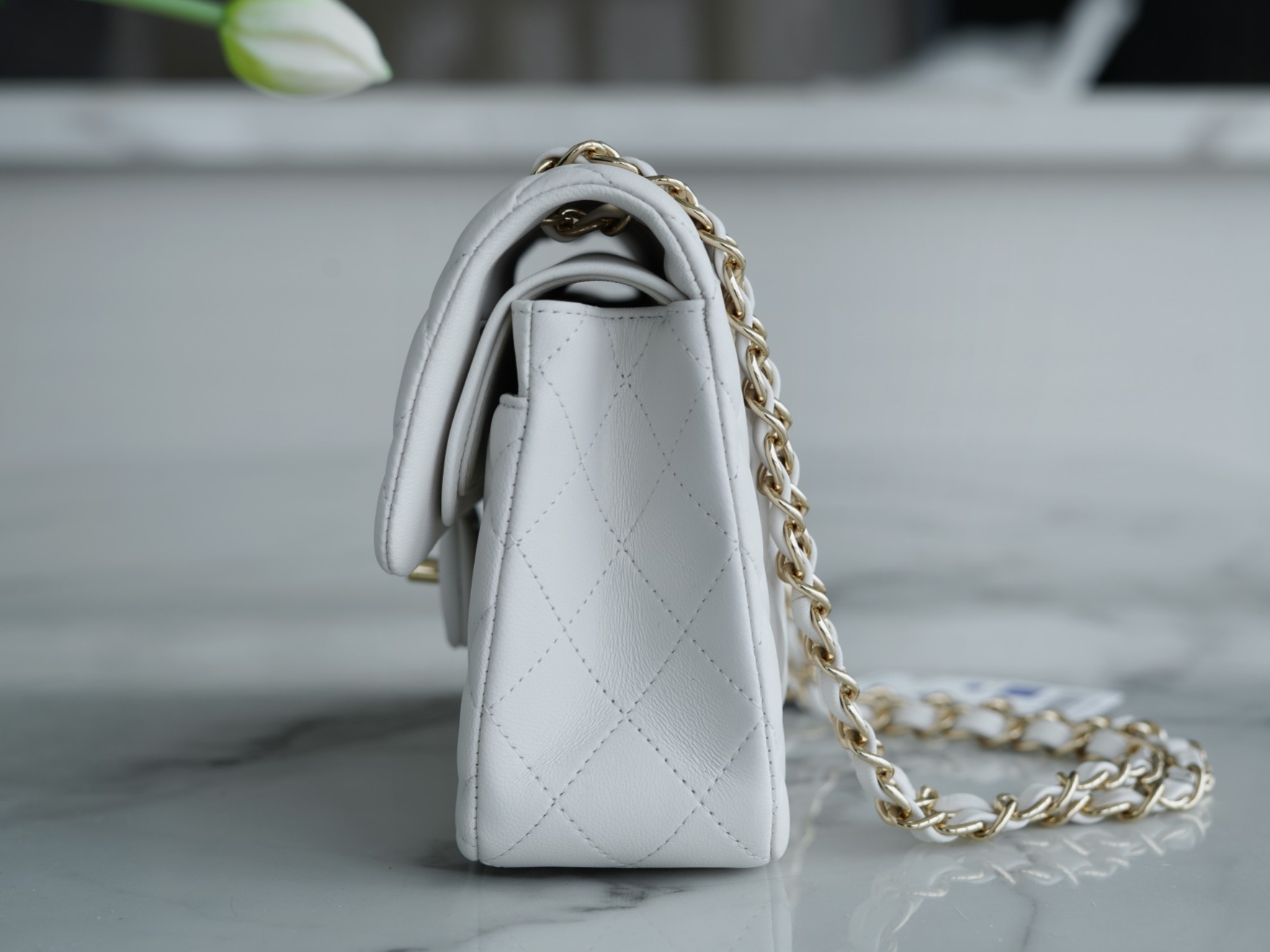 샤넬 클래식 스몰 램스킨 화이트 골드