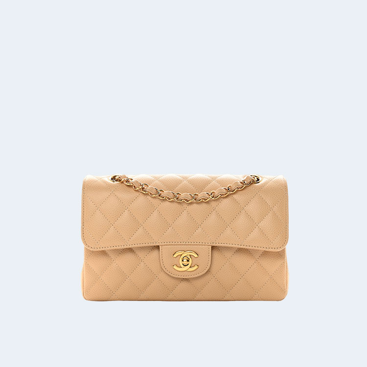 샤넬 클래식 스몰 캐비어 워시드 카키 골드