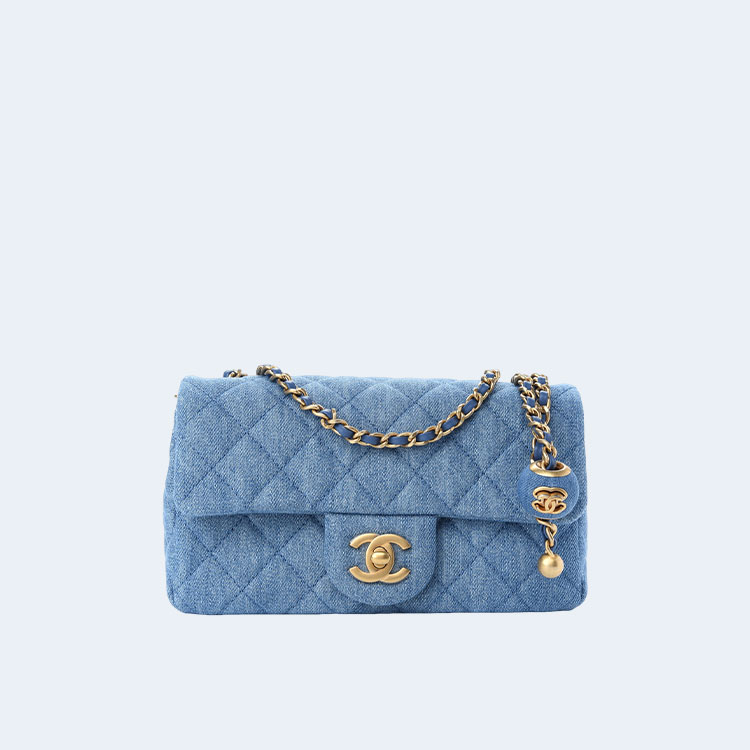 샤넬 22C 데님 퀄트 미니 크러쉬 블루백