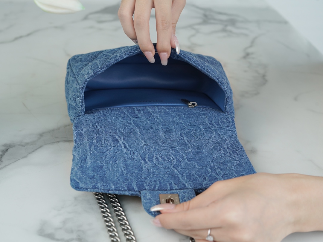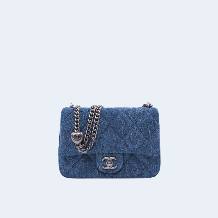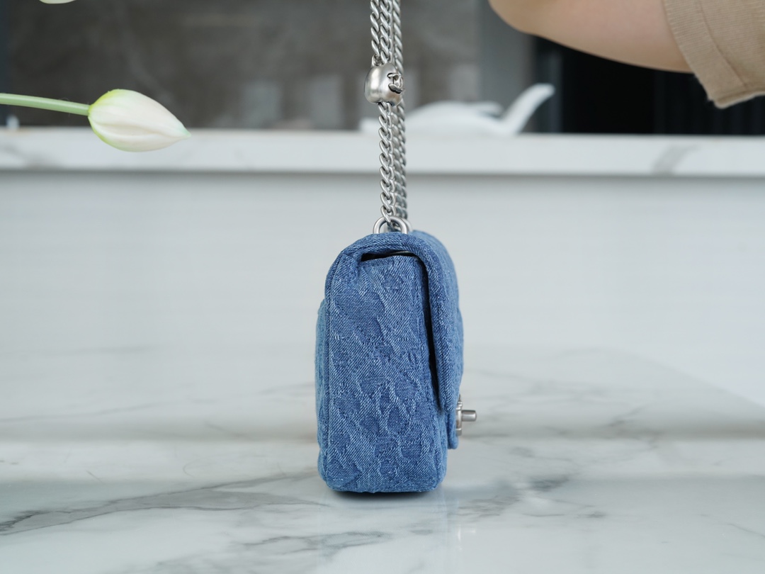 샤넬 미니 플랩백 데님 & 실버 메탈 블루