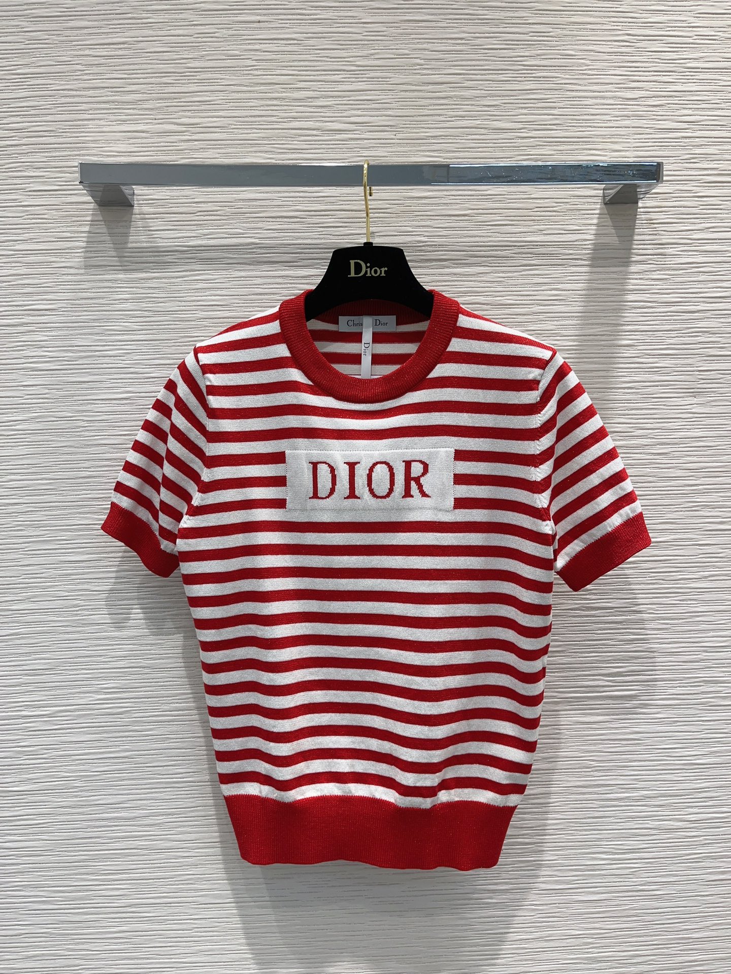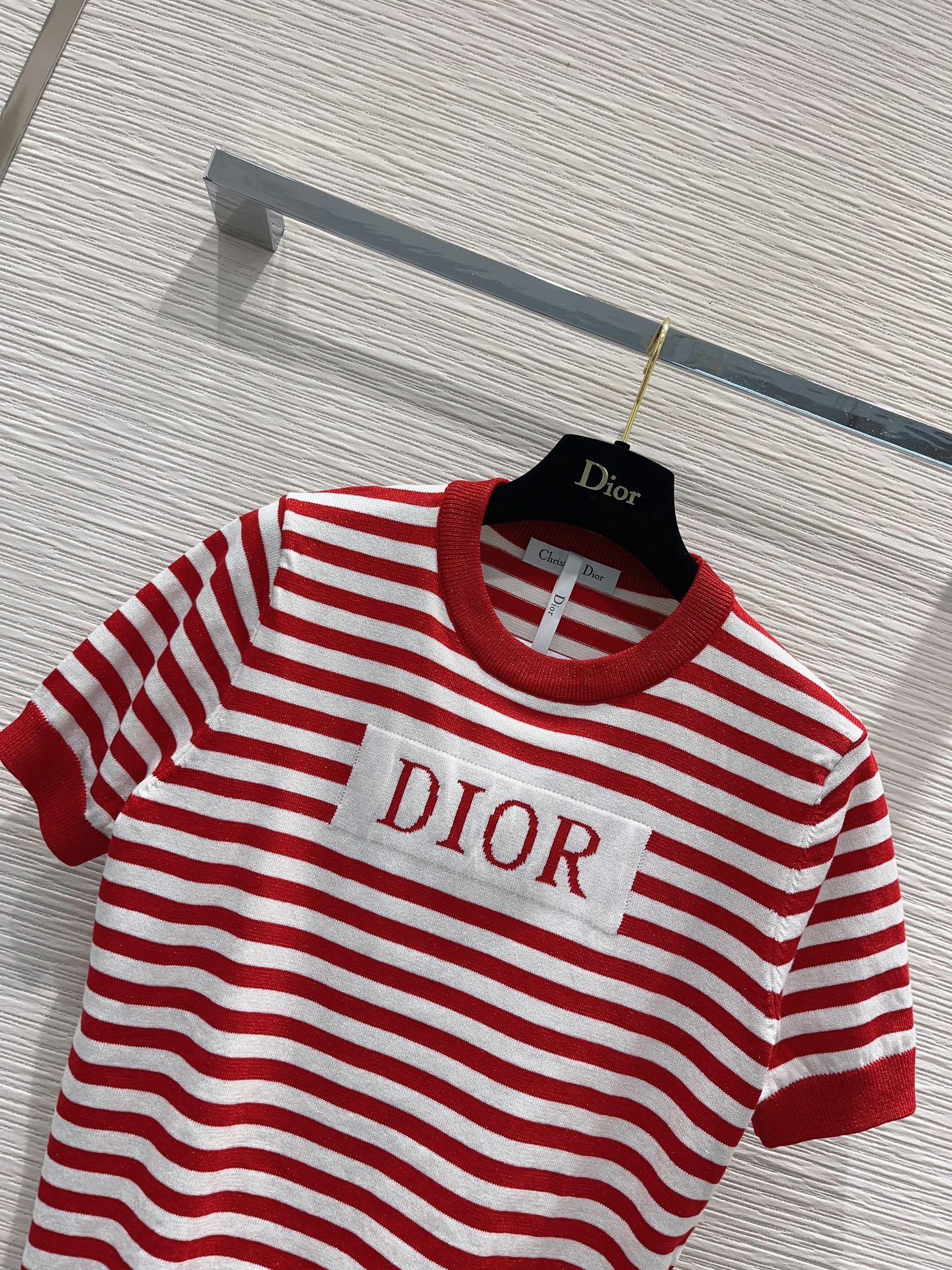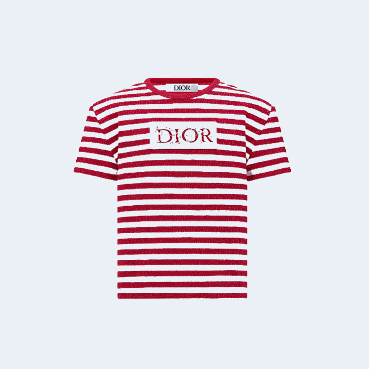 디올 레드 스트라이프 코튼 저지 티셔츠