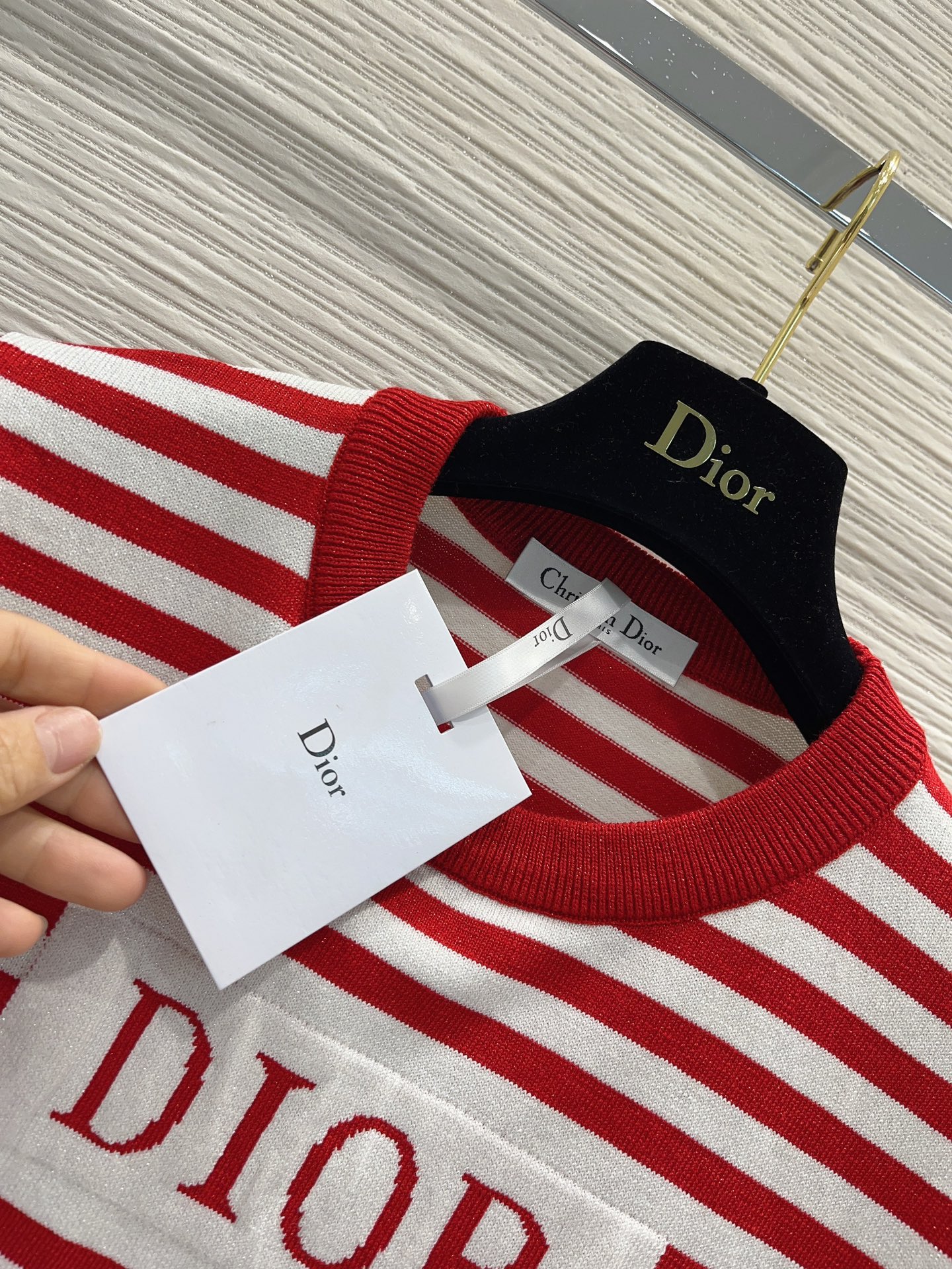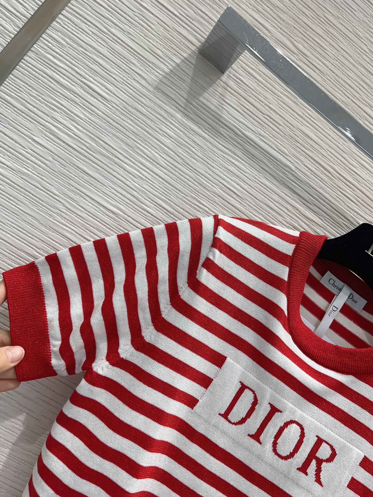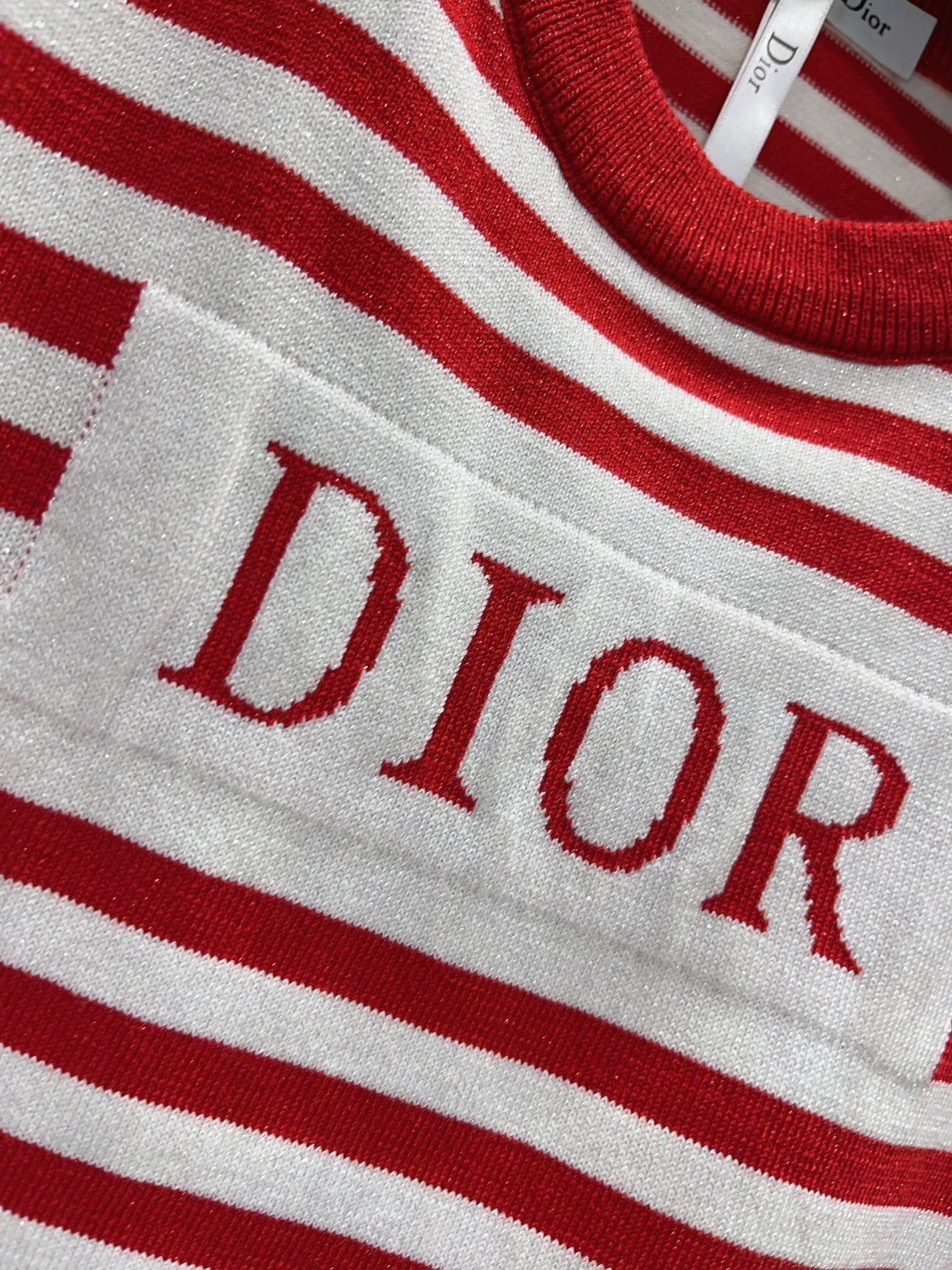 디올 레드 스트라이프 코튼 저지 티셔츠