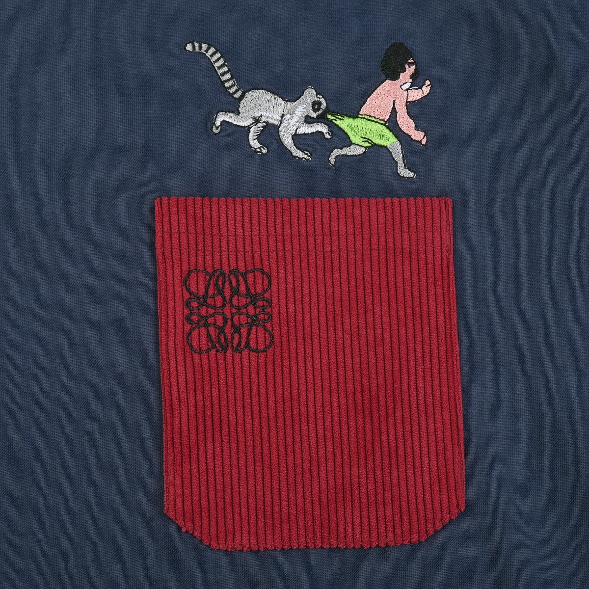 로에베 QQ 레드 포켓 티셔츠 네이비