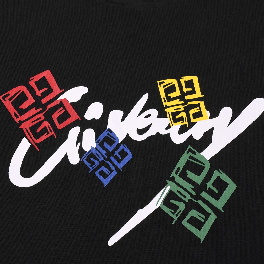 버버리 EKD 블루 자수 코튼 티셔츠 블랙
