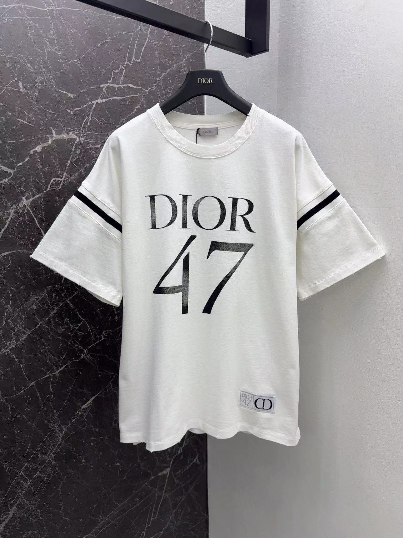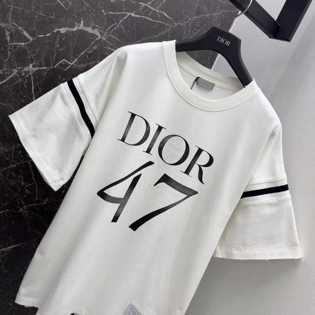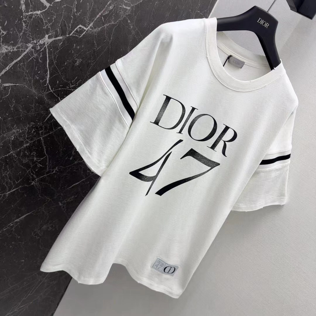 디올 화이트 슬러브 코튼 저지 오버사이즈 티셔츠
