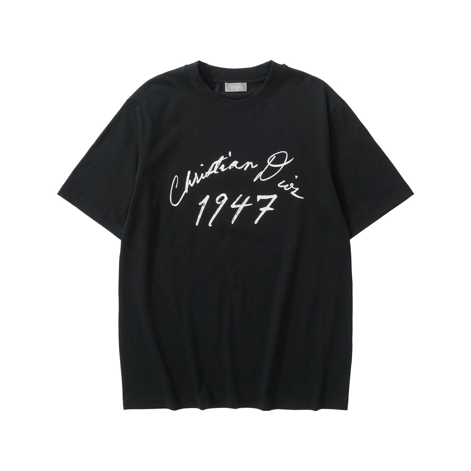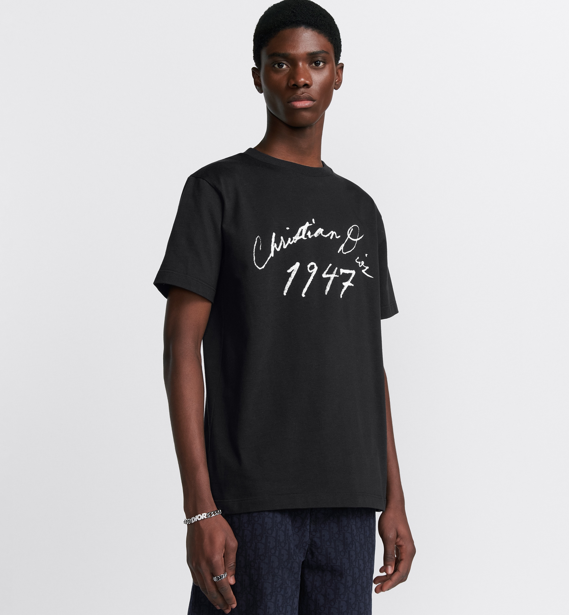 디올 핸드라이팅 캐주얼 핏 티셔츠 블랙