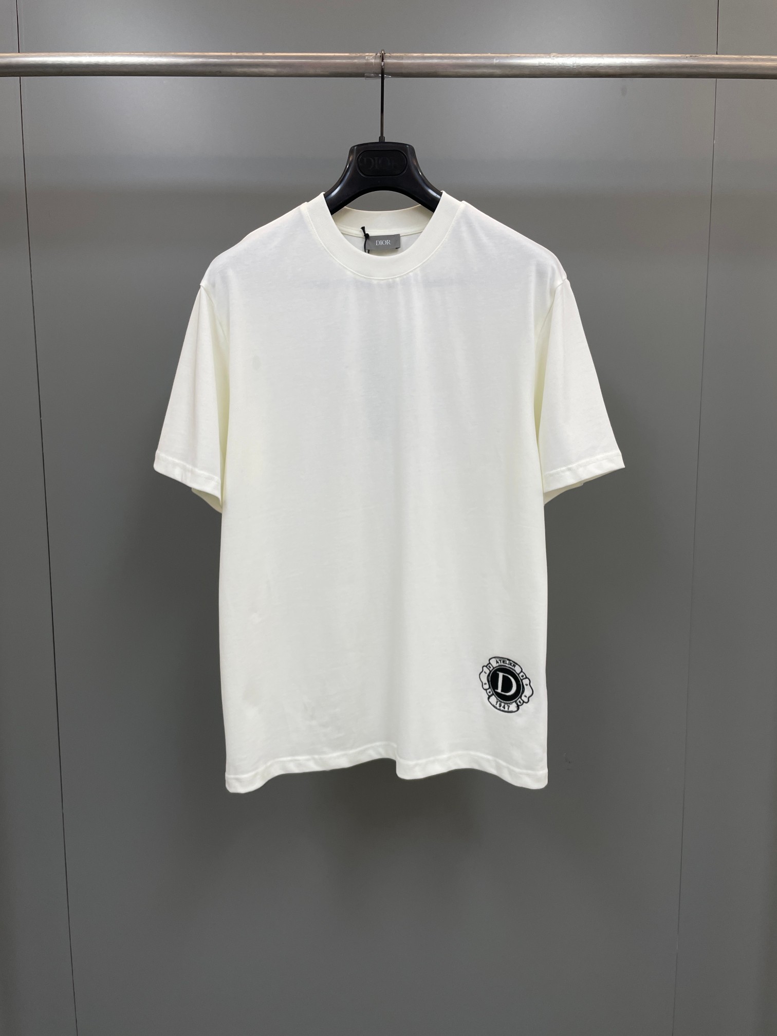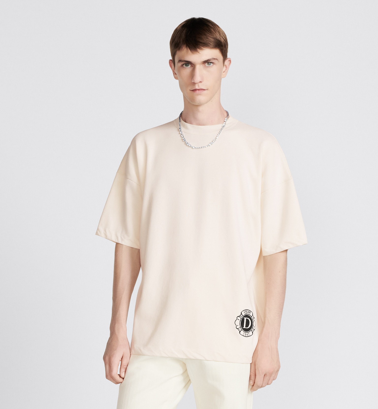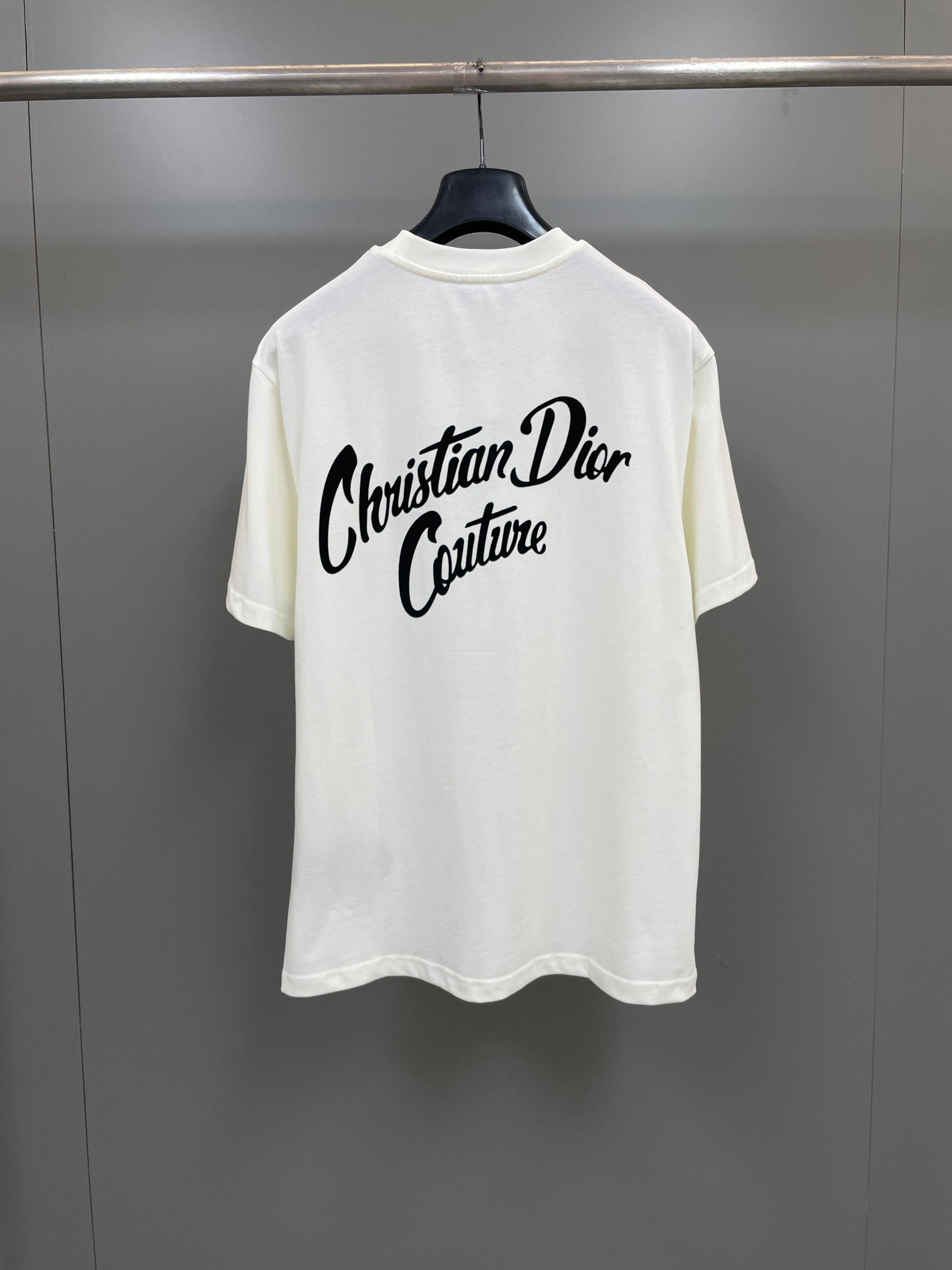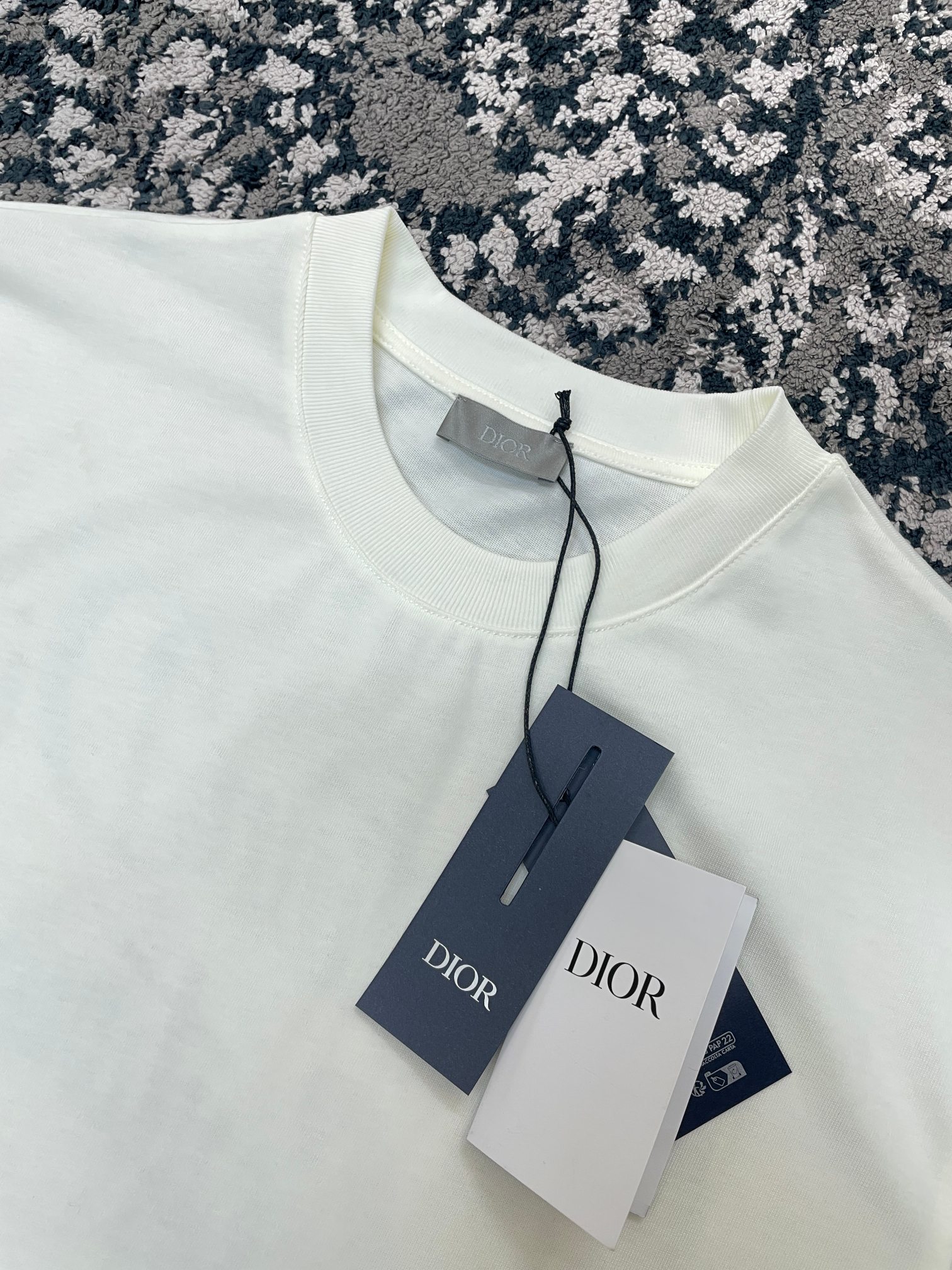 디올 에크루 실크 코튼 저지 티셔츠 화이트