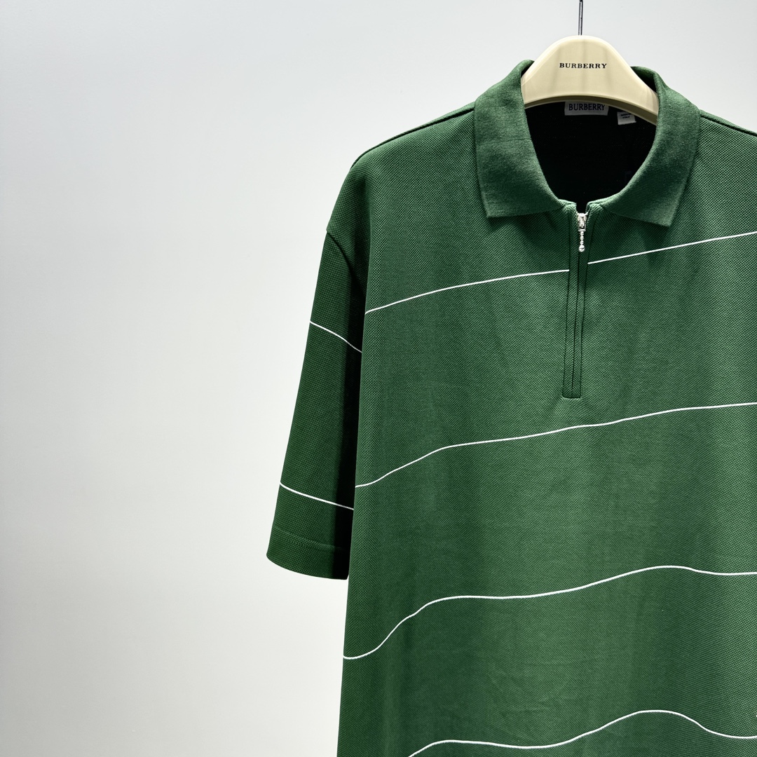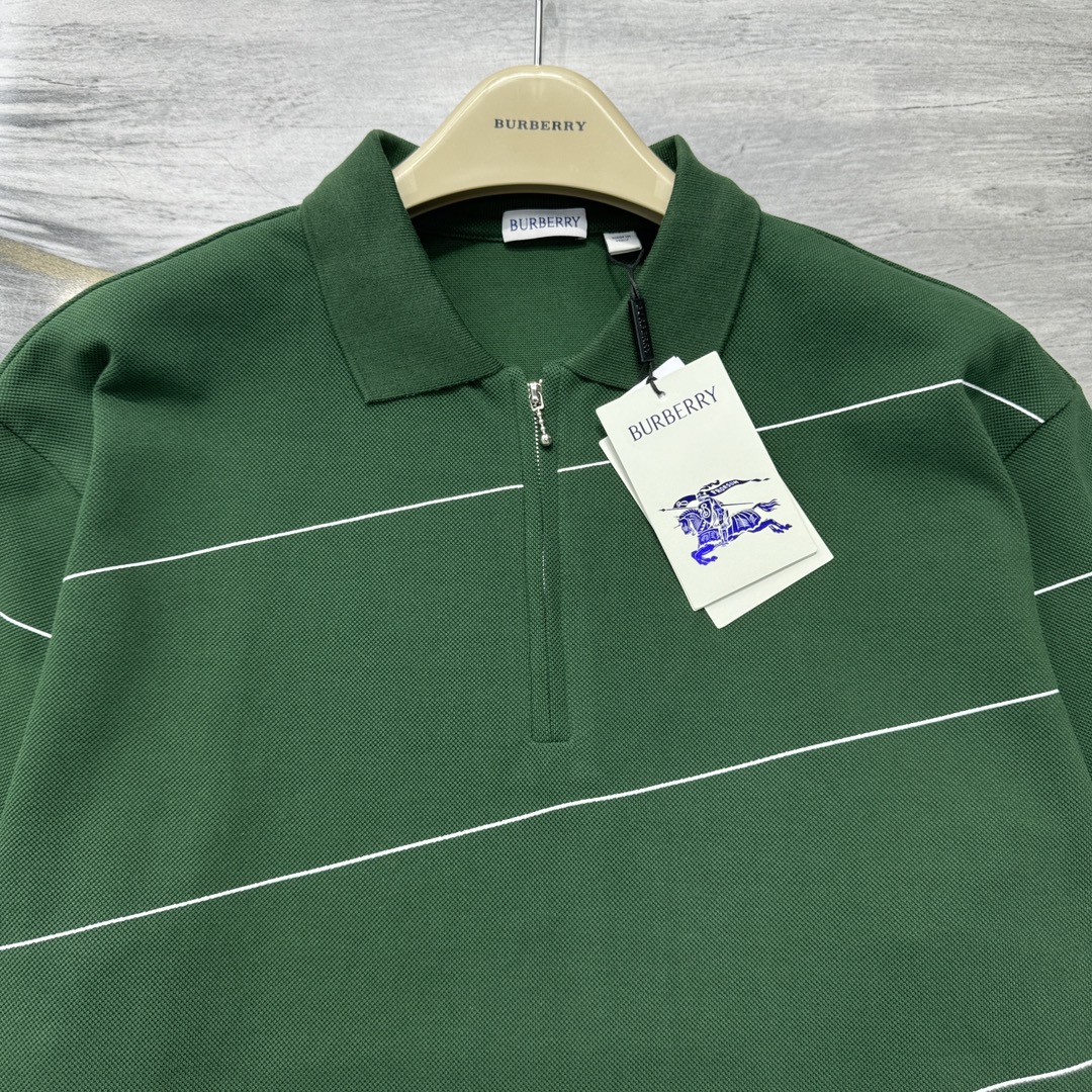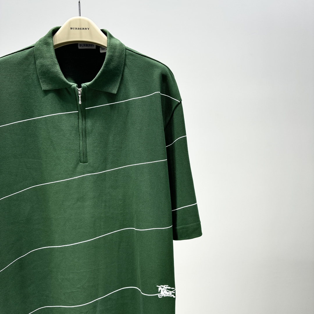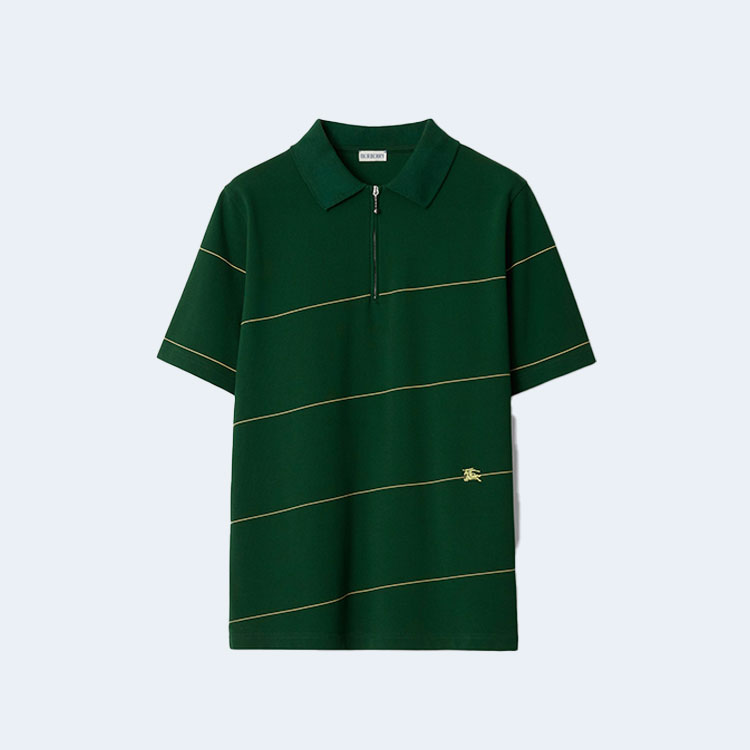 버버리 스트라이프 코튼 폴로 셔츠 그린