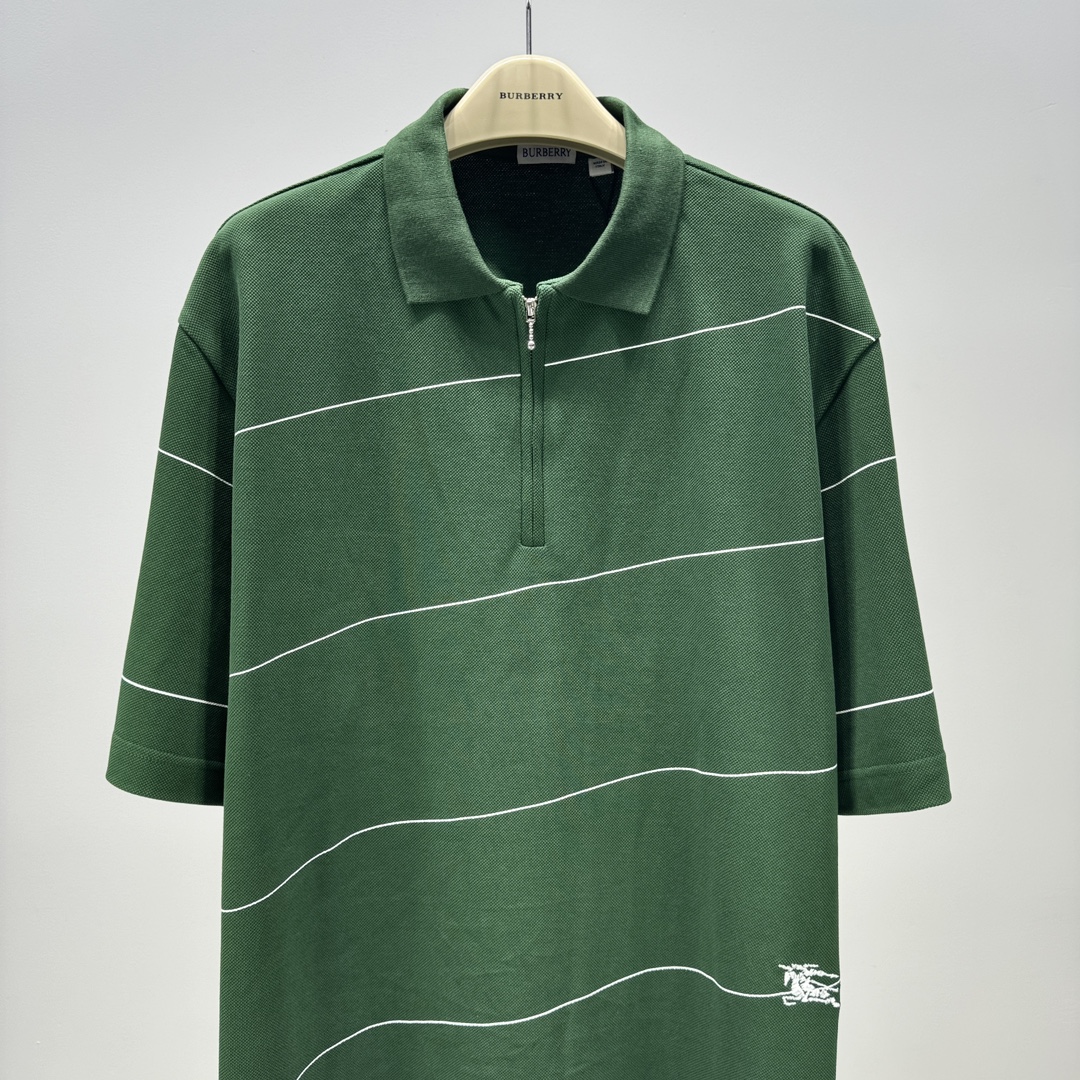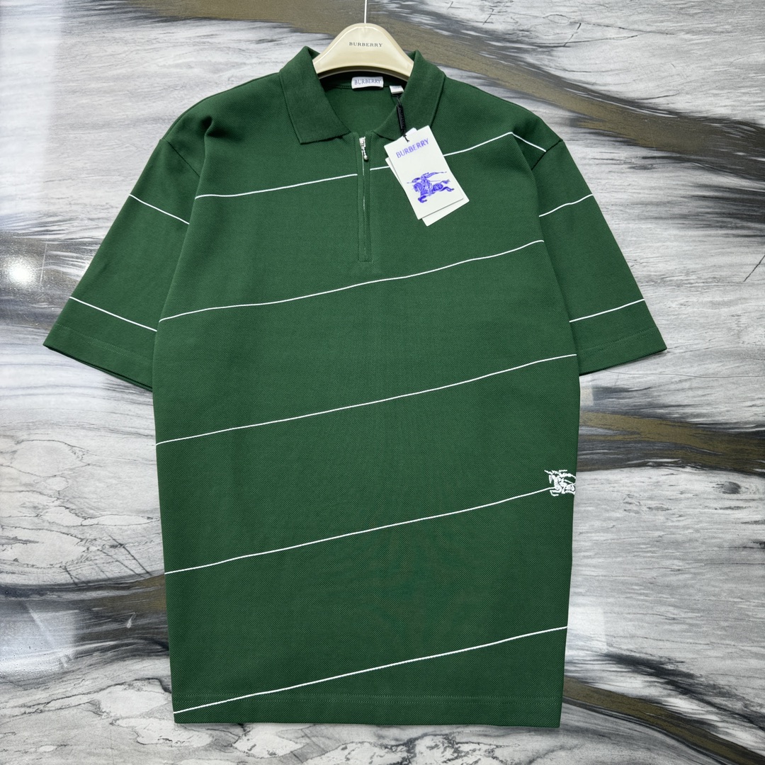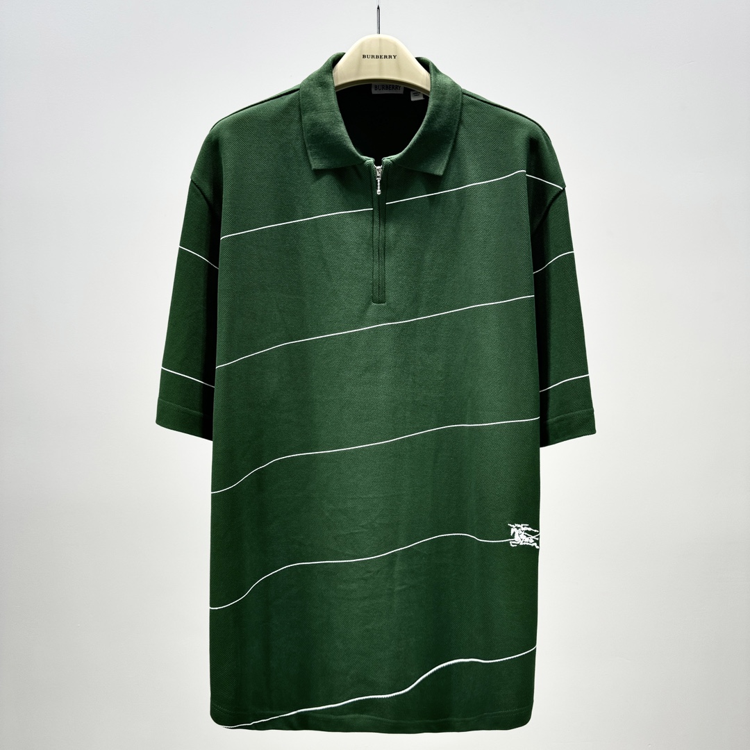 버버리 스트라이프 코튼 폴로 셔츠 그린