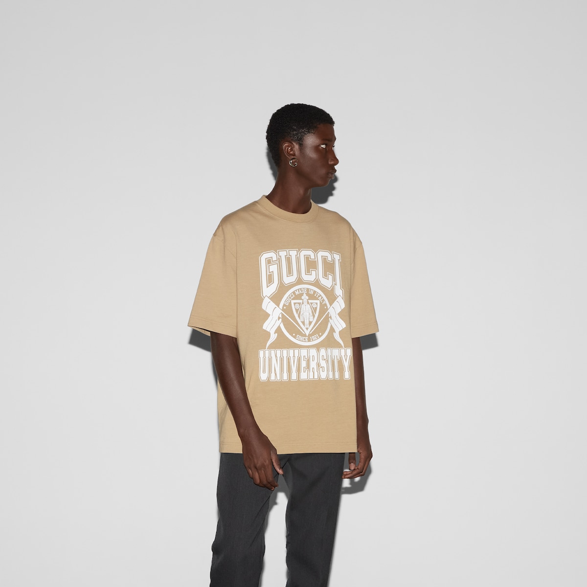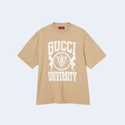 구찌 코튼 저지 프린트 티셔츠 베이지